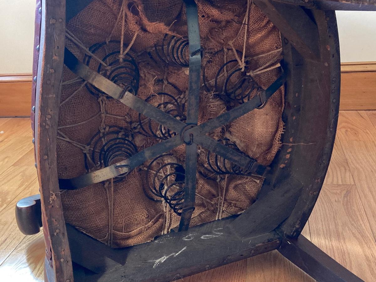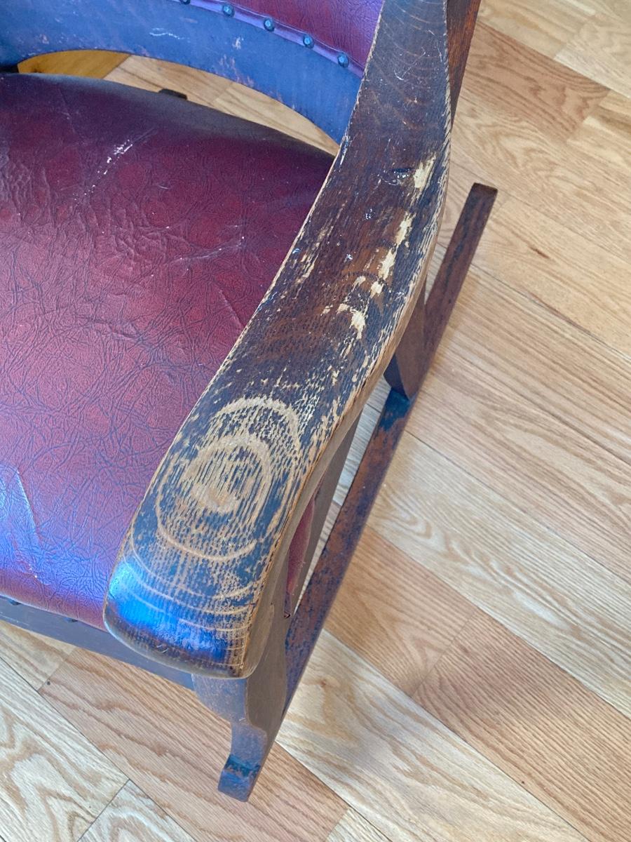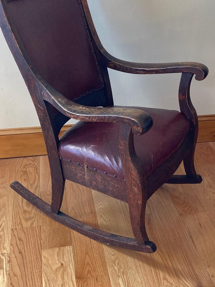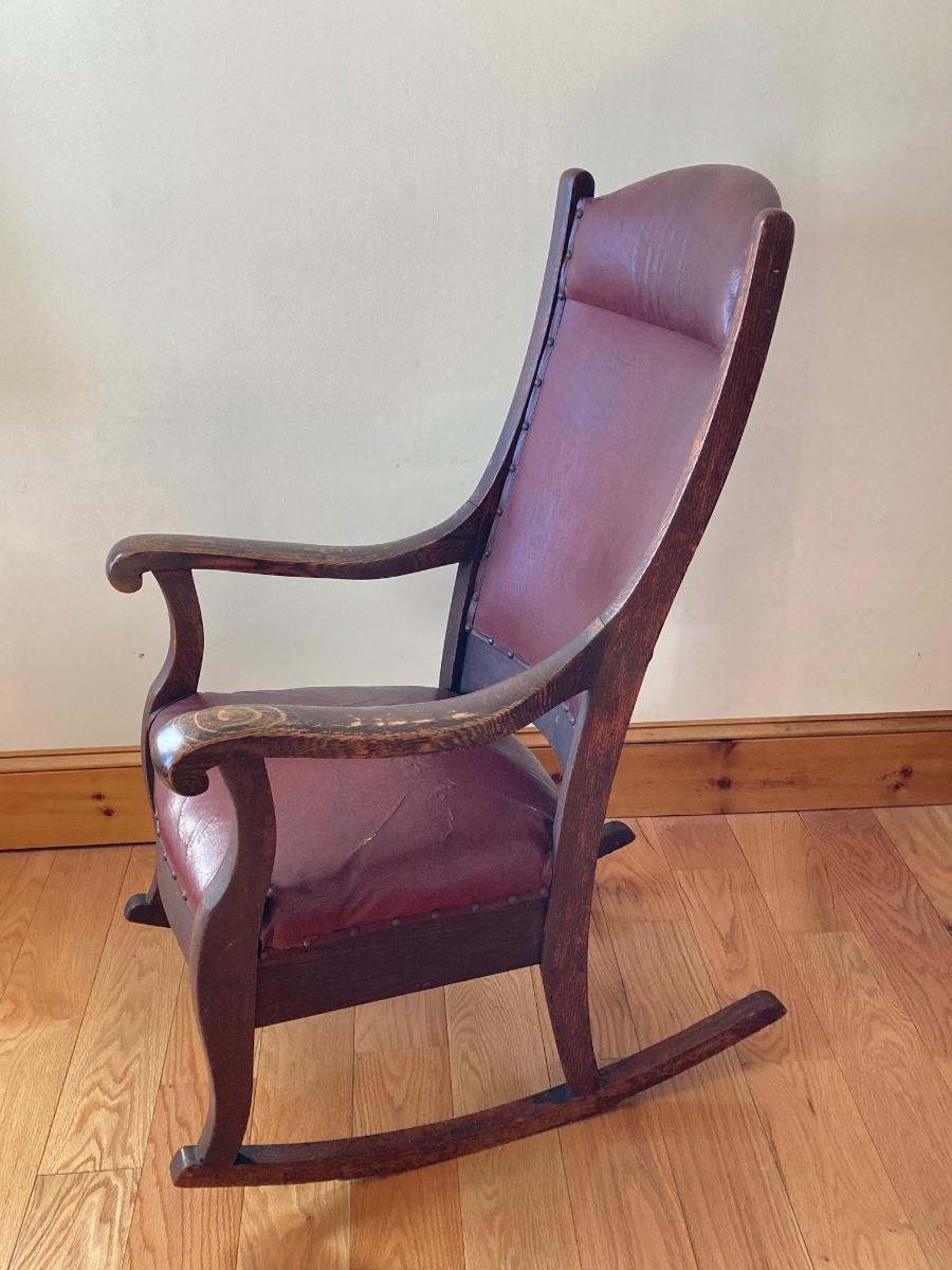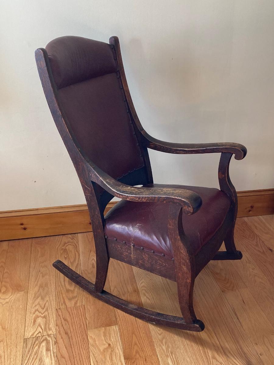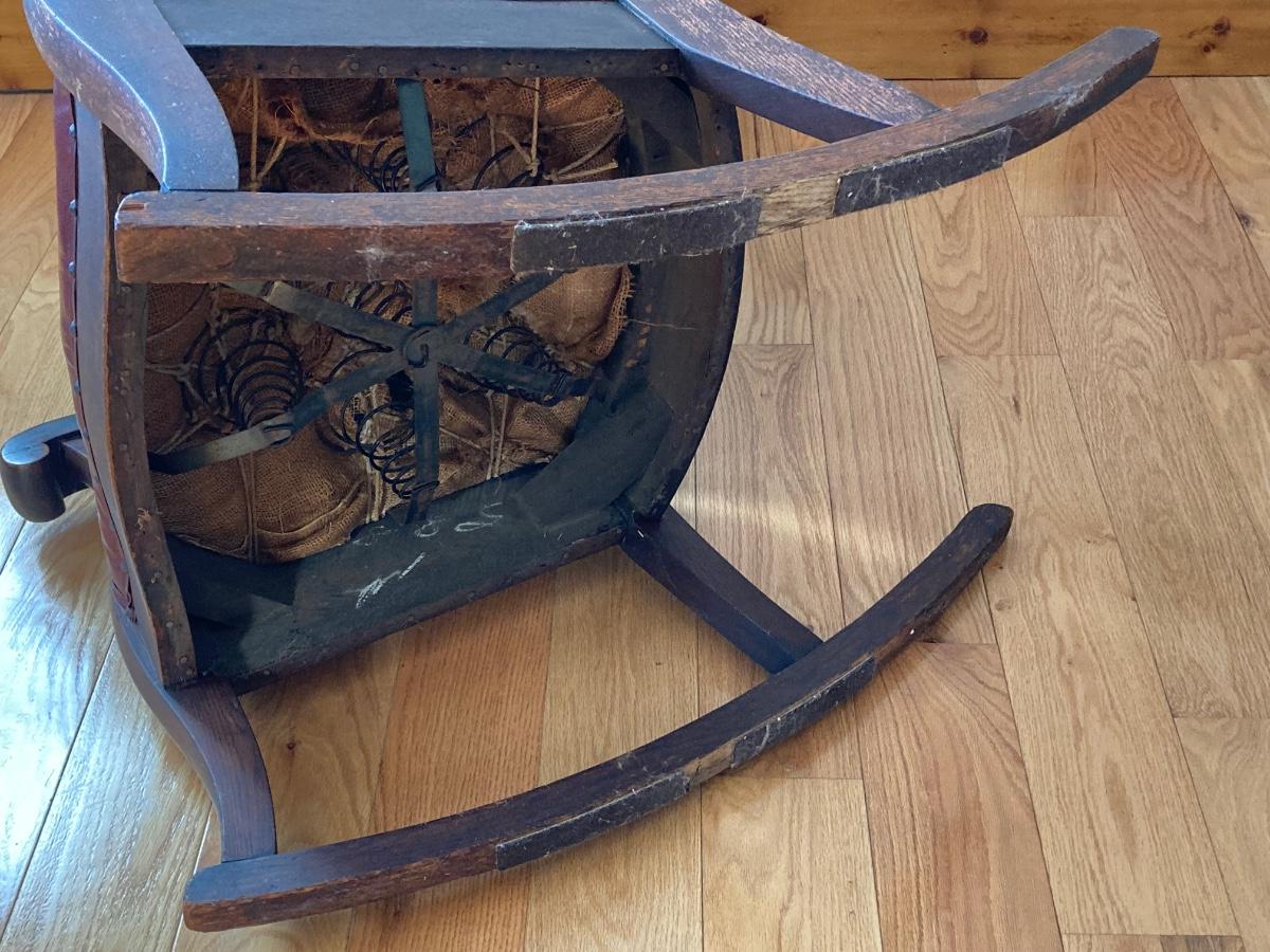 LOT 28: Vintage Wood and Leather Upholstered Rocking Chair
