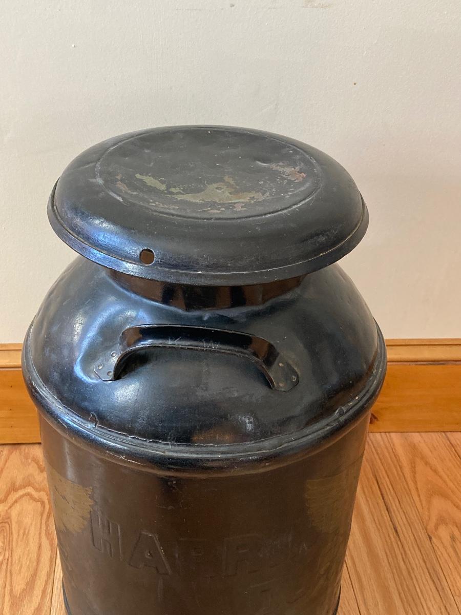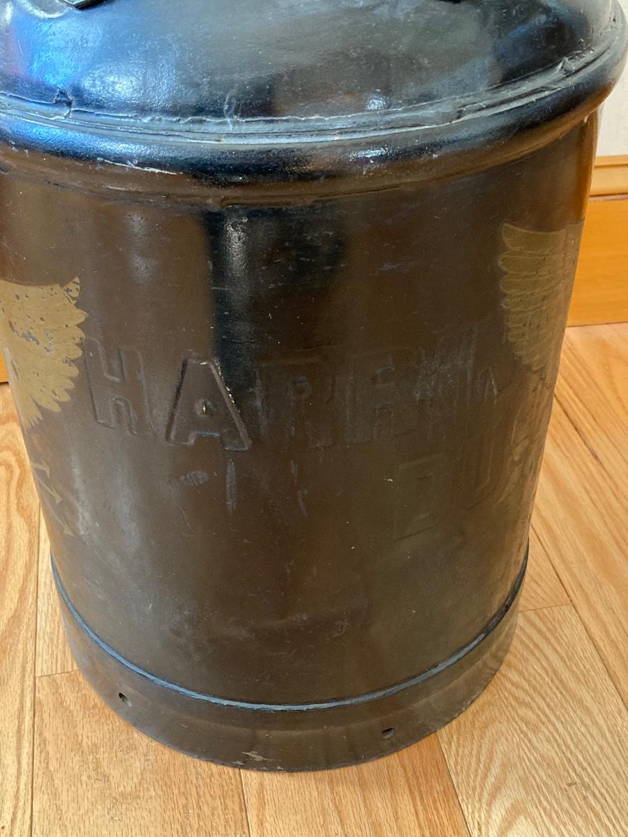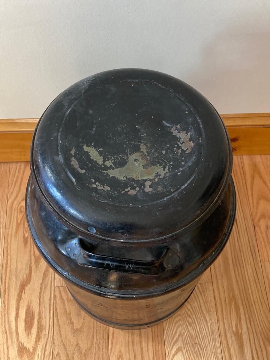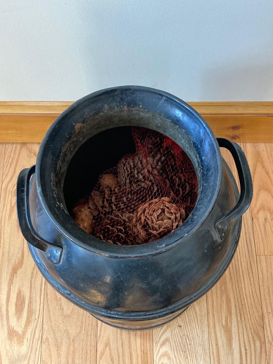 LOT 29: Vintage Early American Eagle Metal Milk / Dairy Container filled with Pine Cones