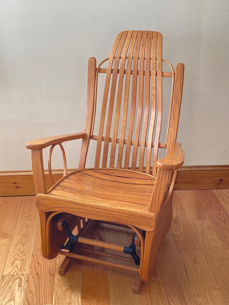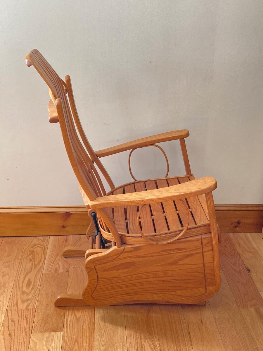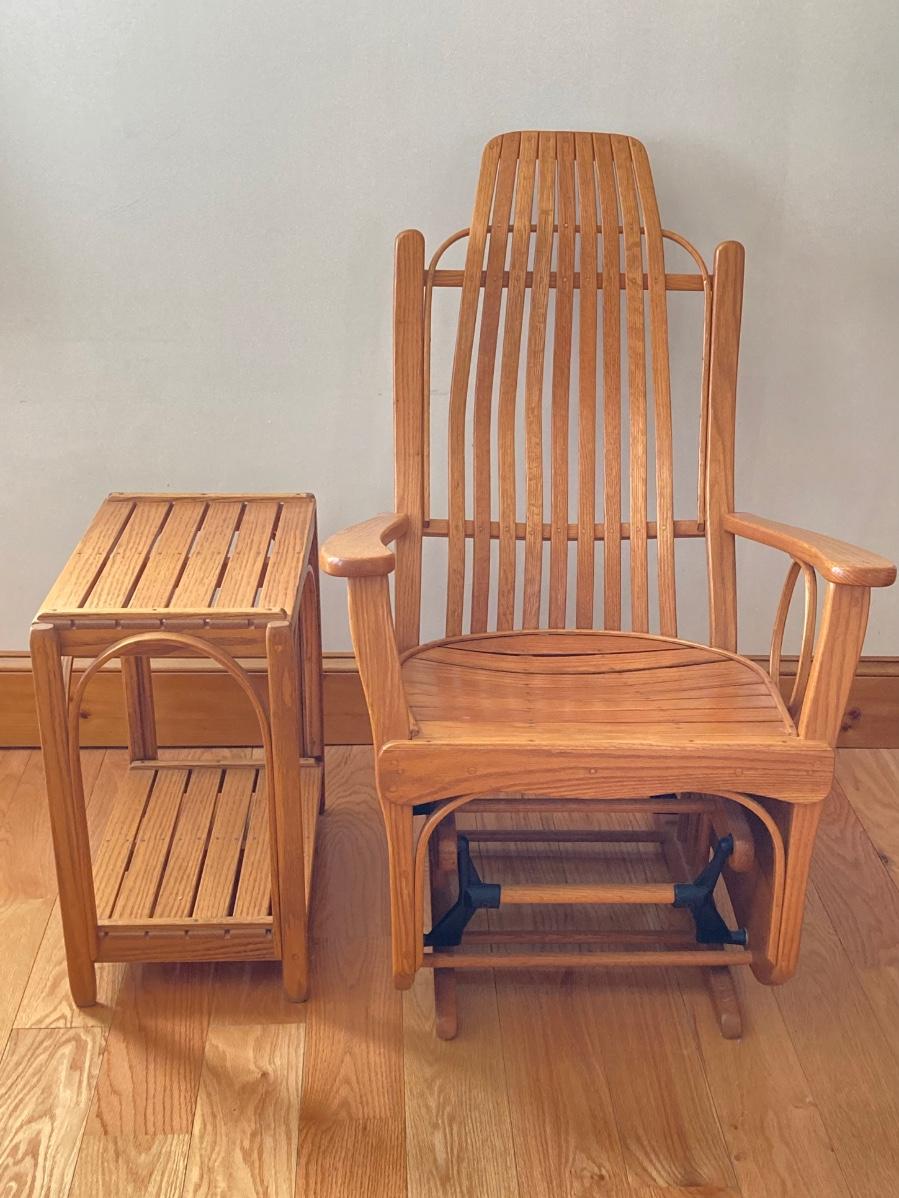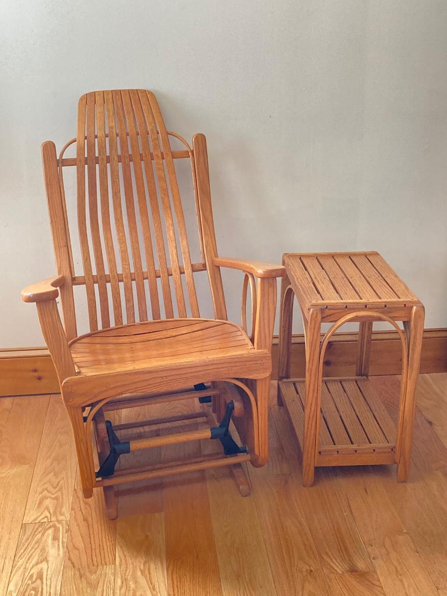 LOT 31: Bent Oak Glider Rocking Chair with End Table