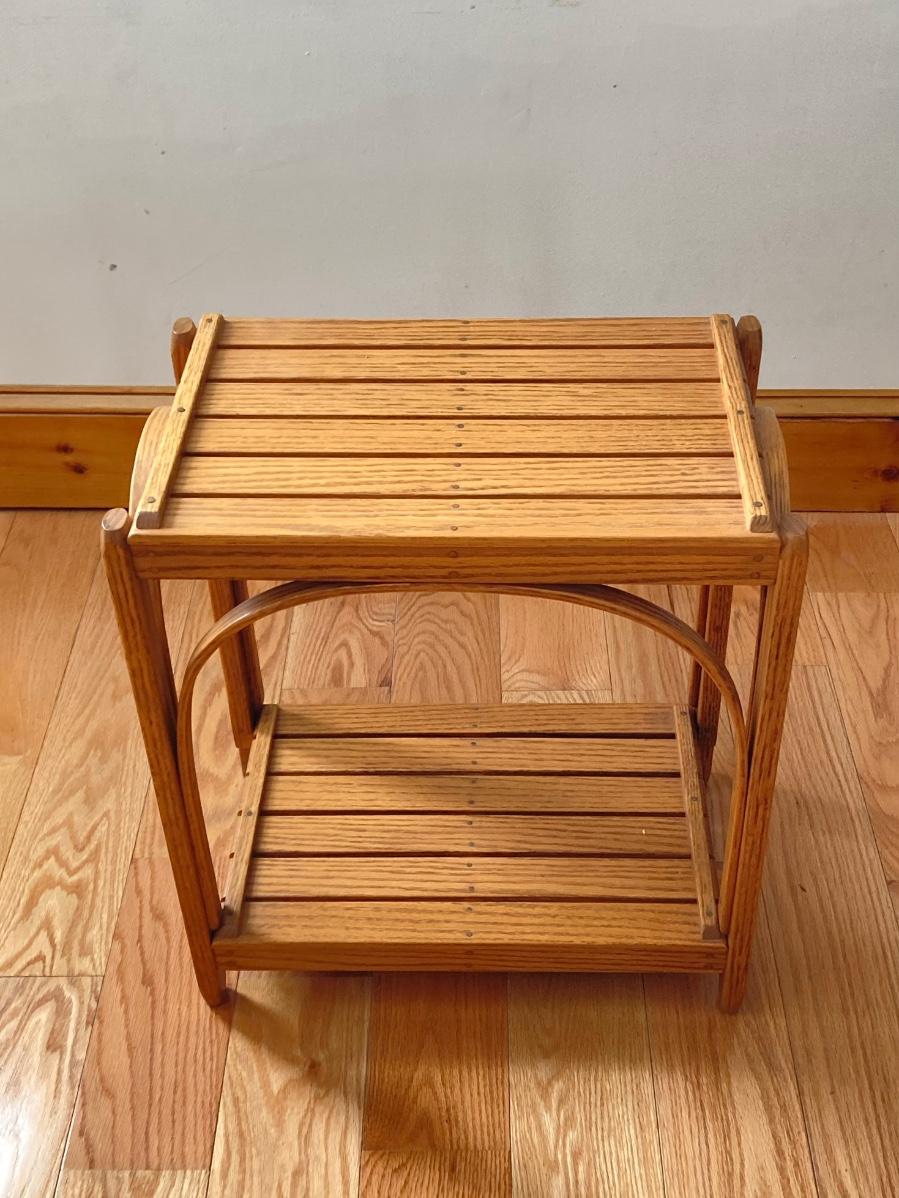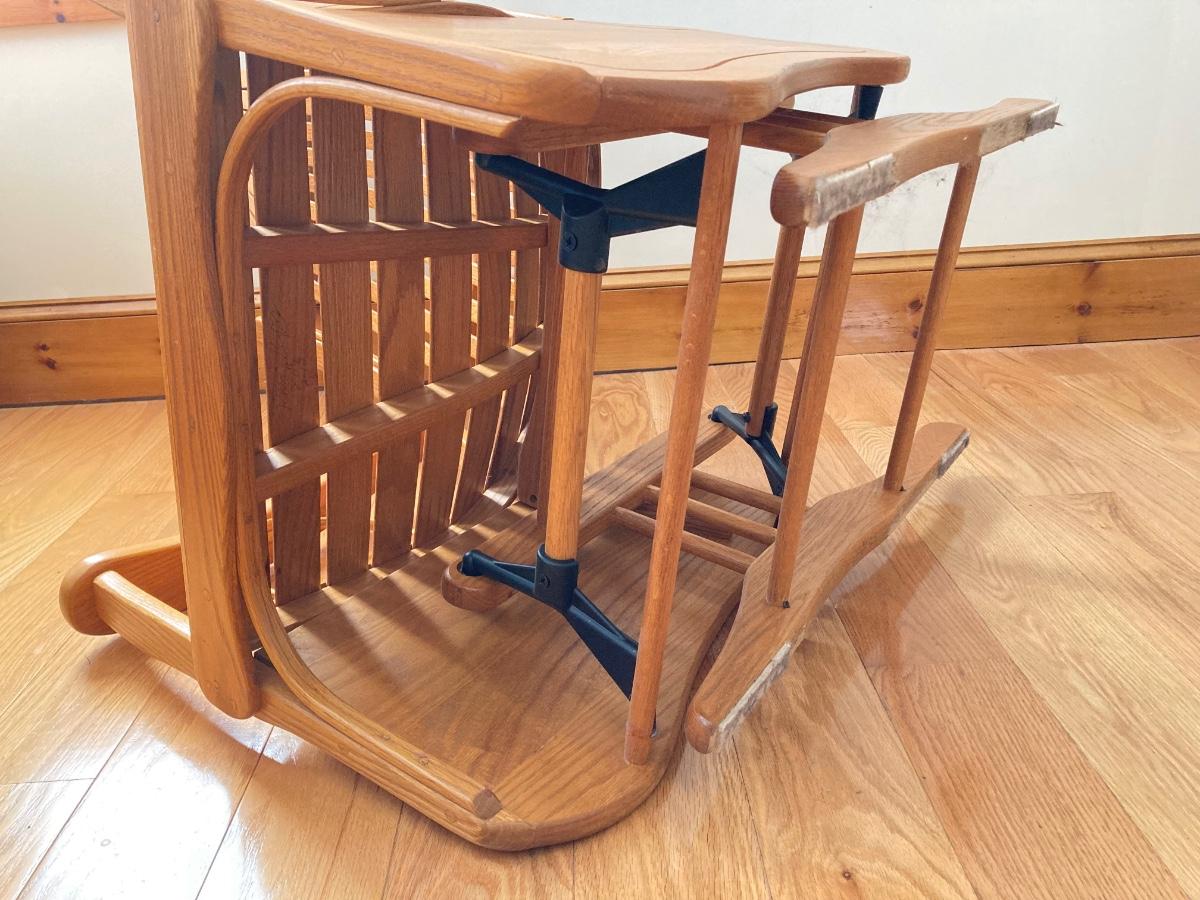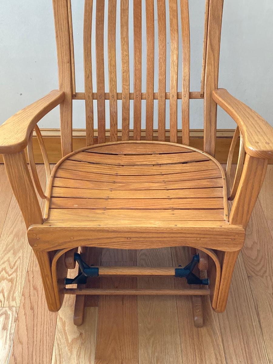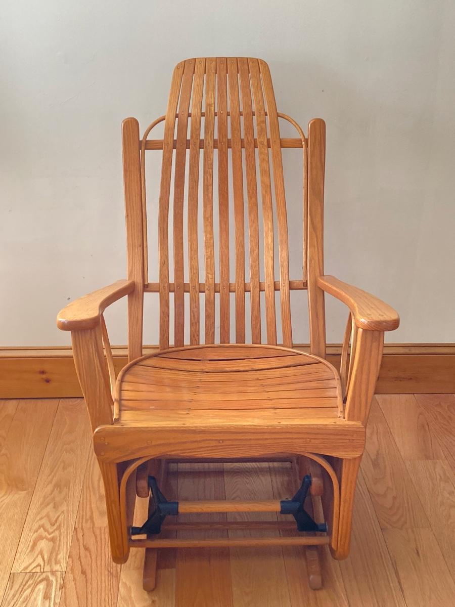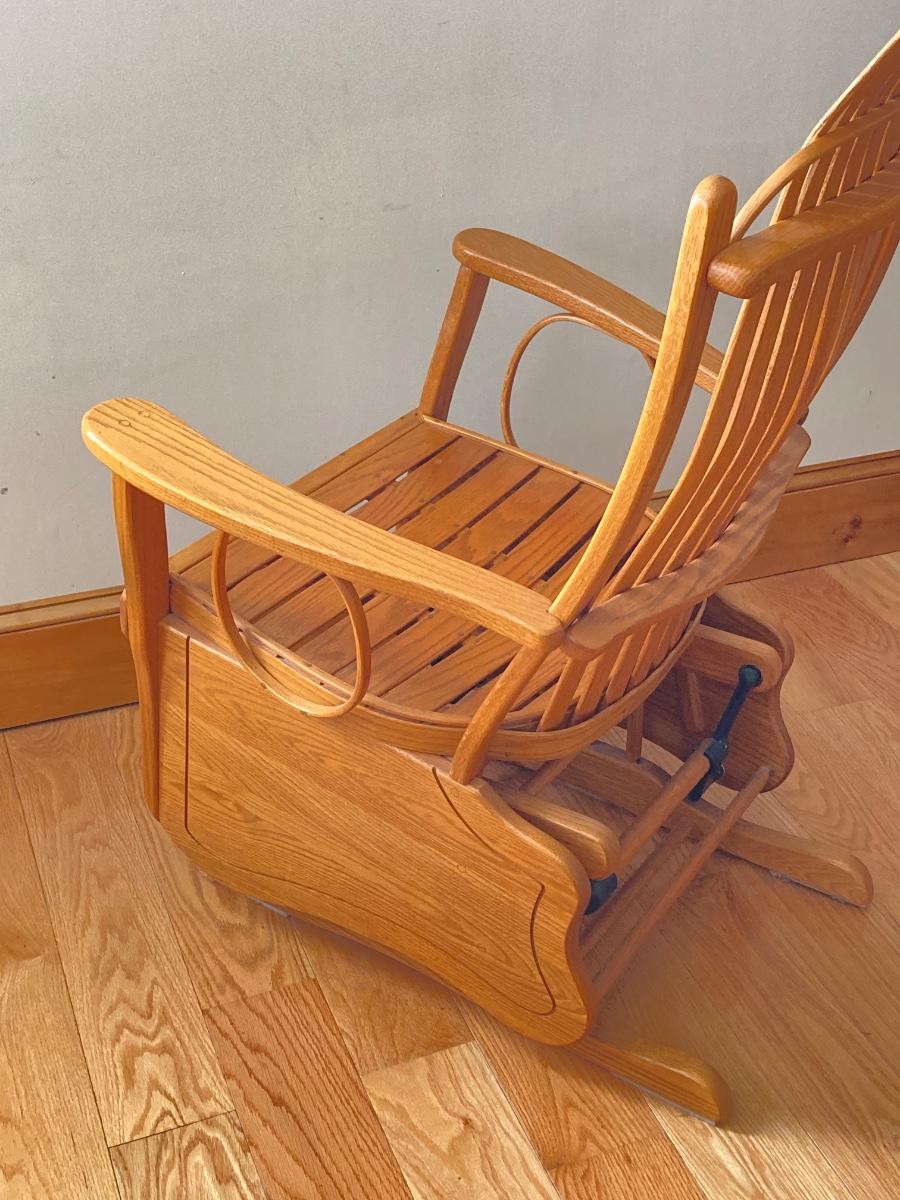 LOT 31: Bent Oak Glider Rocking Chair with End Table