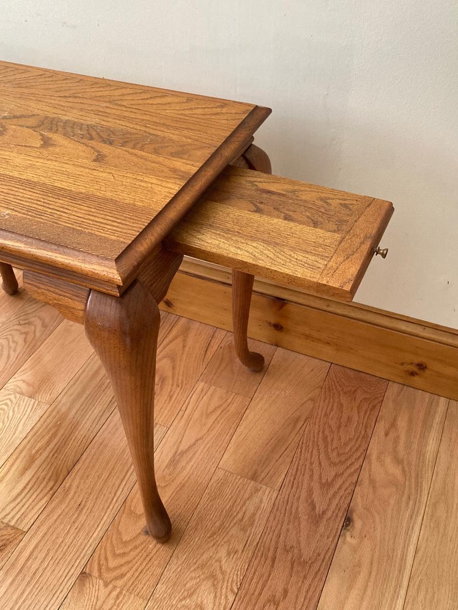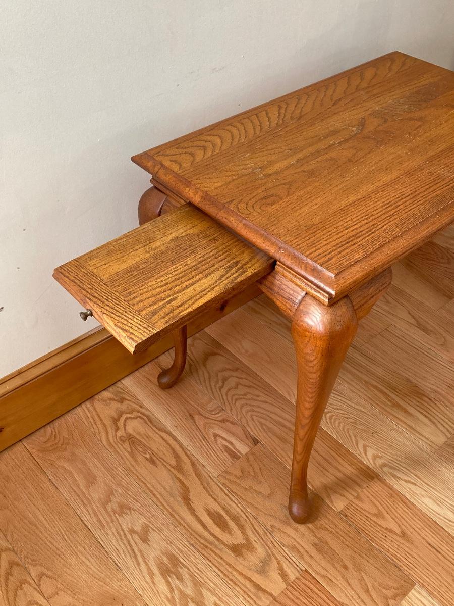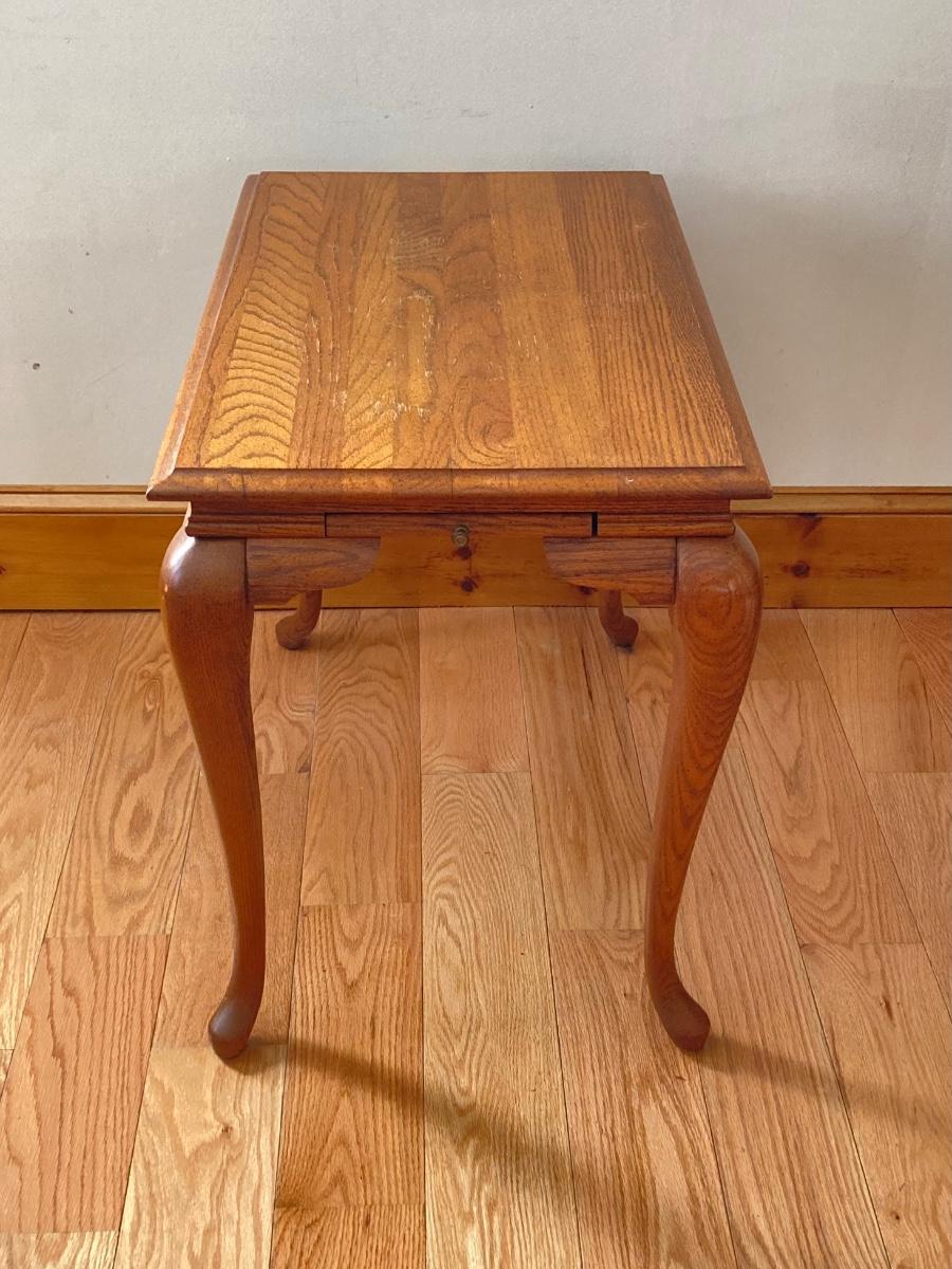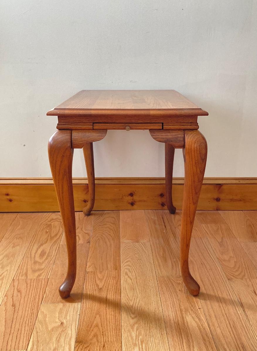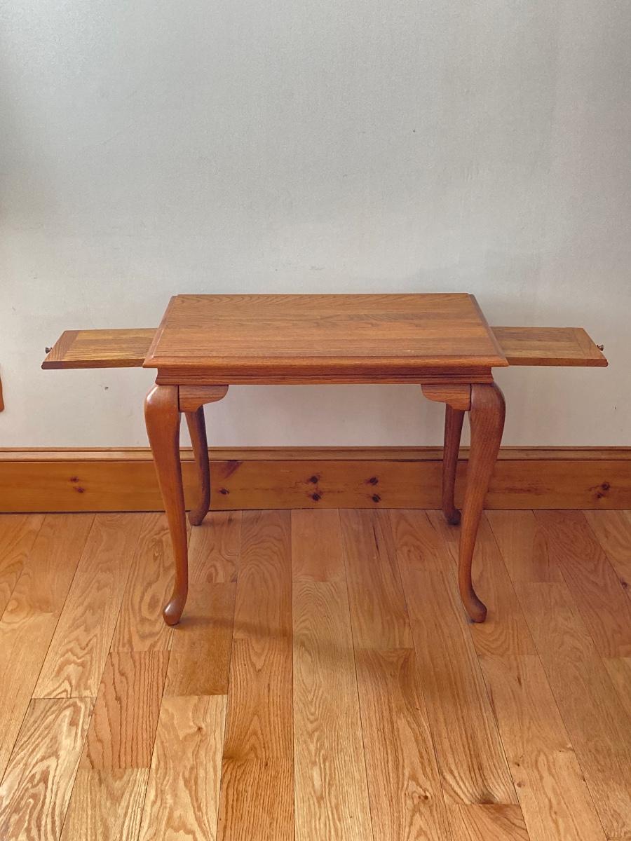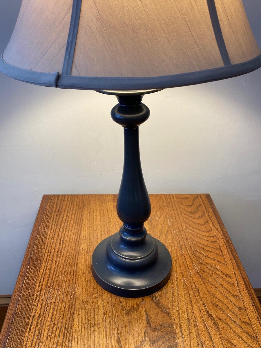 LOT 32: Wooden Side Table with Slide Out Trays (Made in USA) and Metal Table Lamp