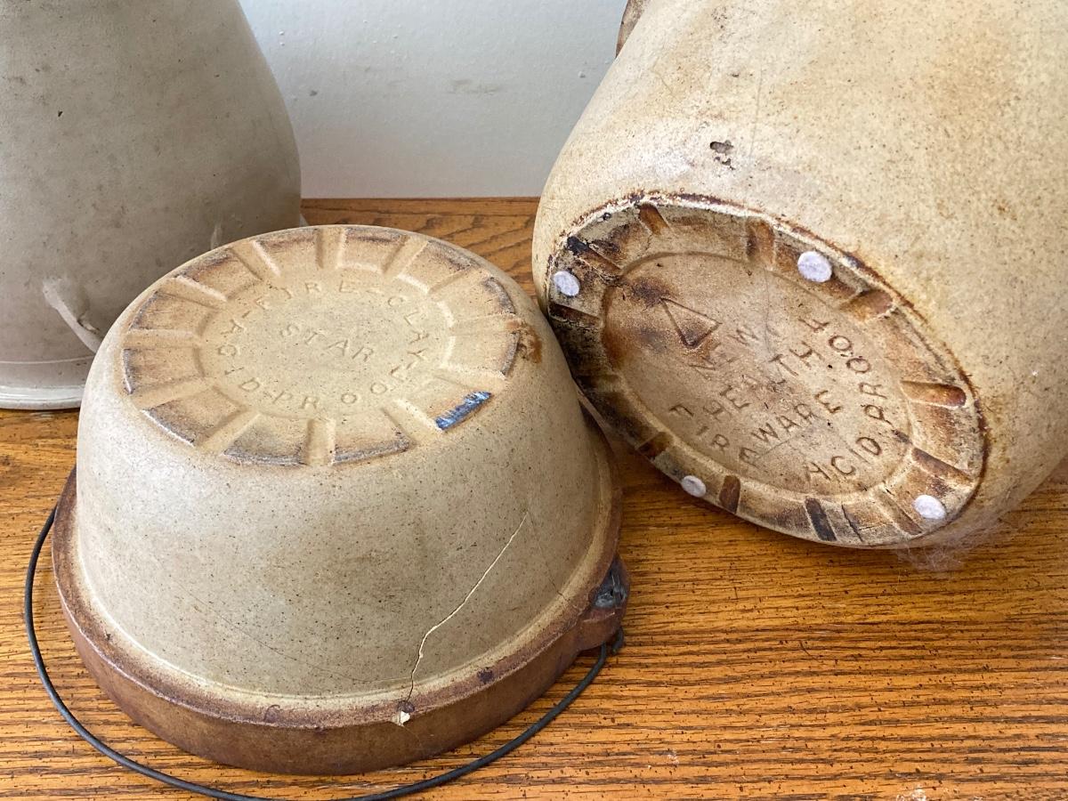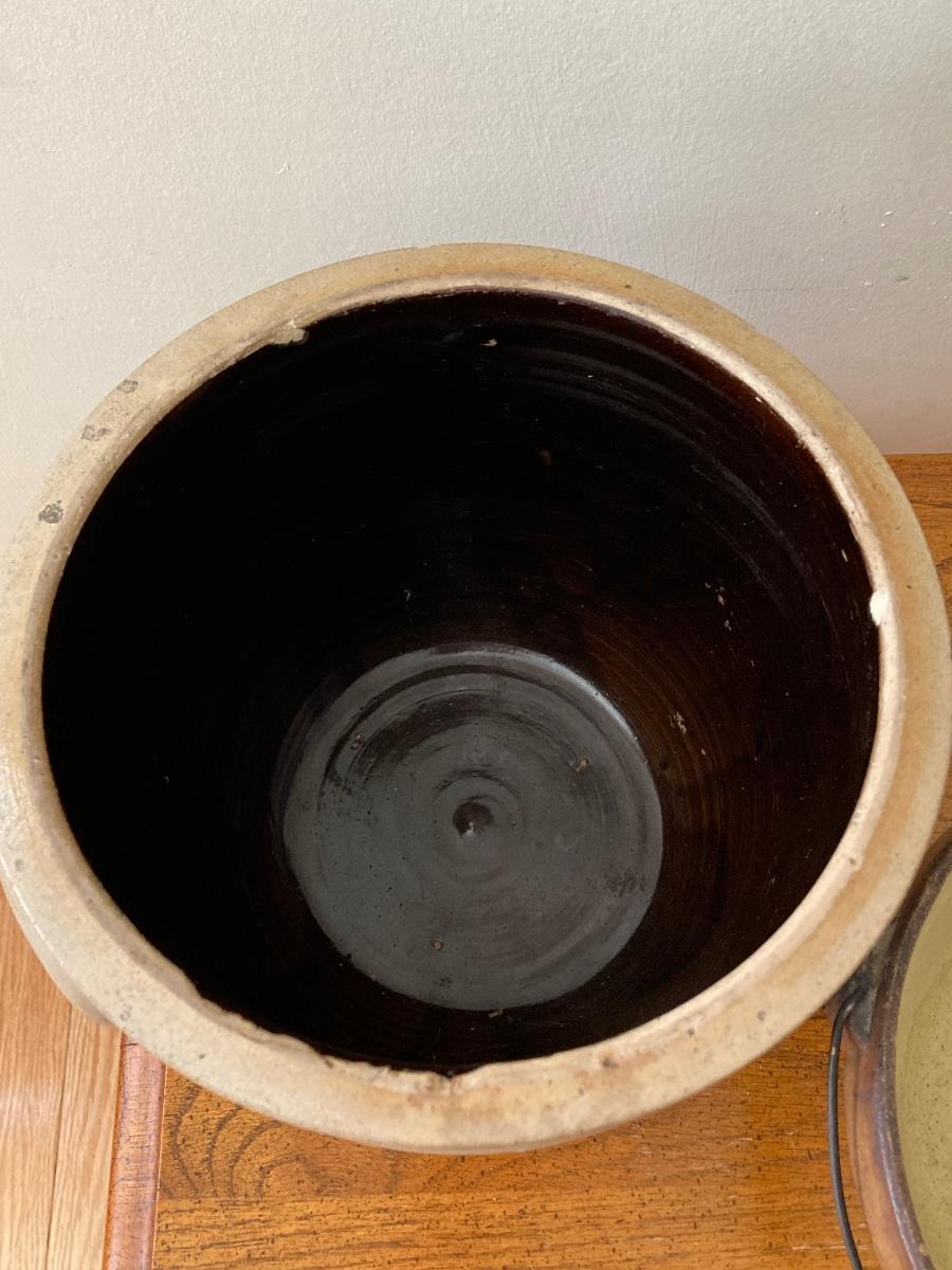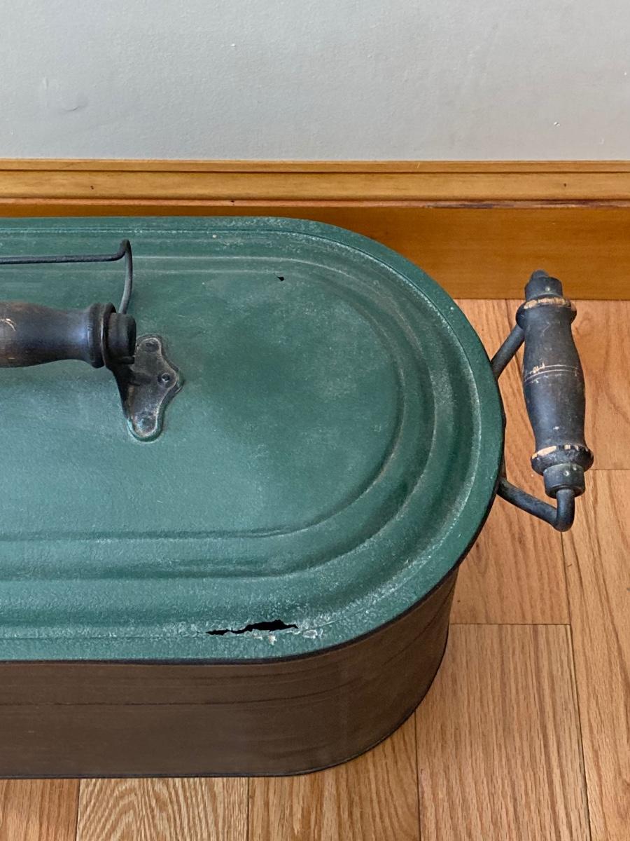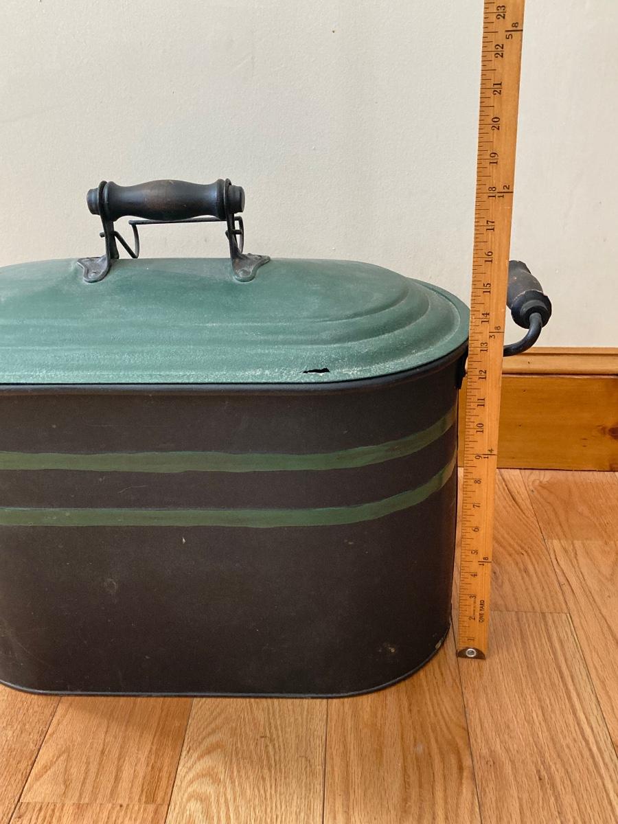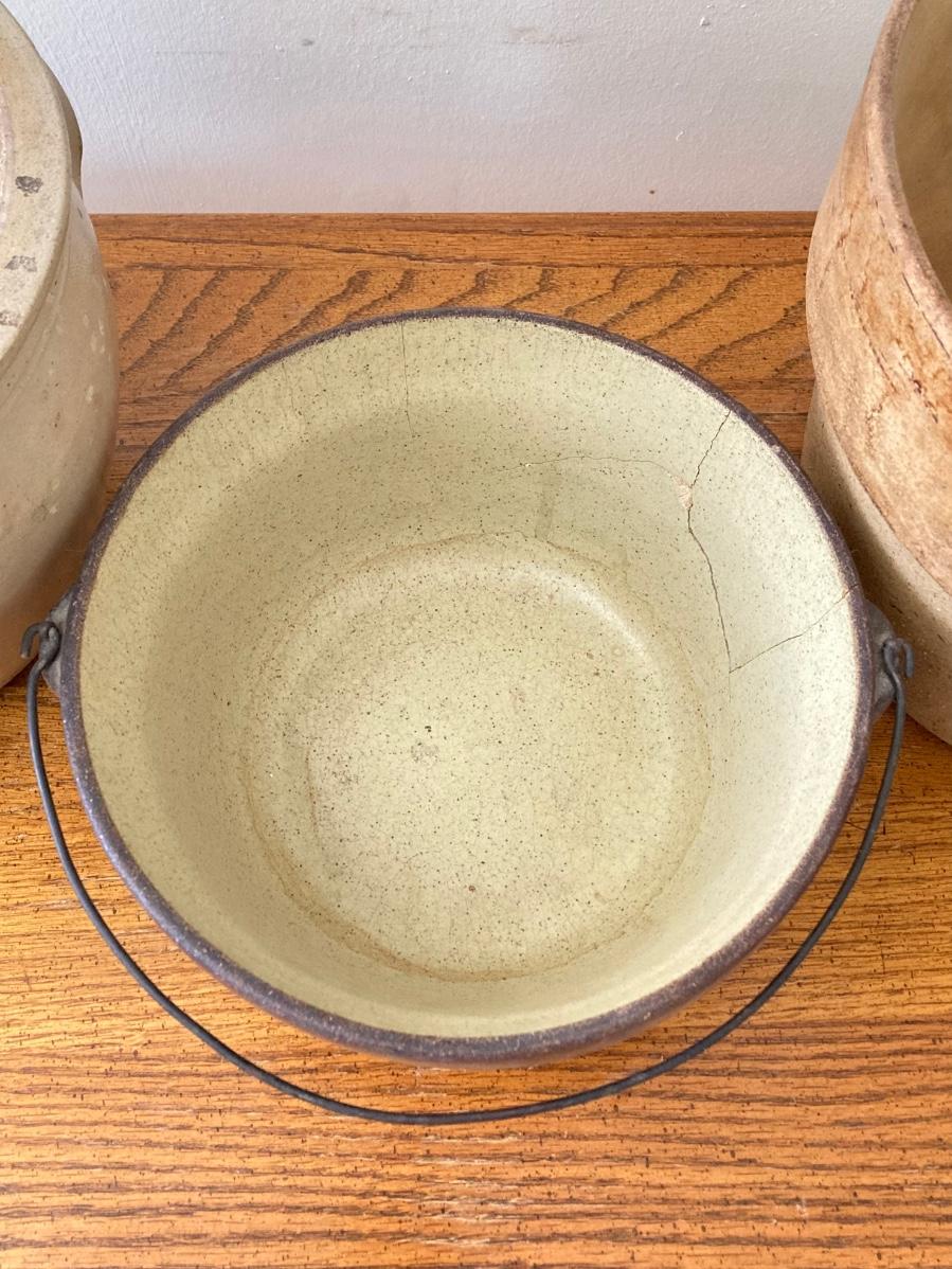 LOT 33: Vintage Painted Boiler / Wash Tub with Three Pottery Bowls