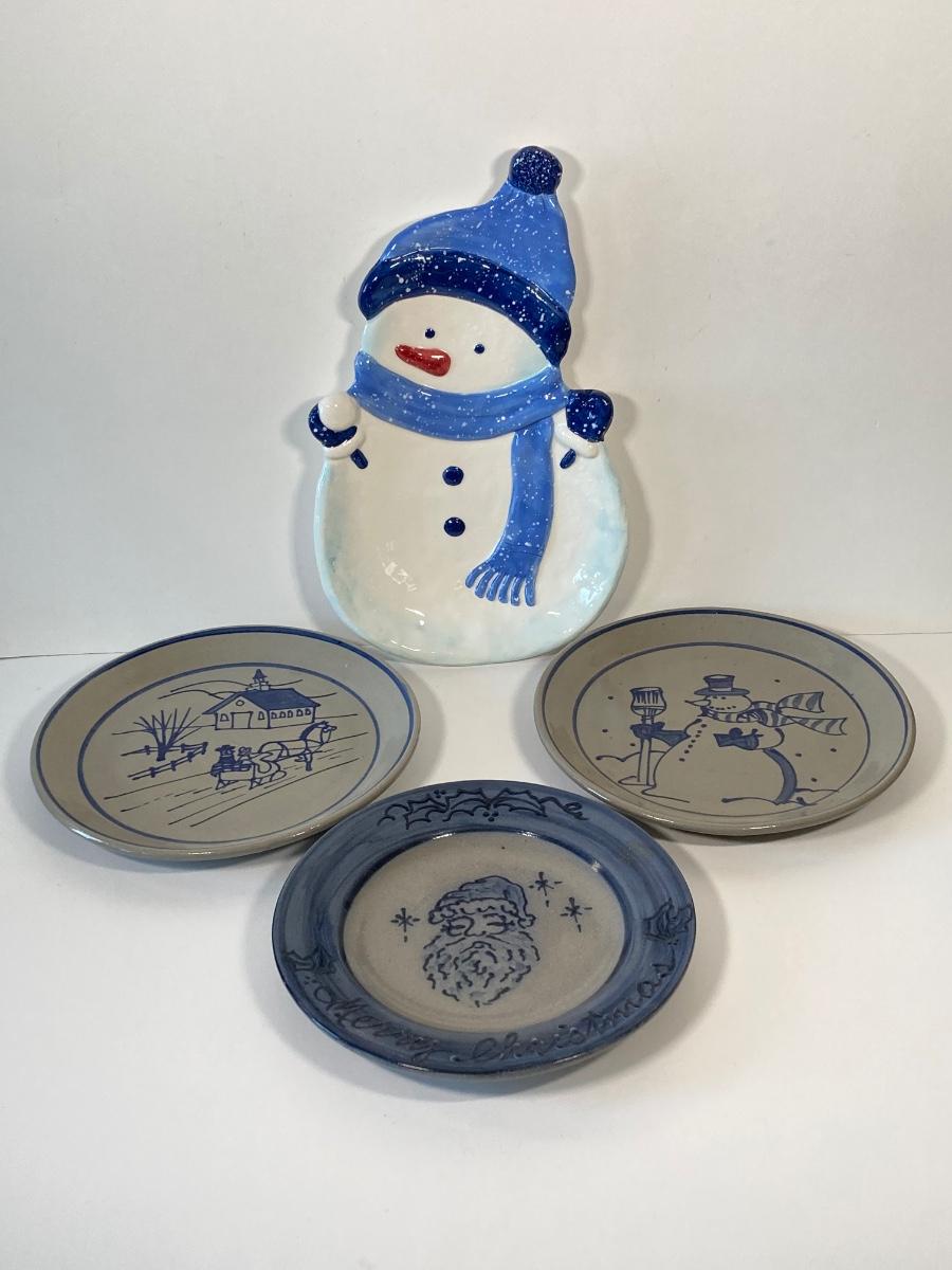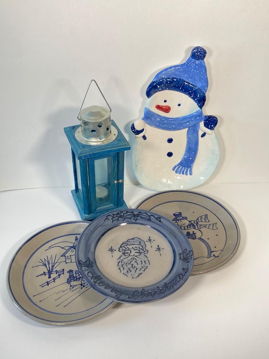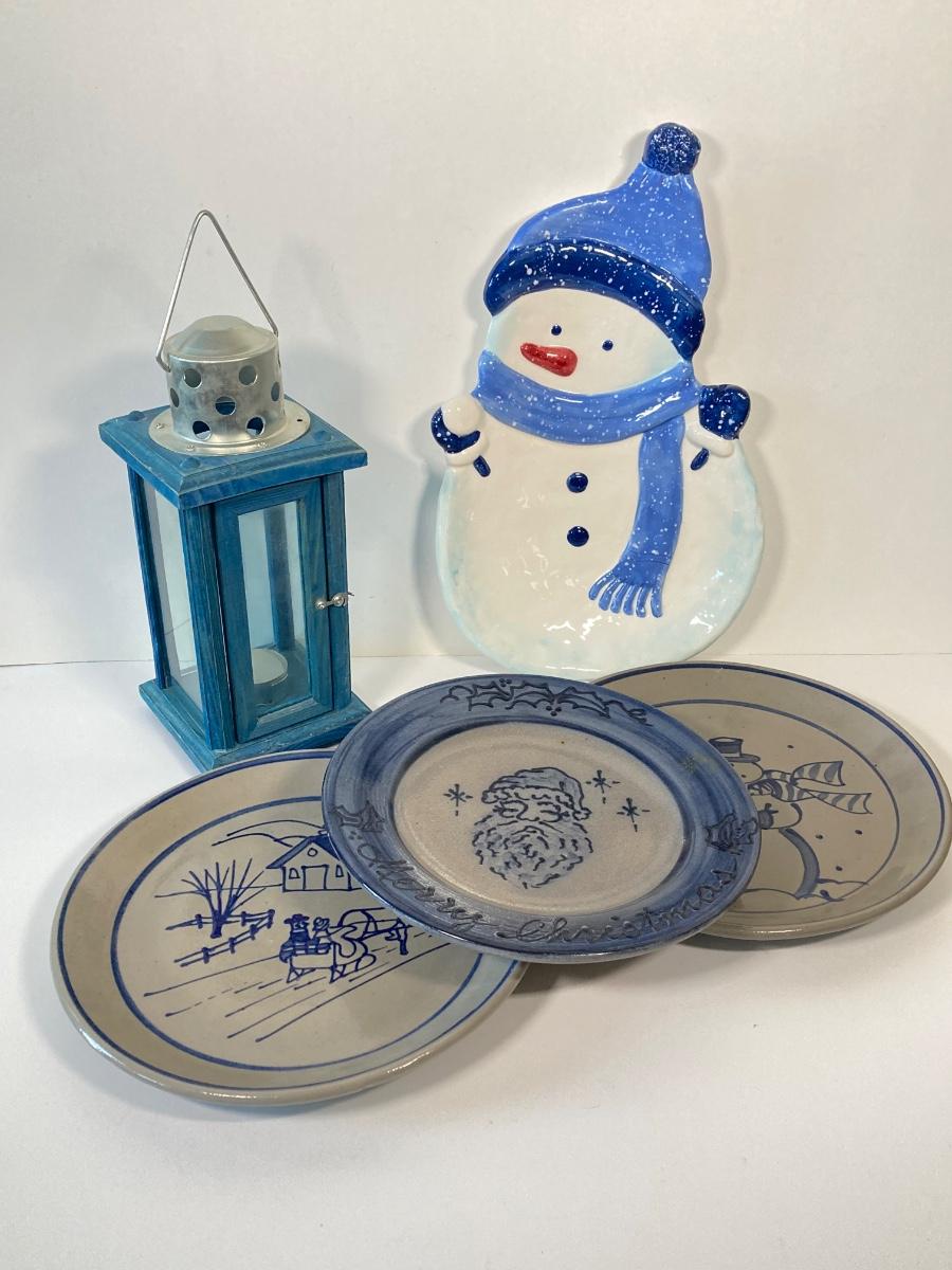 LOT 43: Pottery Collection - Beaumont Bros / Rowe Pottery Plates, Snowman Dish and Lantern