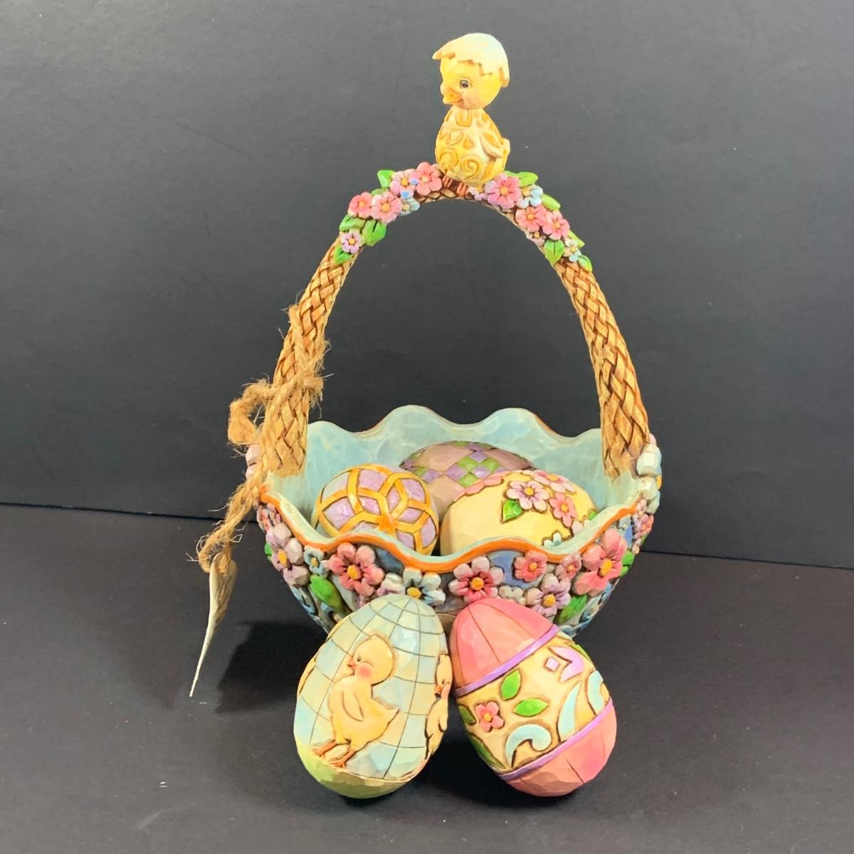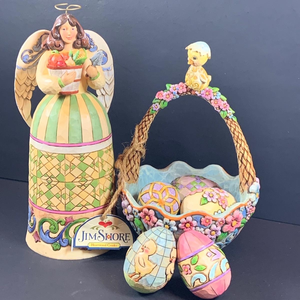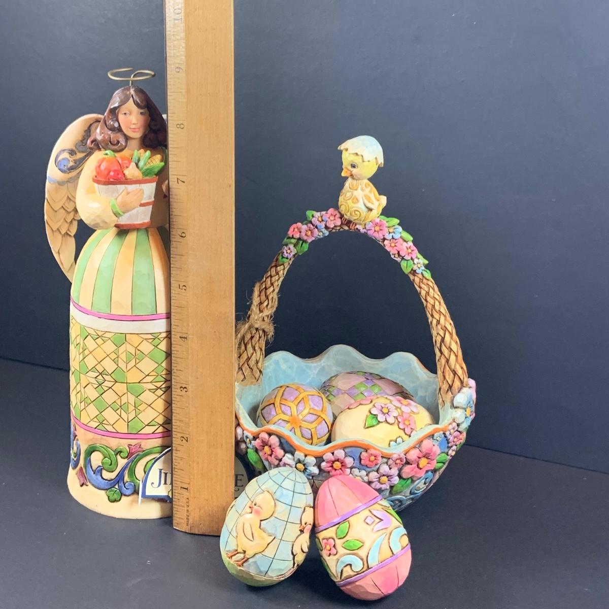 LOT:56: Jim Shore Heartwood Creek "Biddie Basket" Easter Basket with 5 Eggs Figurine and "Devoted" Angel of Persistence Figure