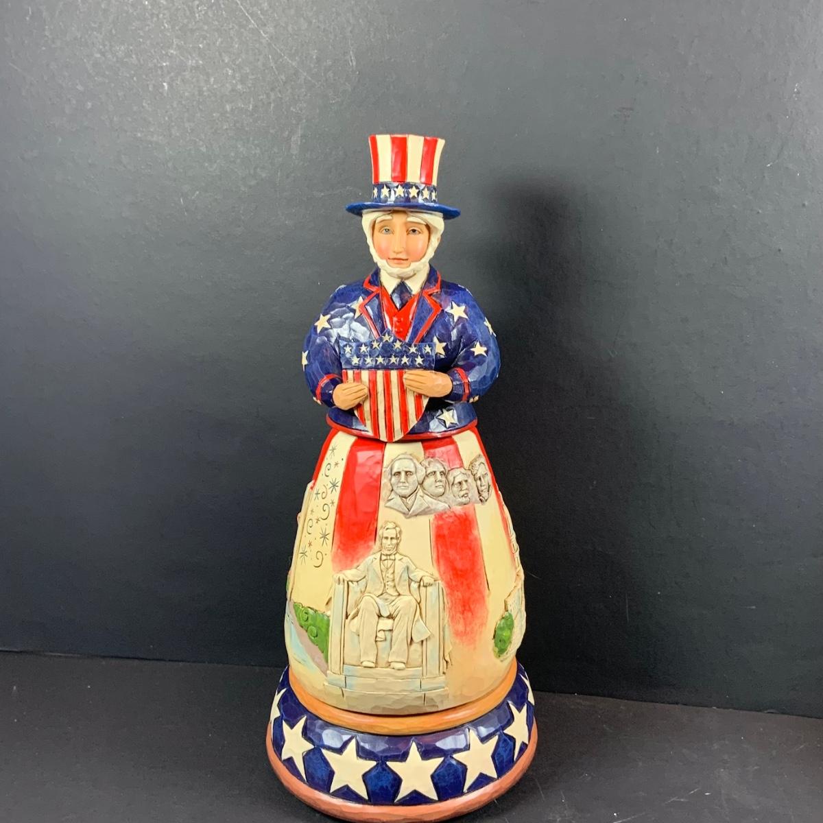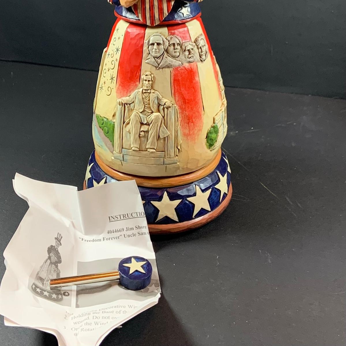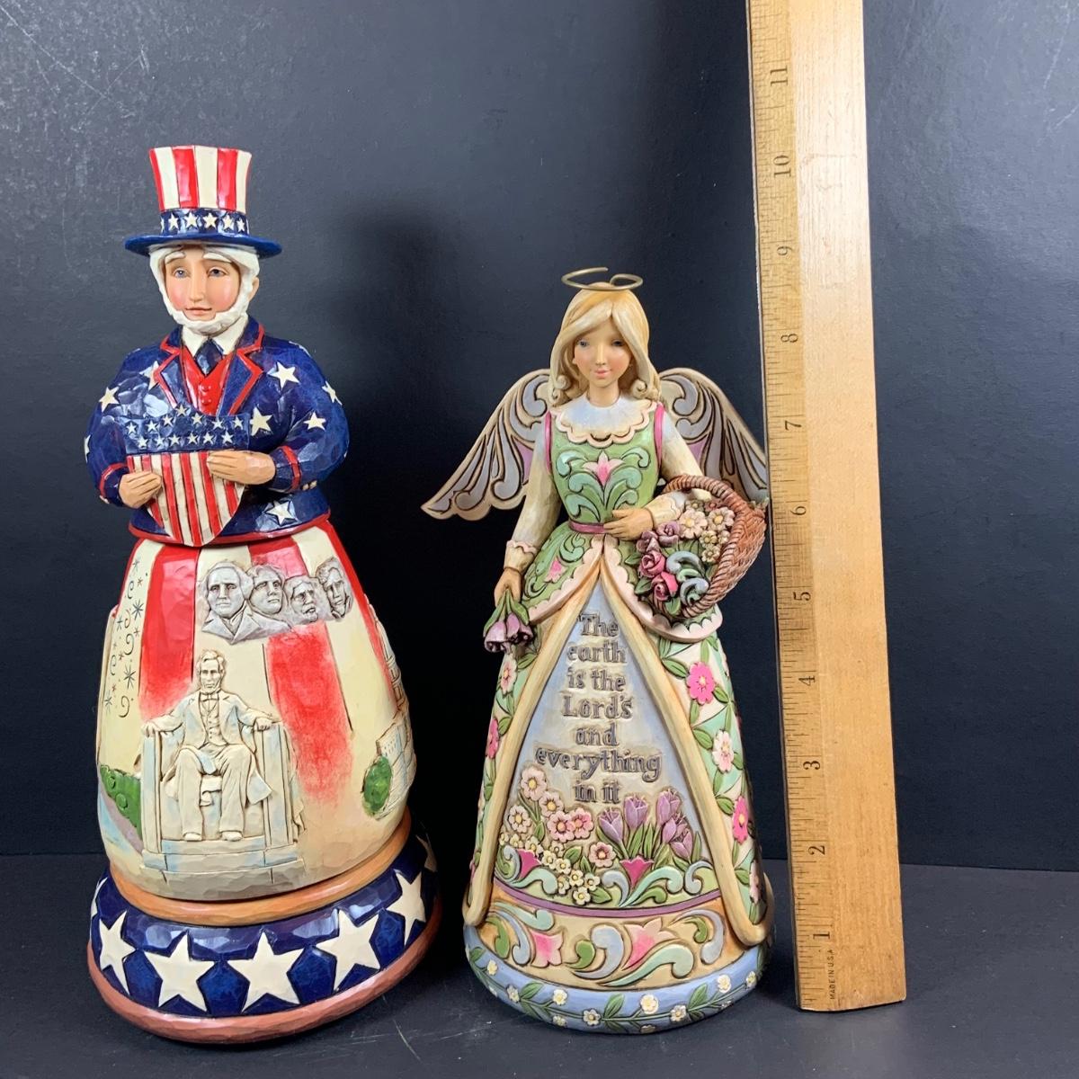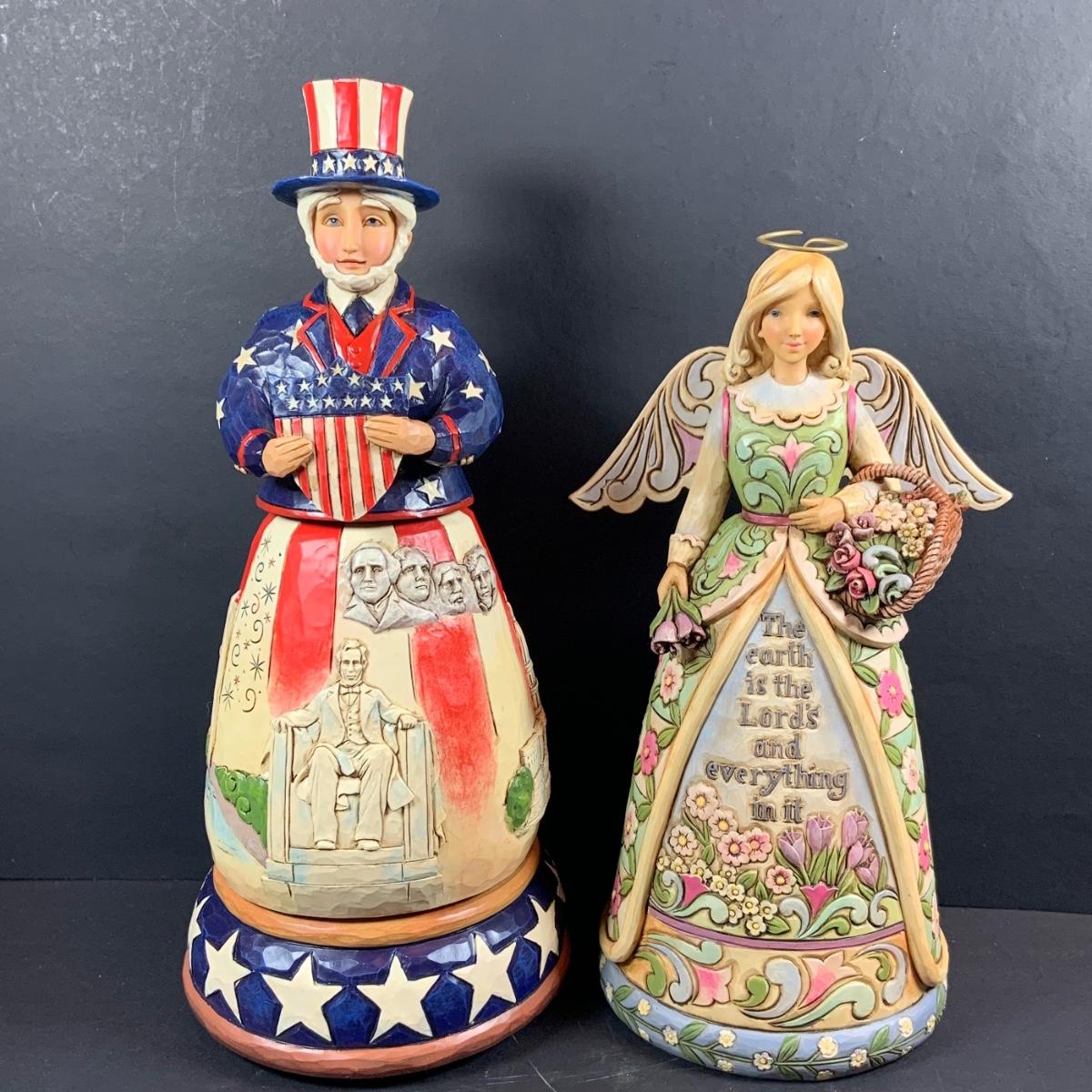 LOT:58: Jim Shore Heartwood Creek "Freedom Forever" Uncle Sam Music Box and "Glory in the Garden" Angel Figurine Both with Original Boxes