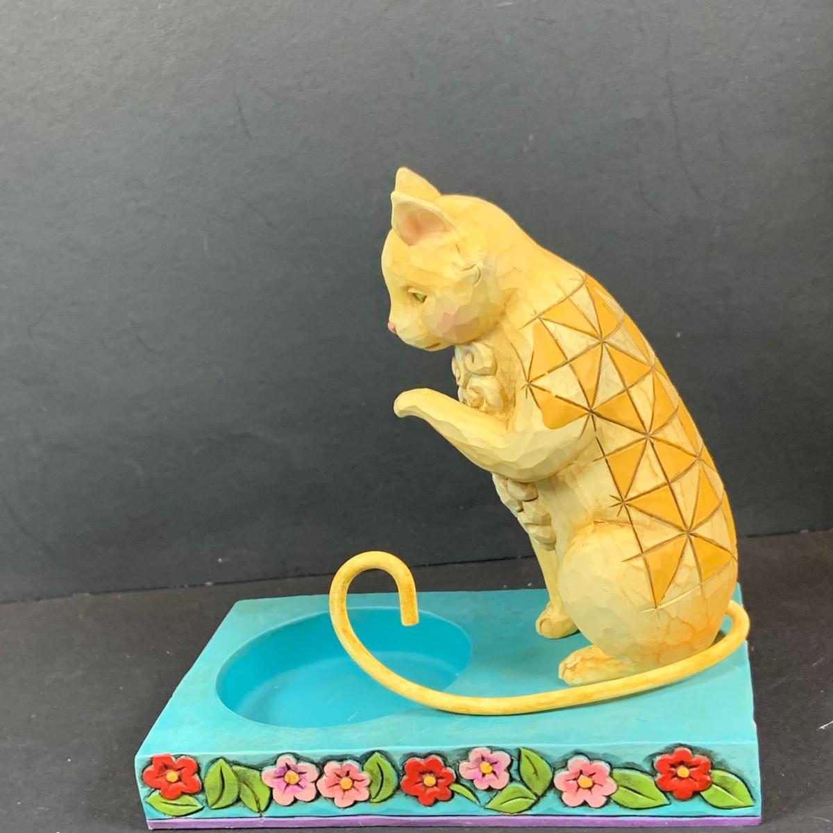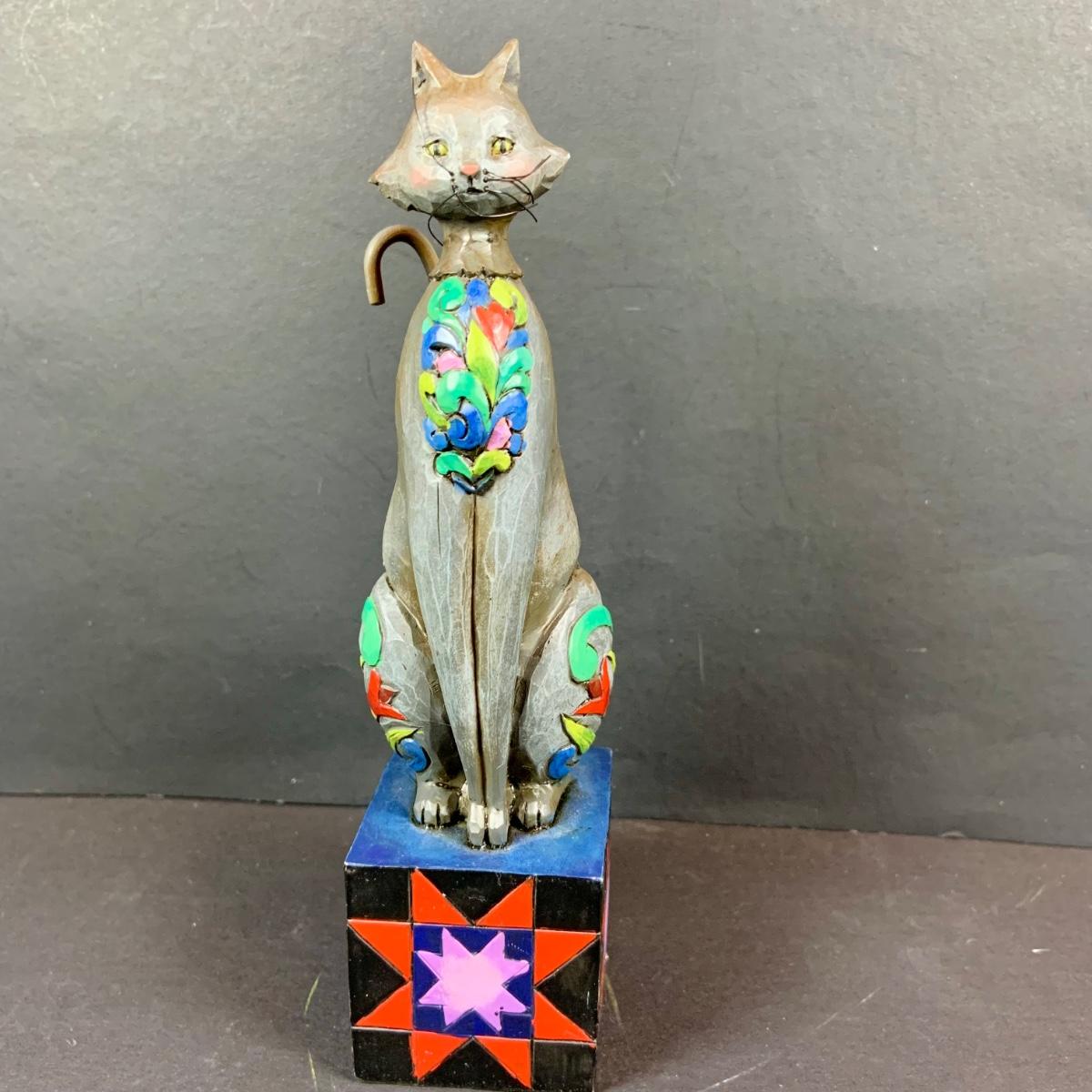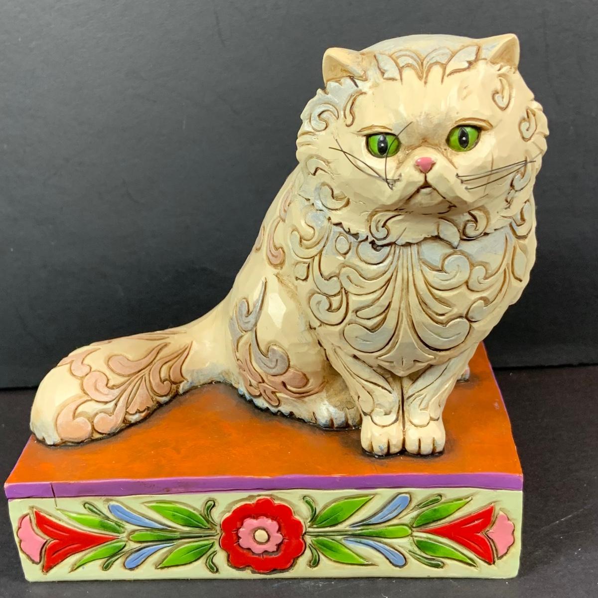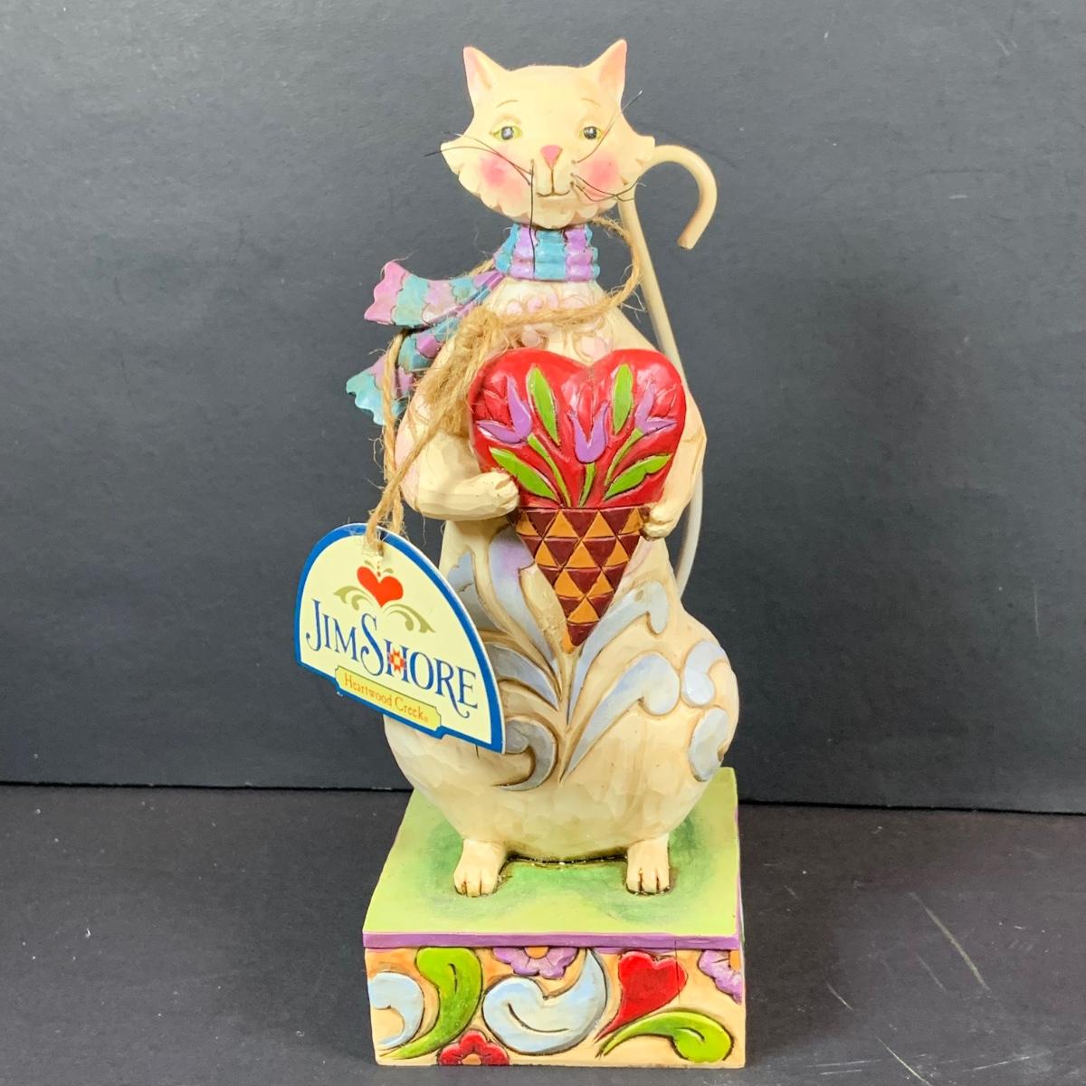 LOT:60: Collection of Jim Shore 5 Cats - "Victoria" Persian Cat, "Leona" Grey Cat, "Cozy Heart" and Cat Candle Holder with Boxes and One Smaller Cat Figurine More without a Box