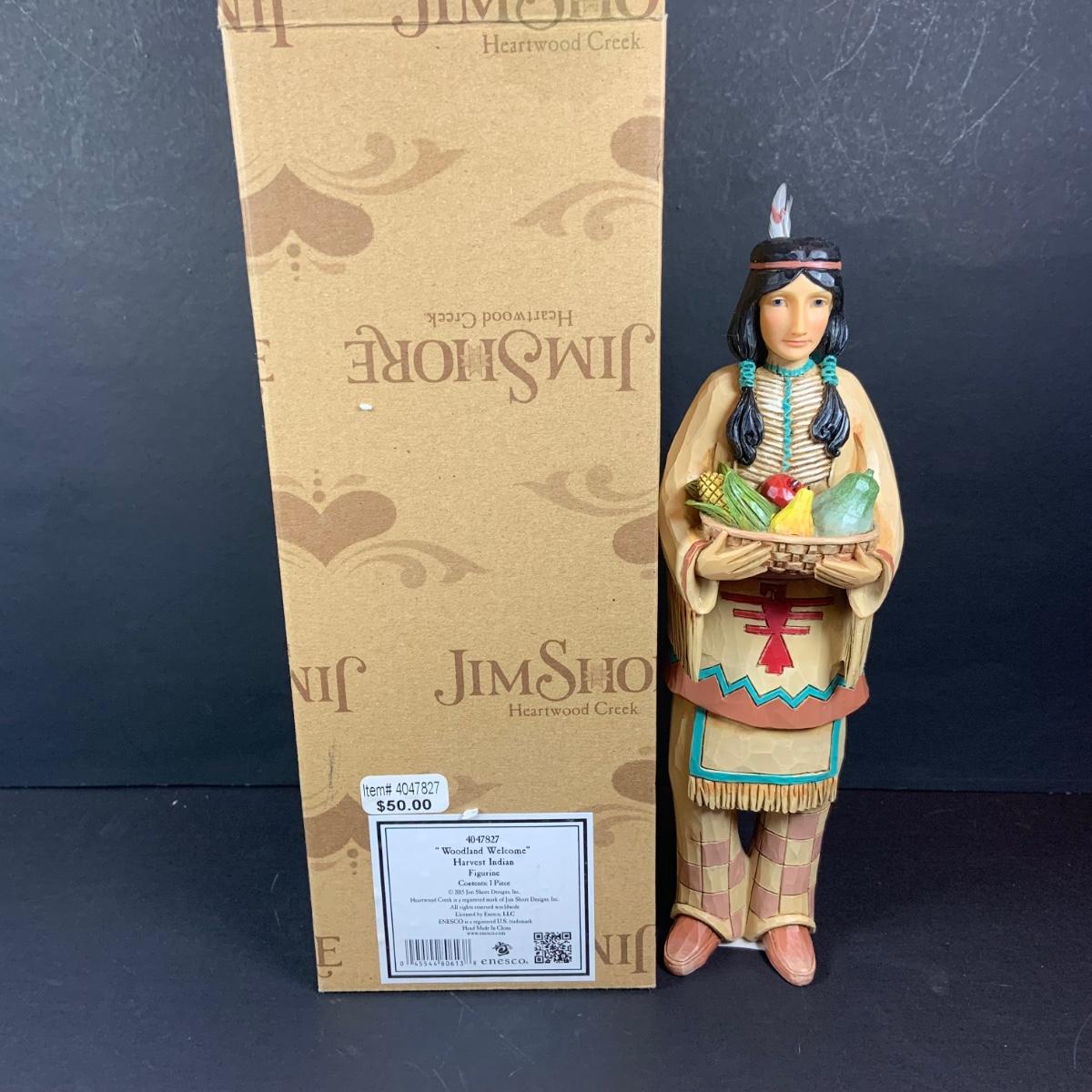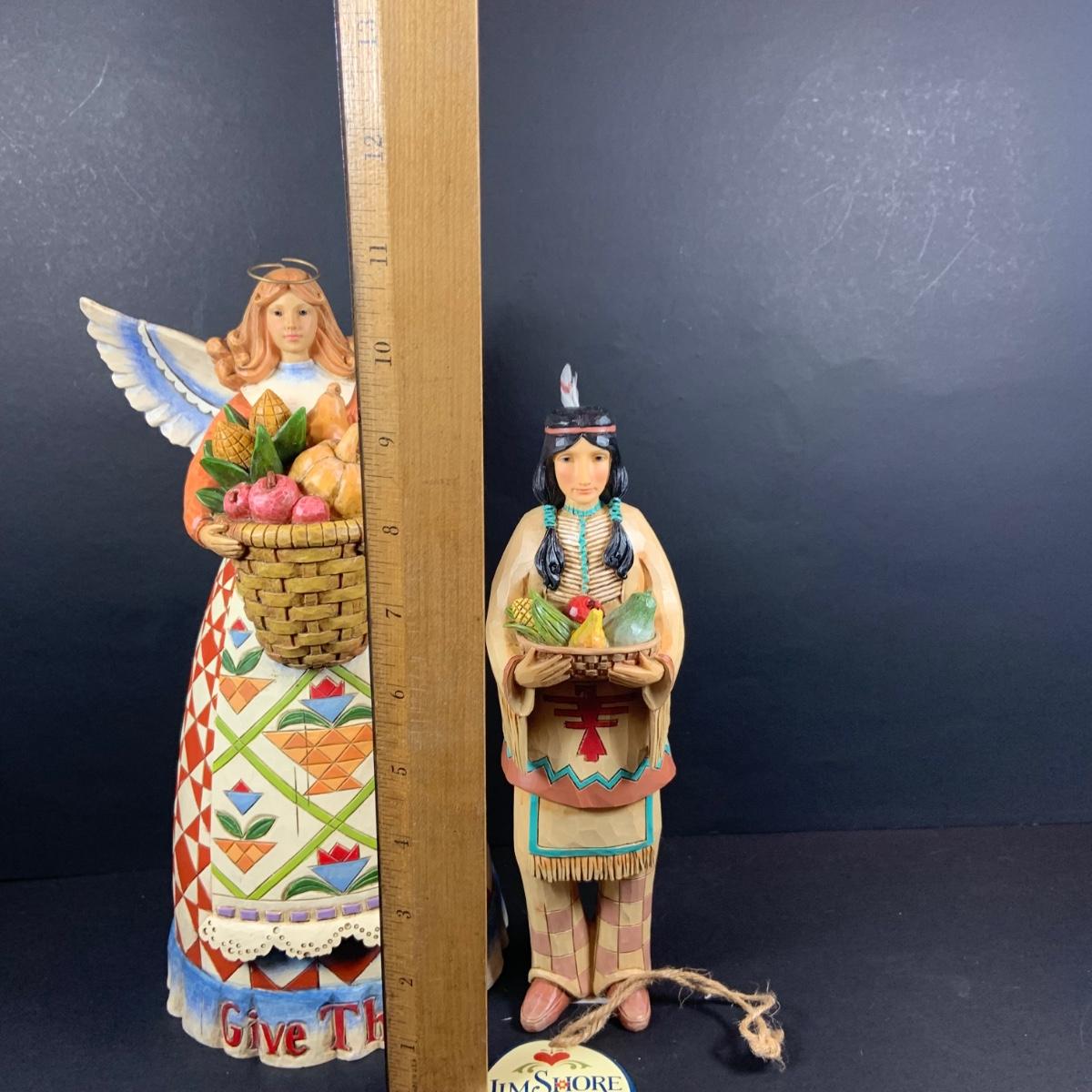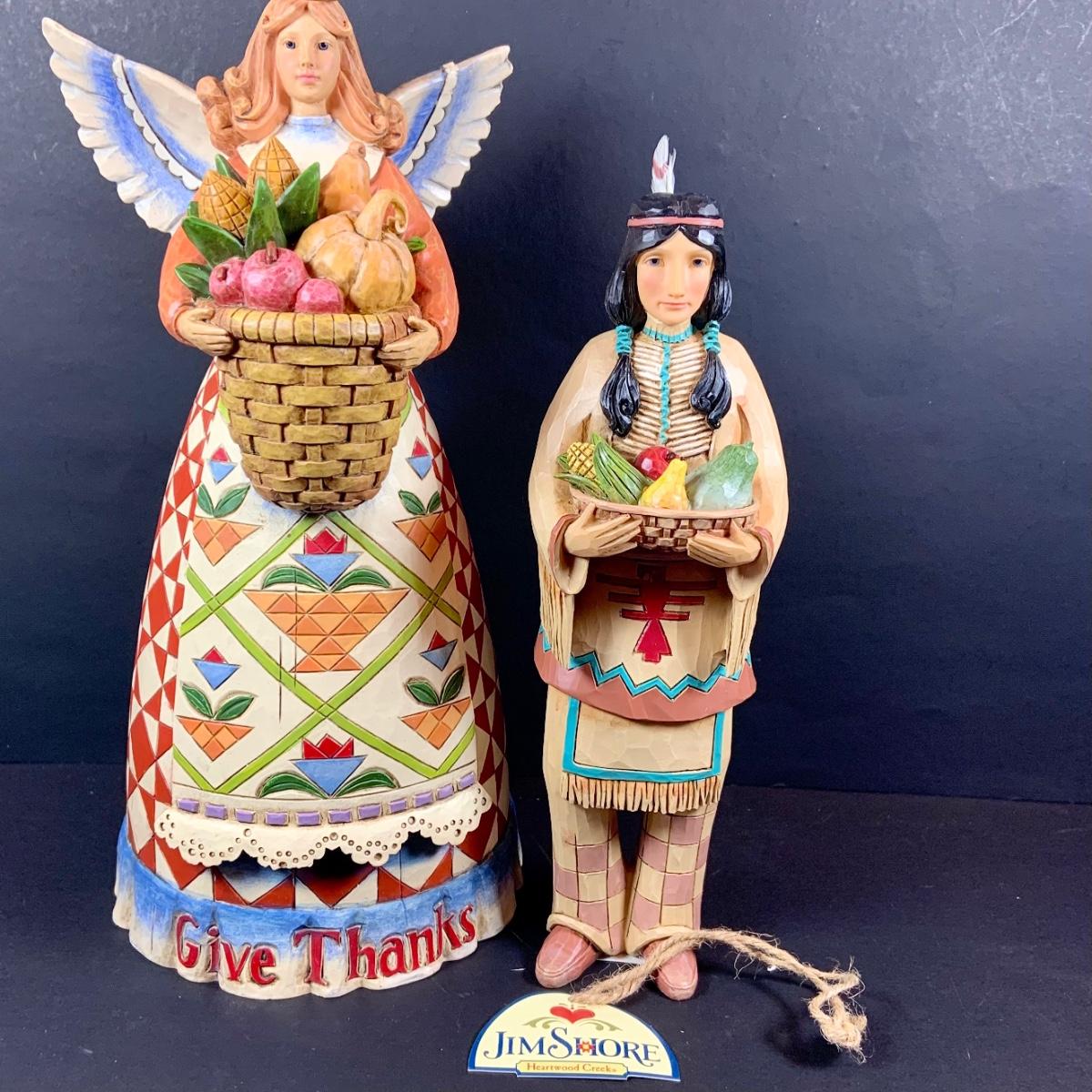 LOT:61: Jim Shore Thanksgiving Figurines with Boxes - "Give Thanks" Angel and "Woodland Welcome" Harvest Indian Figure
