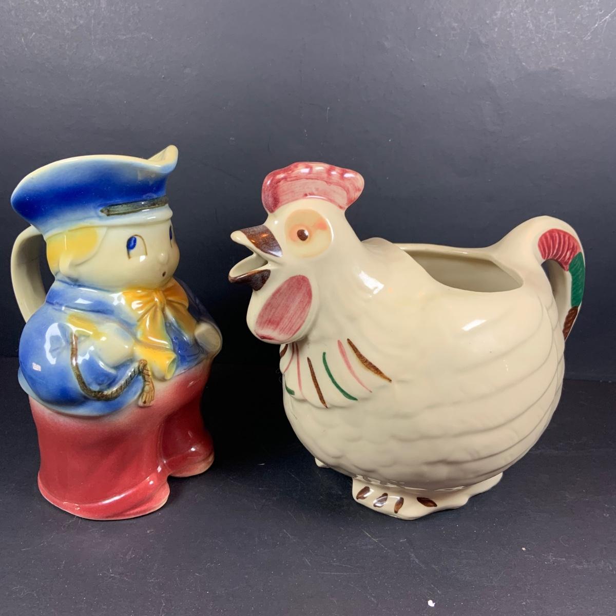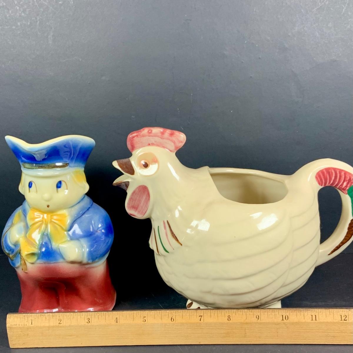 LOT:65: Vintage Shawnee Creamer: Little Boy Blue and Vintage Shawnee Chanticleer Rooster Pitcher
