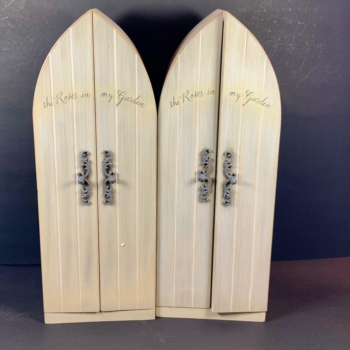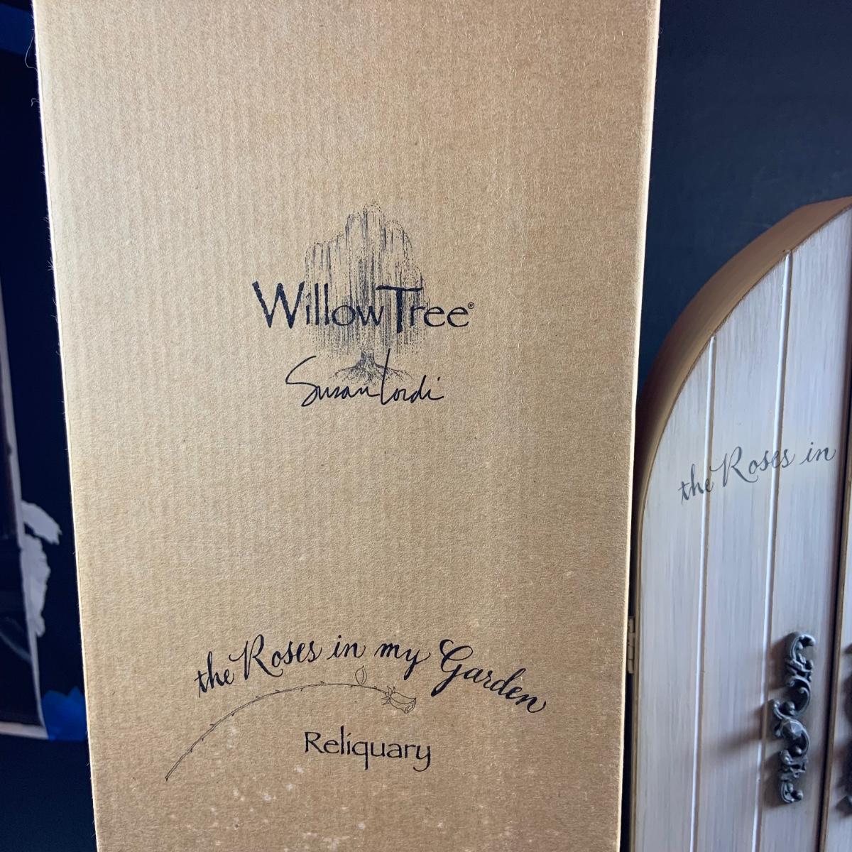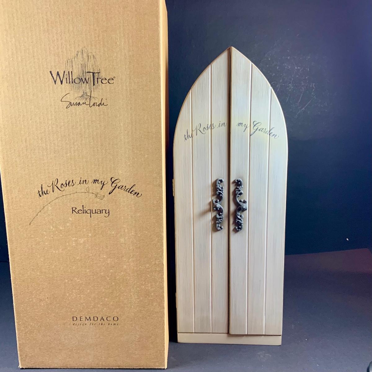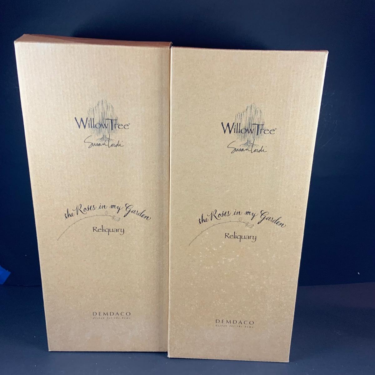 LOT:71: Set of 2 Willow Tree "The Roses in My Garden - Reliquary" Figurine Display/ Storage Cabinet with Original Boxes