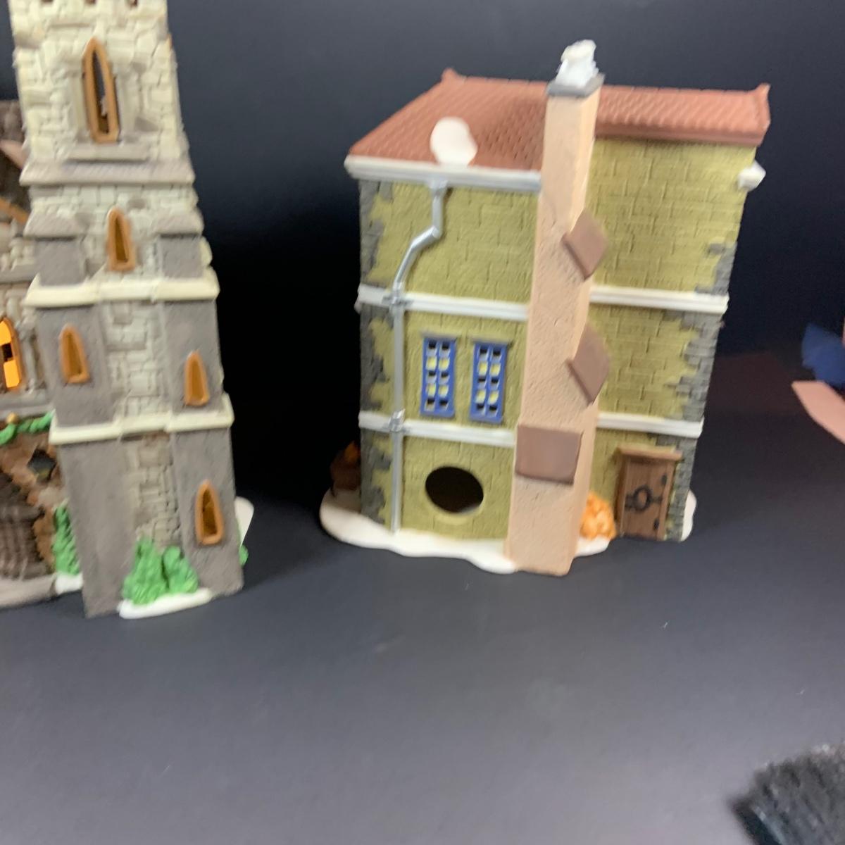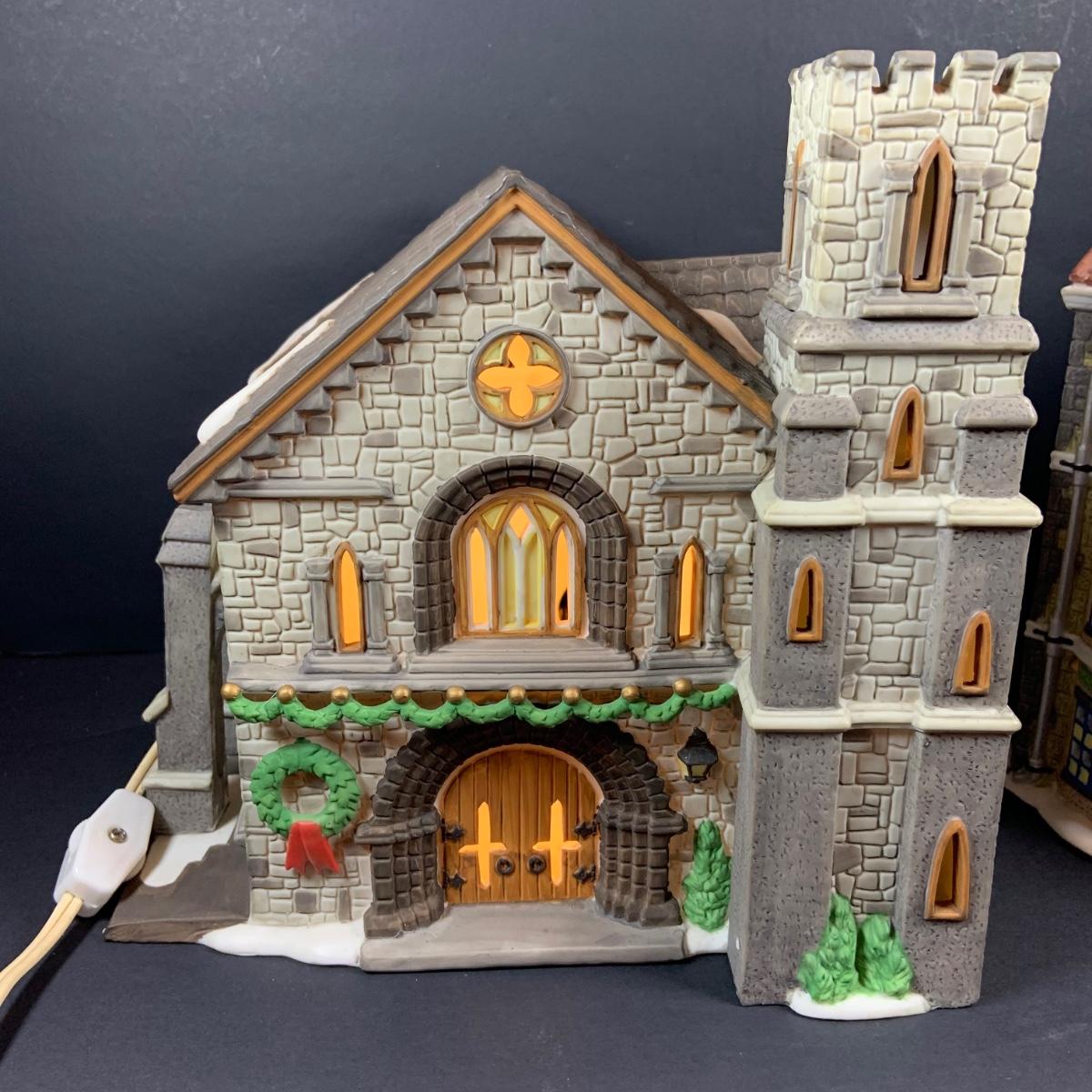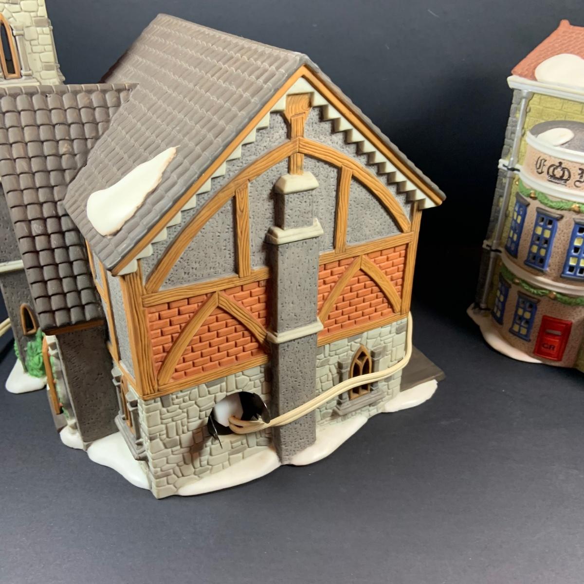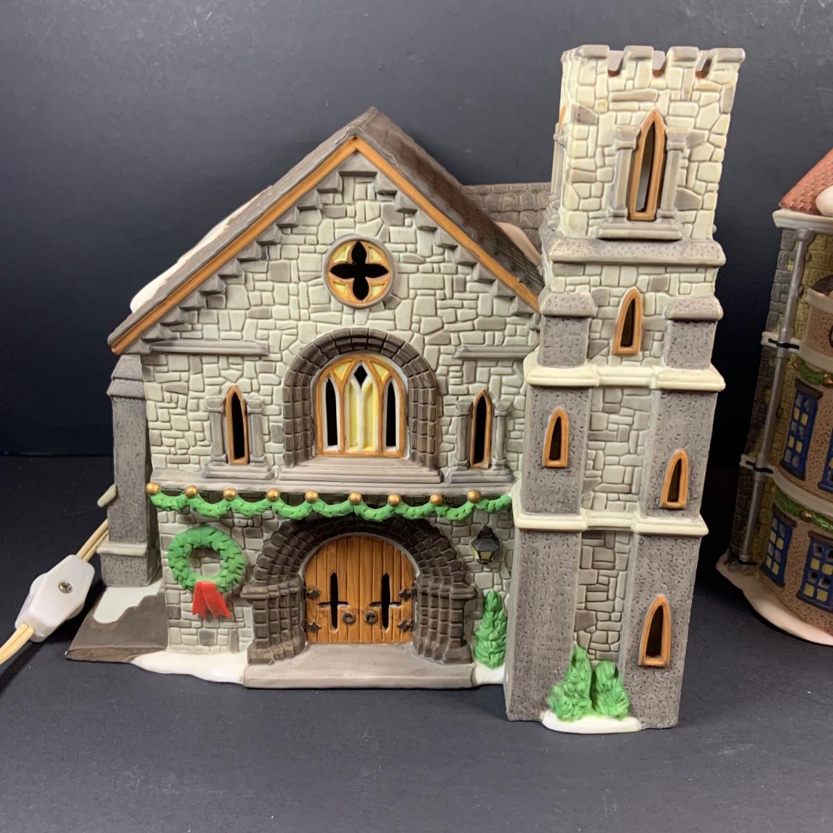 LOT:72: Set of 2 Department 56 Dicken's Village Porcelain Light Miniature Building - King's Road Post Office and Whittlebourn Church