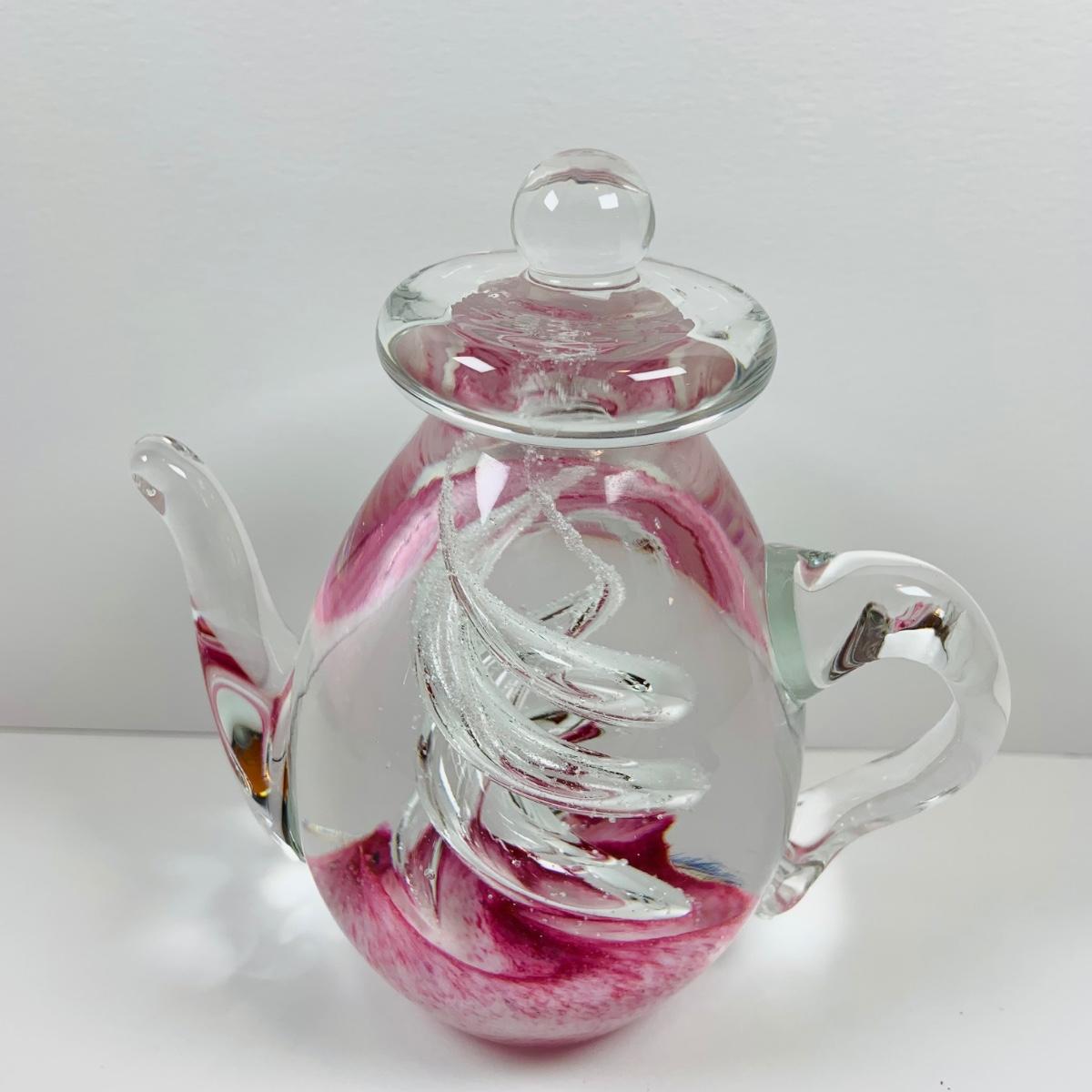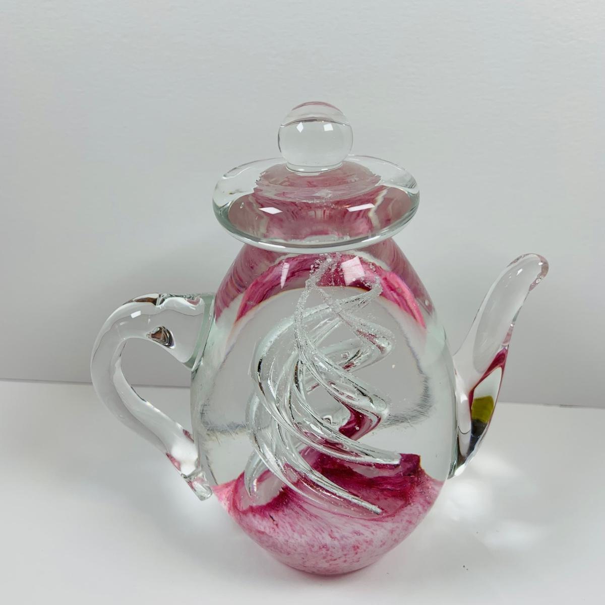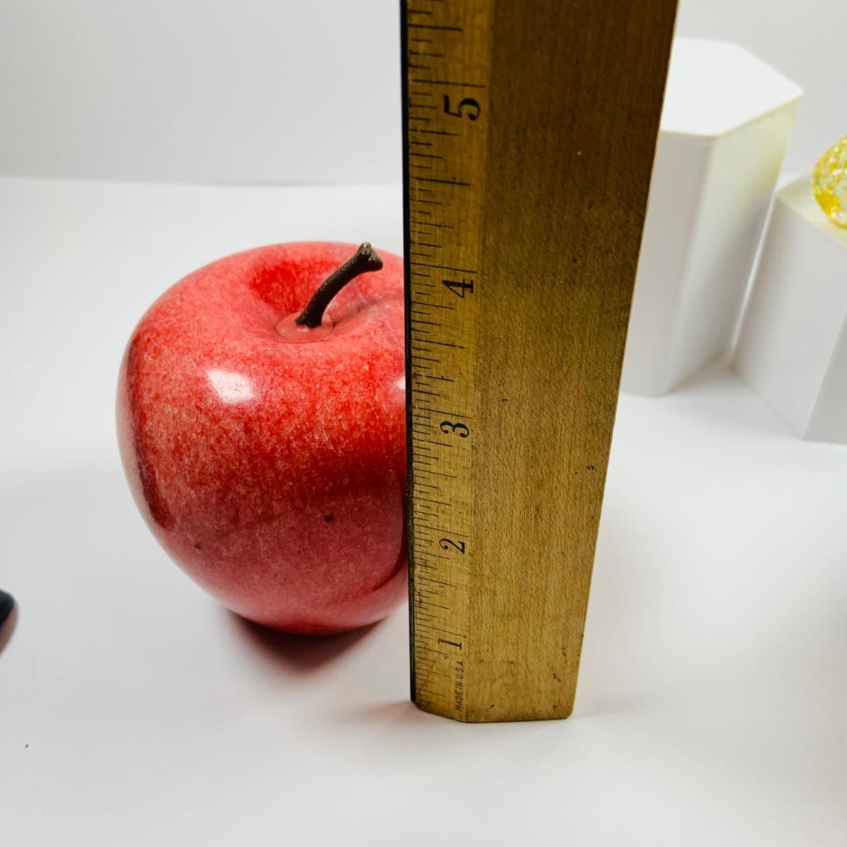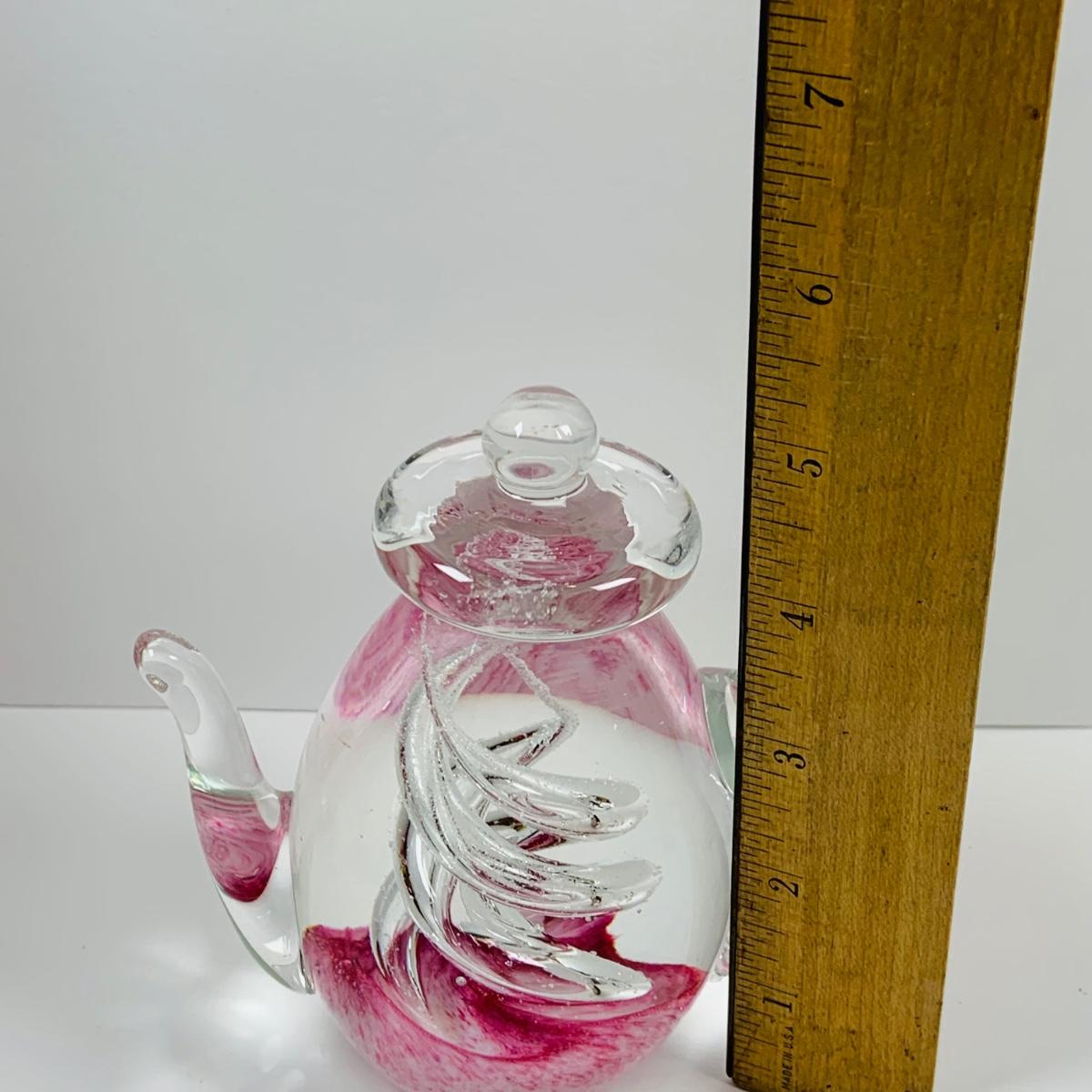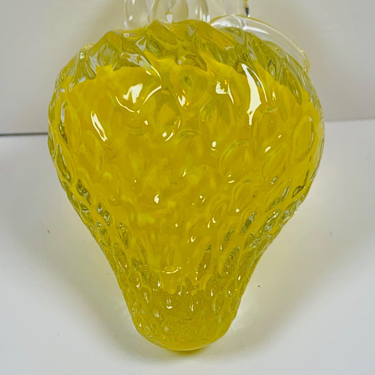 LOT:75: Retro Art Glass Collection Featuring Coffee Pot Paperweight, Levay Anton Style Yellow Strawberry, Glass Apple and Princess House Napkin Holder
