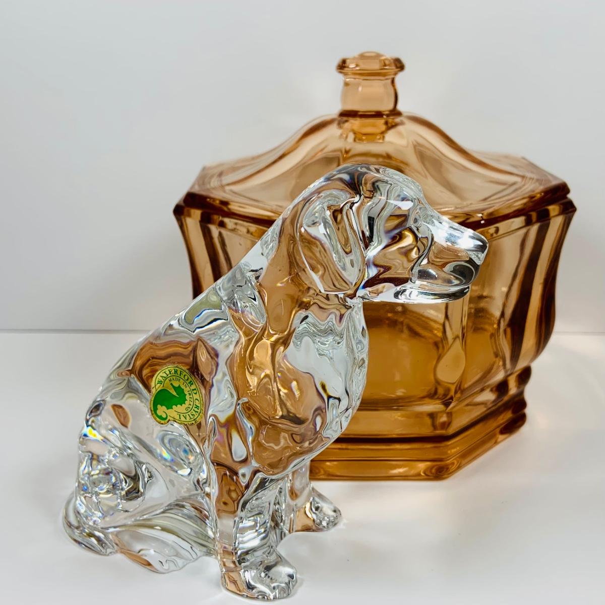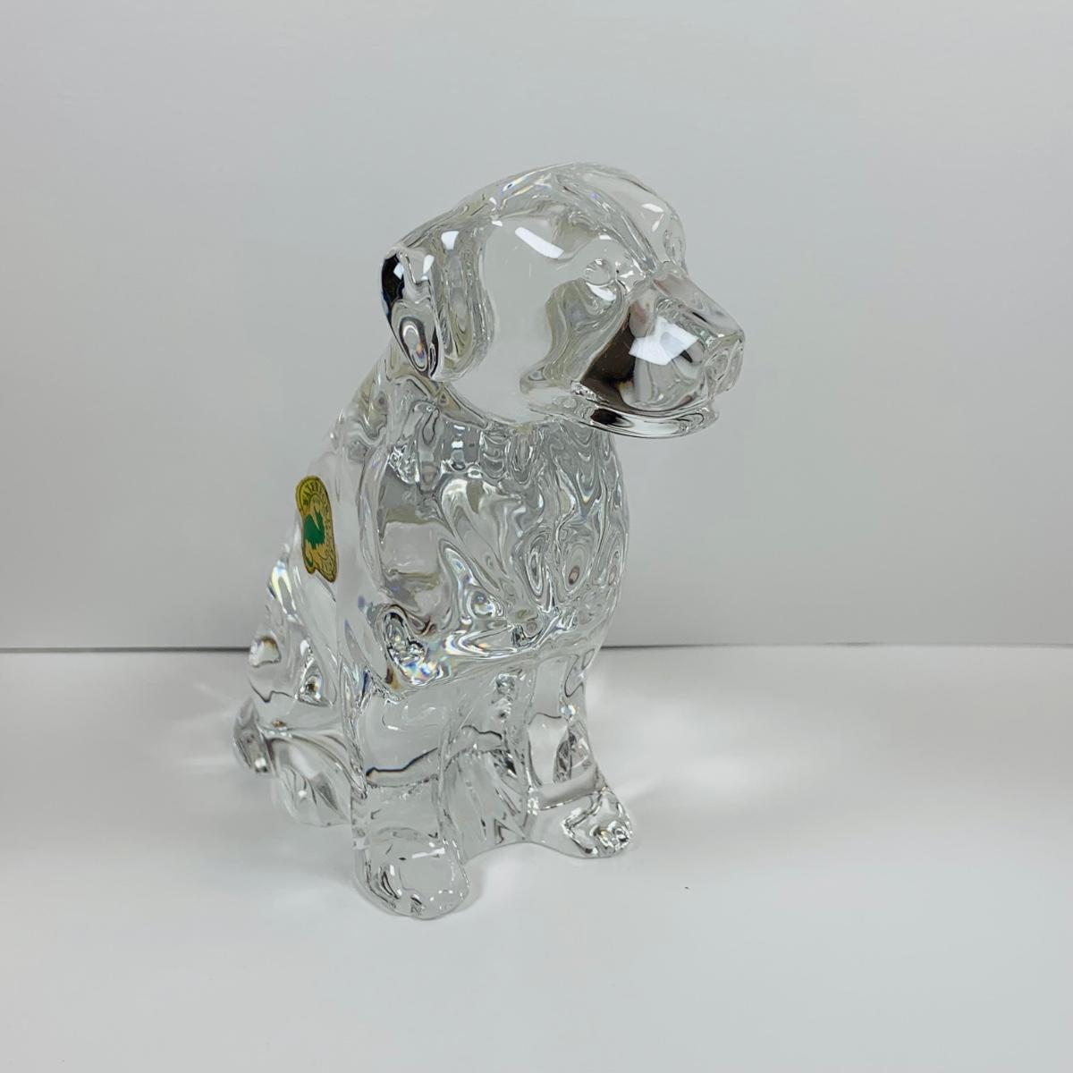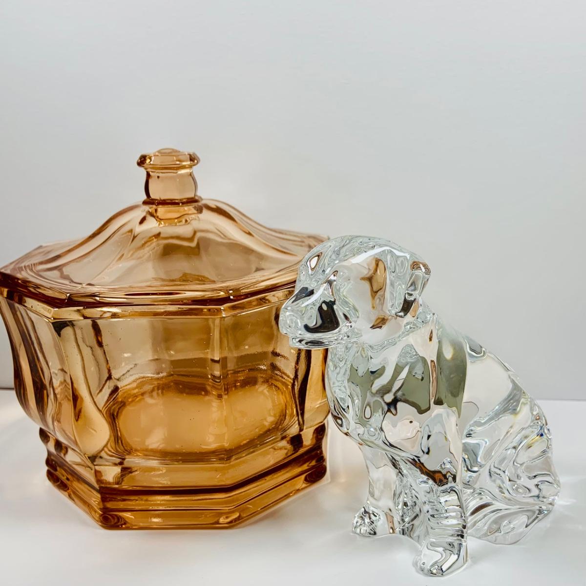LOT:76: Waterford Crystal Labrador Retriever Dog Figurine and Indiana Glass Co. Concord Pink Octagon Lidded Candy Dish