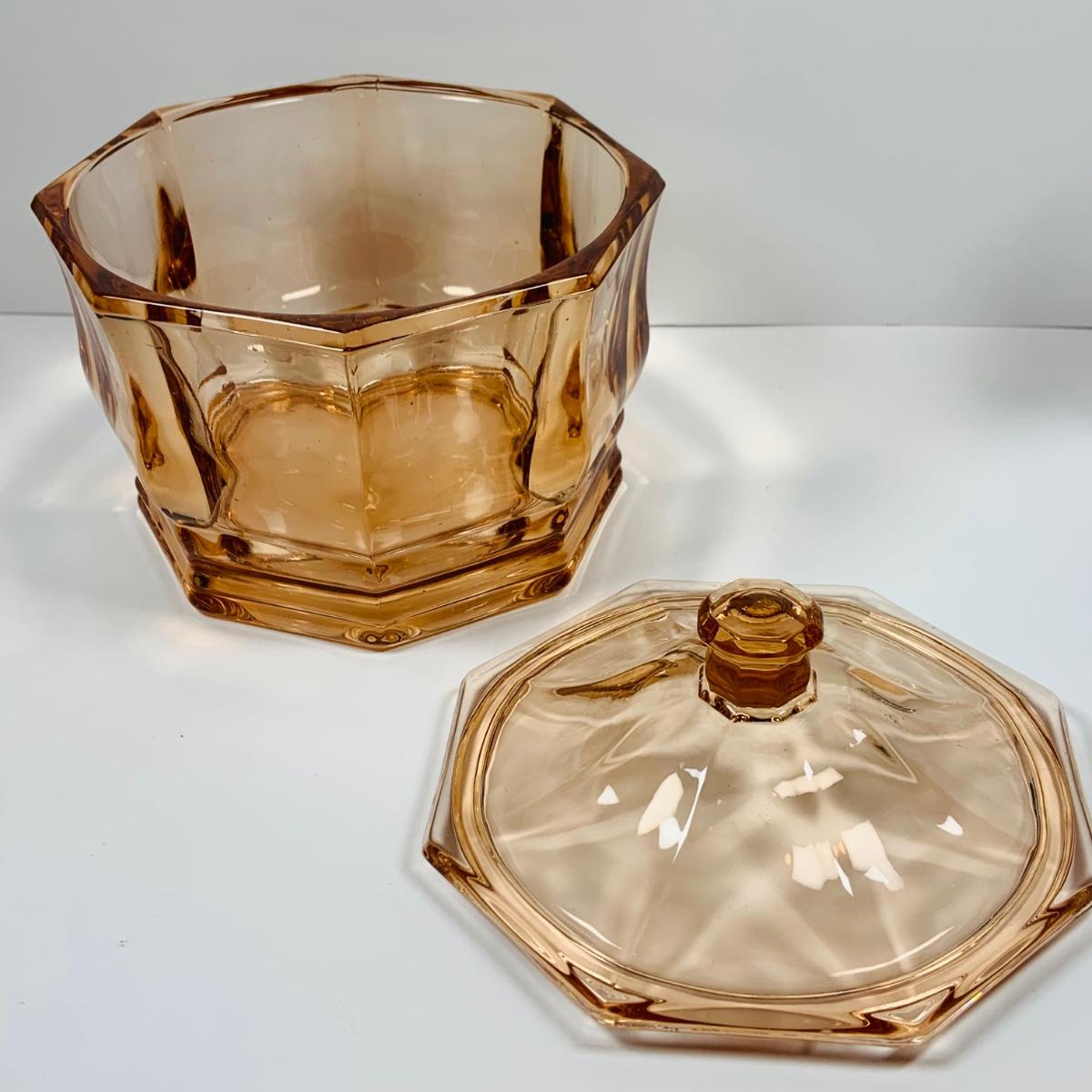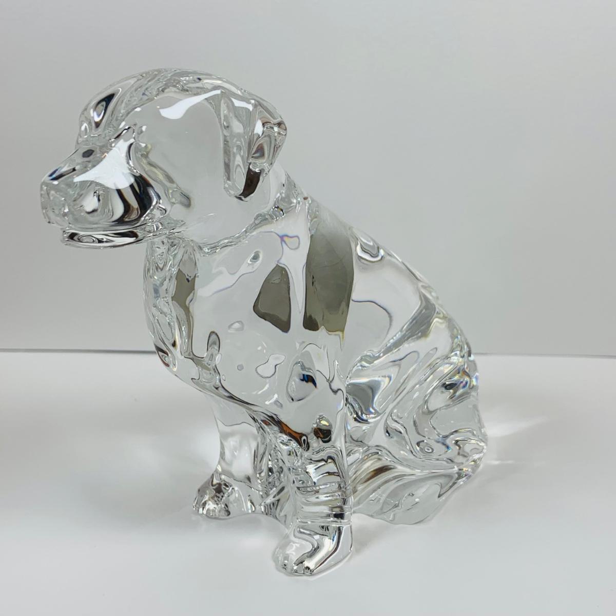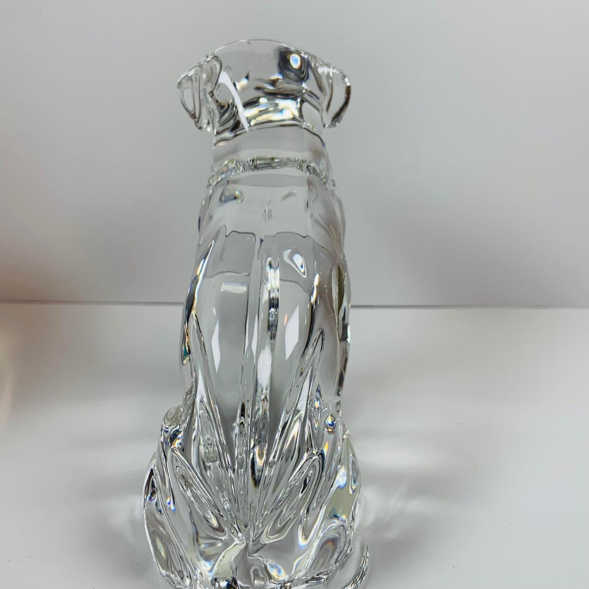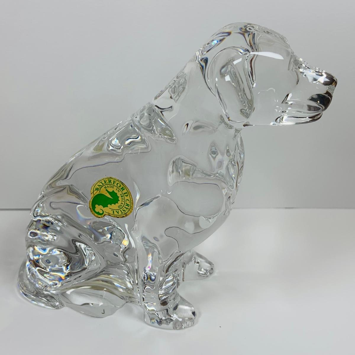 LOT:76: Waterford Crystal Labrador Retriever Dog Figurine and Indiana Glass Co. Concord Pink Octagon Lidded Candy Dish