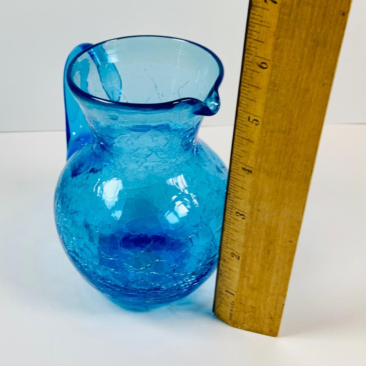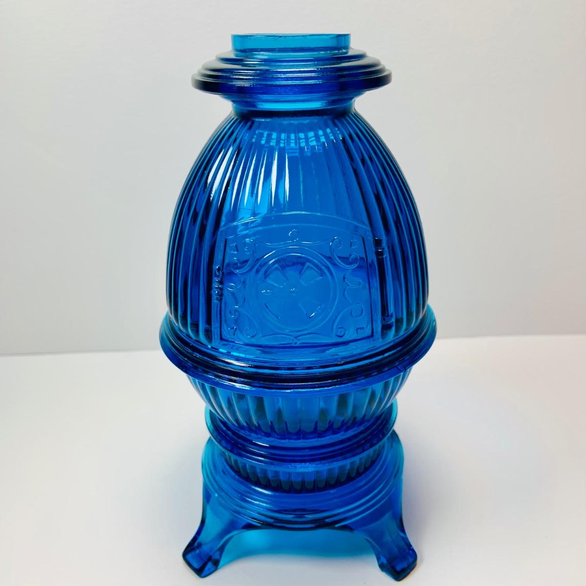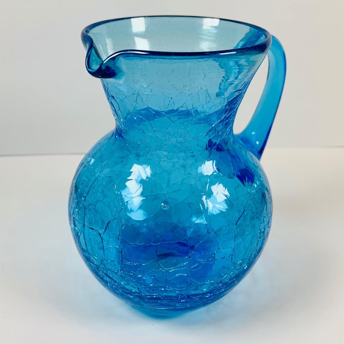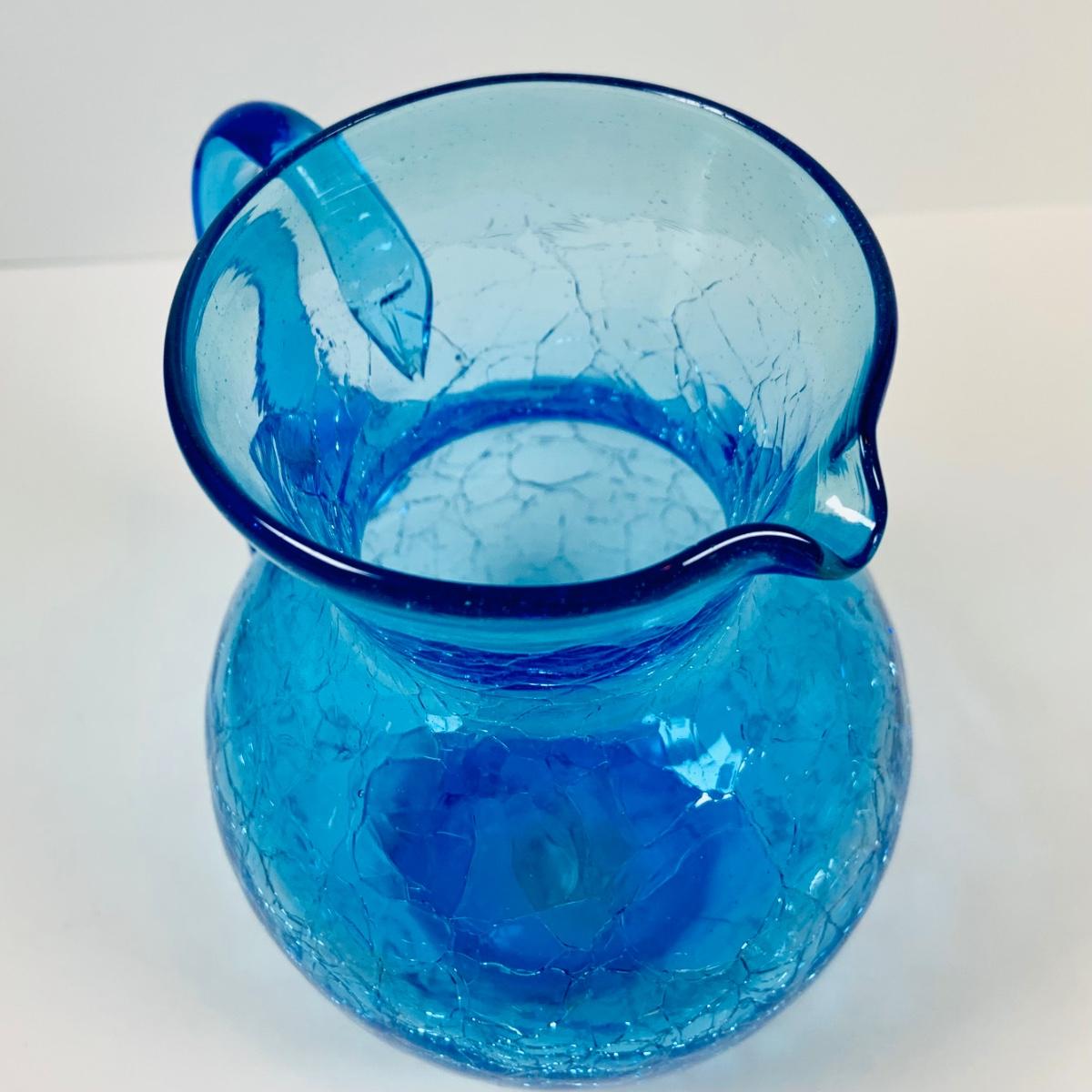 LOT:77: Vintage Viking Blue Glass Pot Belly Stove Fairy Light and Small Blue Crackle Glass Pitcher