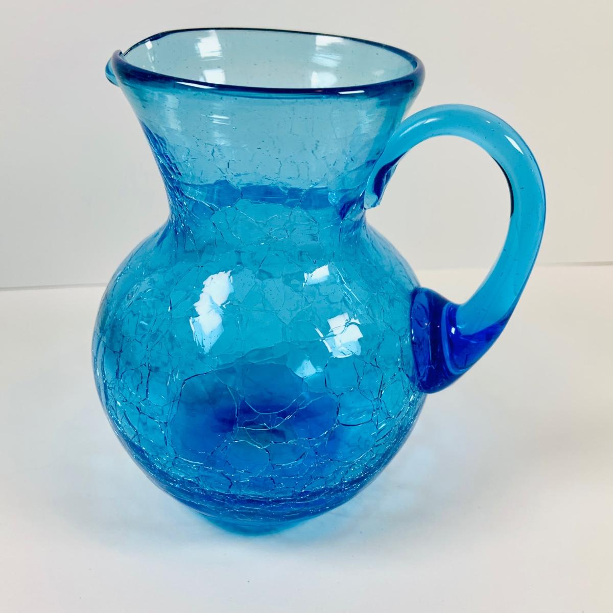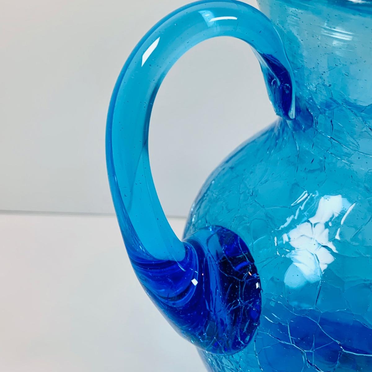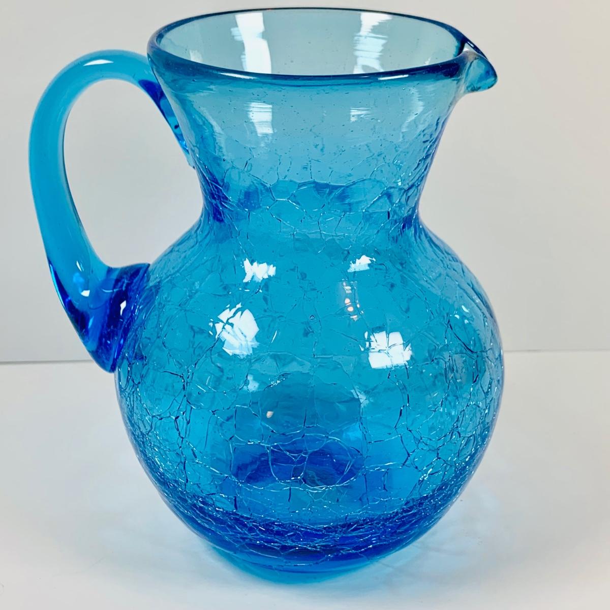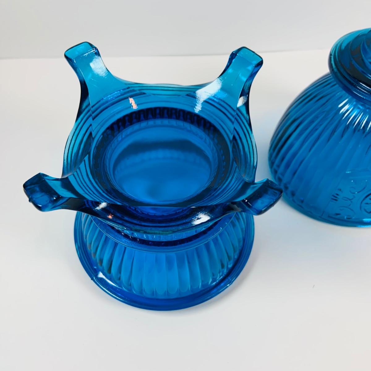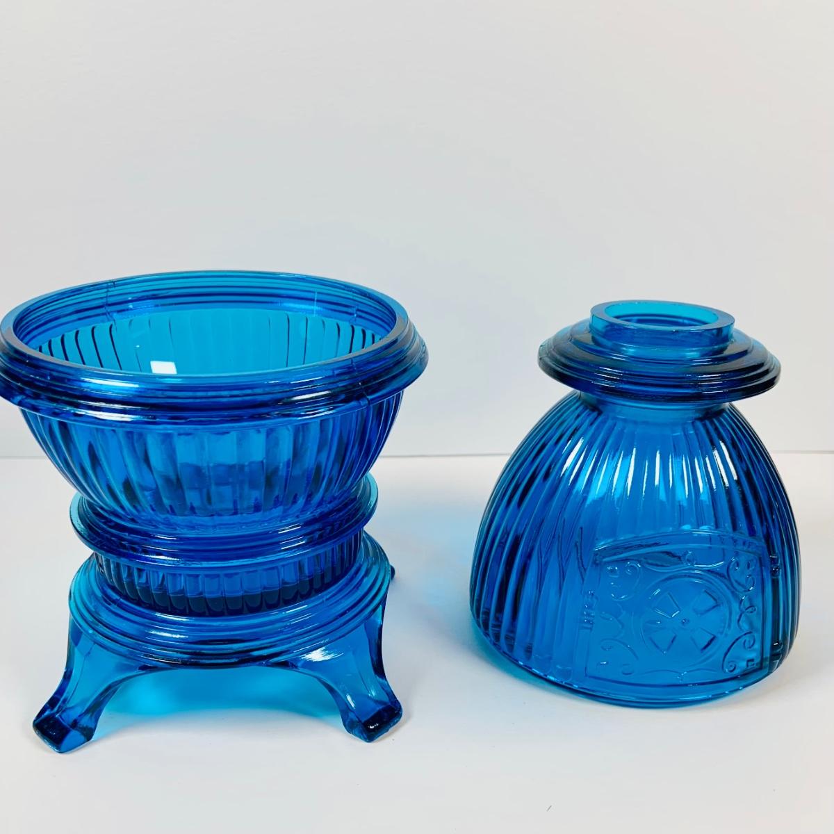 LOT:77: Vintage Viking Blue Glass Pot Belly Stove Fairy Light and Small Blue Crackle Glass Pitcher