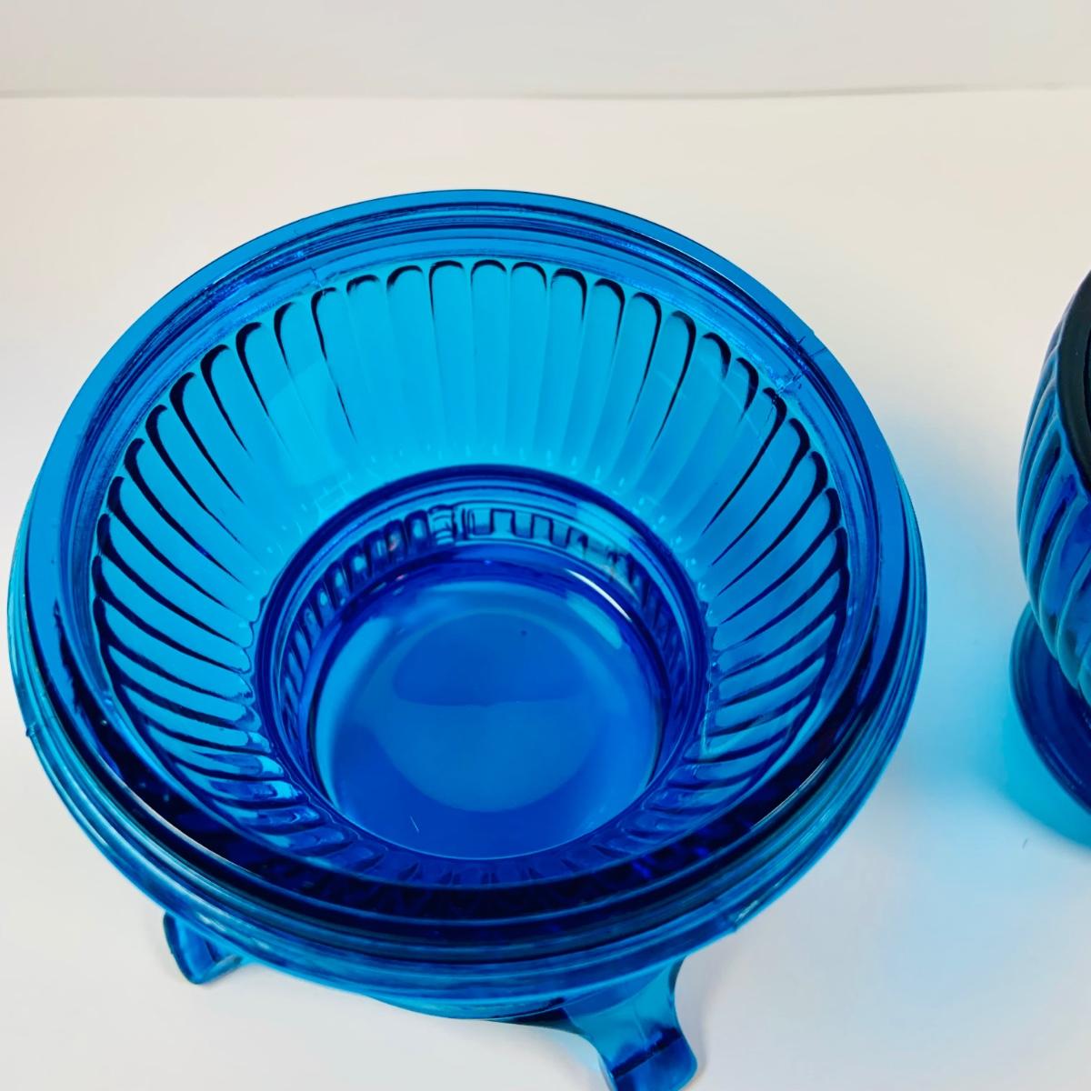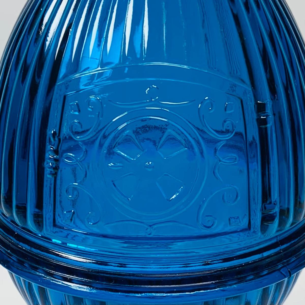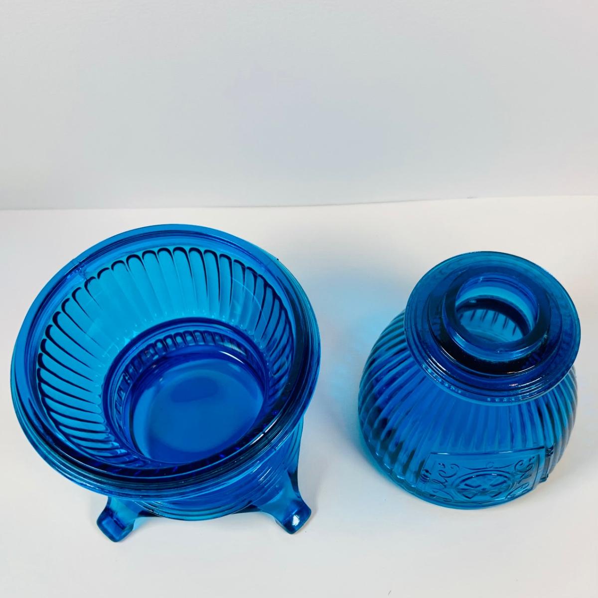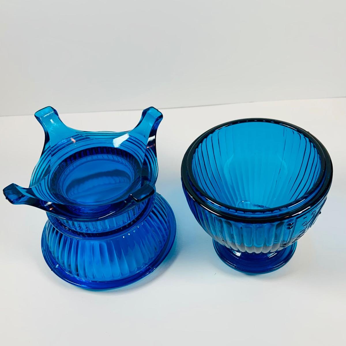 LOT:77: Vintage Viking Blue Glass Pot Belly Stove Fairy Light and Small Blue Crackle Glass Pitcher