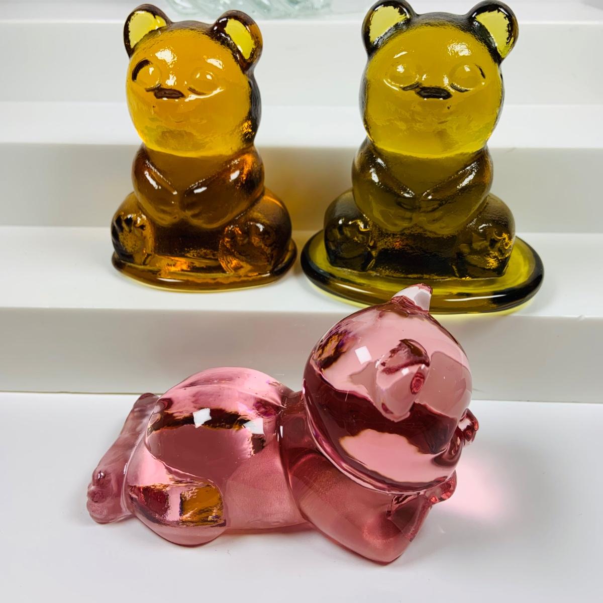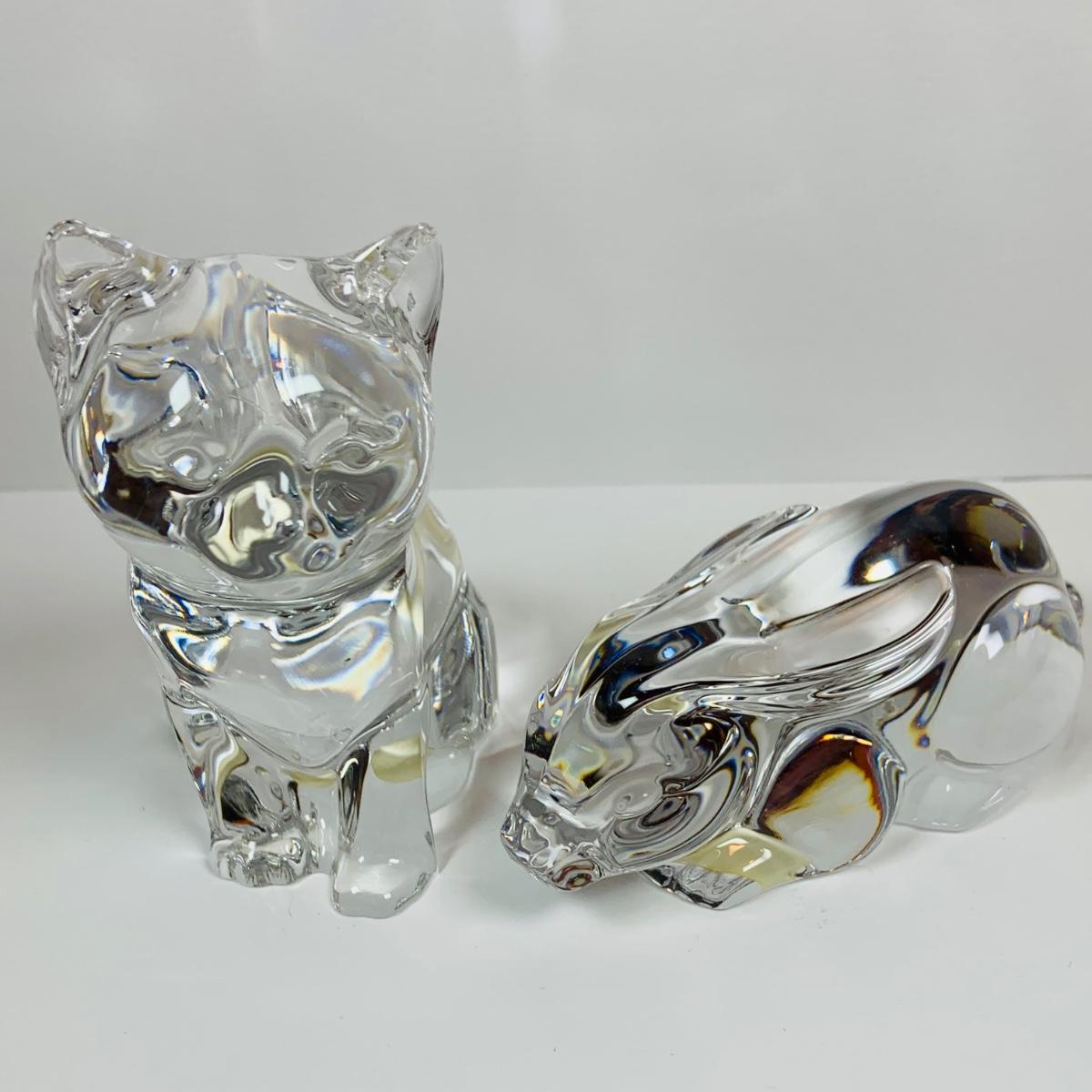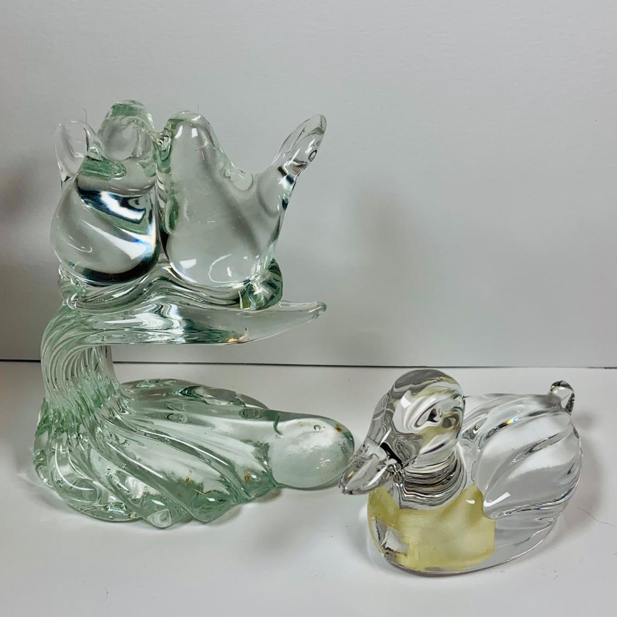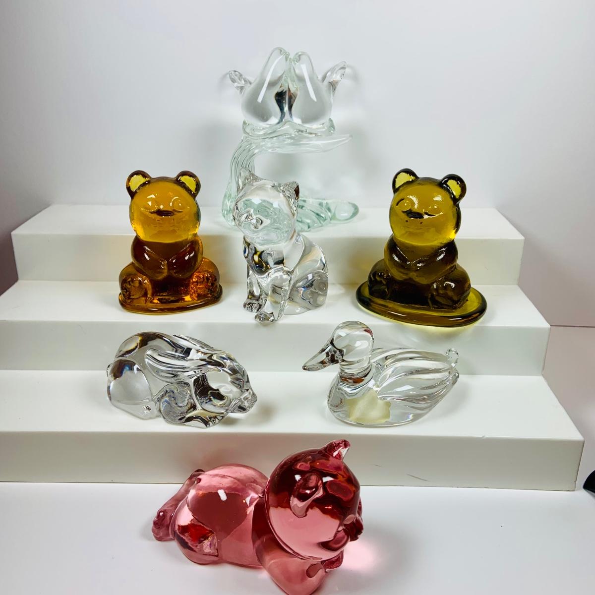 LOT:78: Princess House Glass Cat, Rabbit, Duck and Doves; and Color Glass Teddy Bears