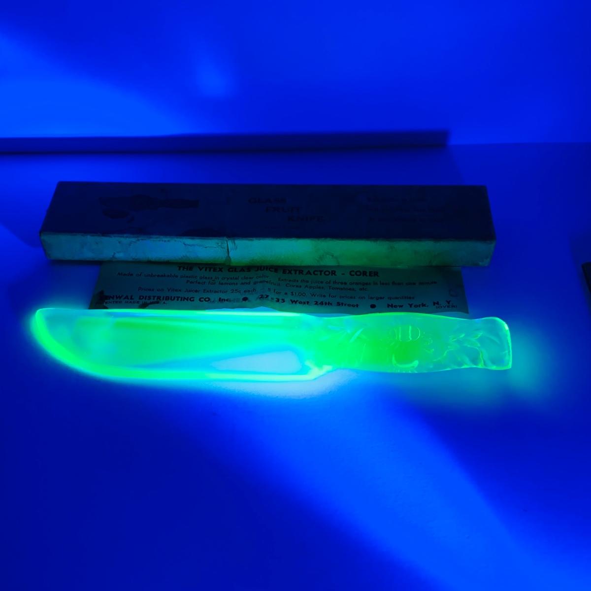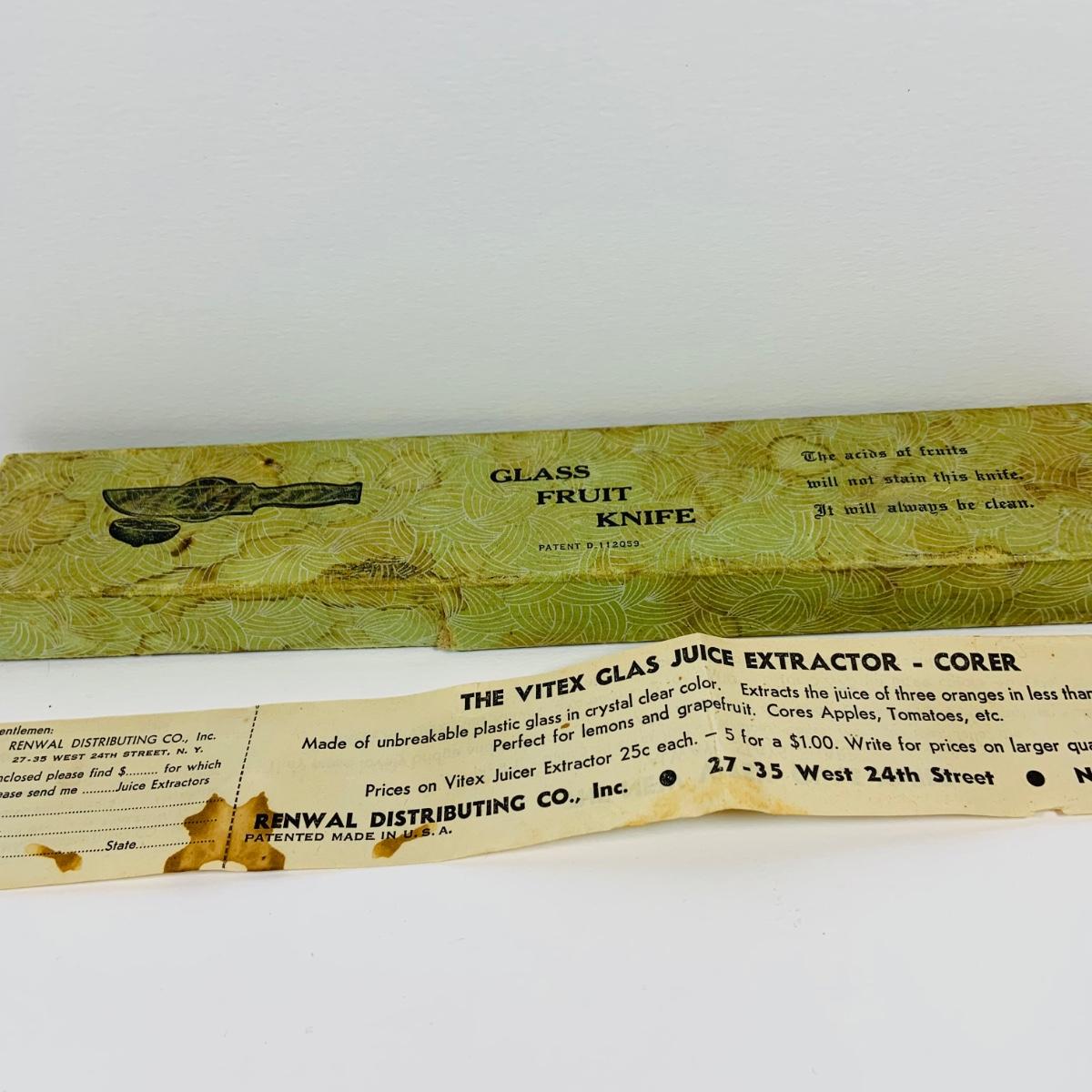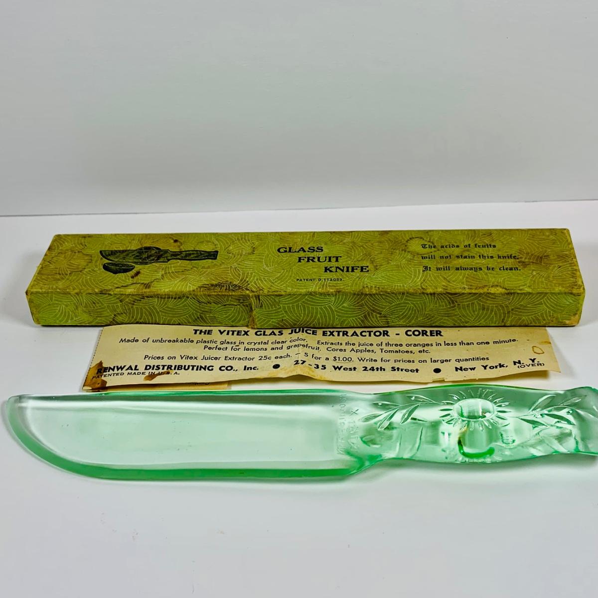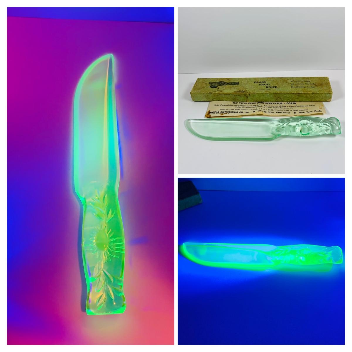 LOT:81: Vintage Vitex Uranium Glass Fruit Knife In Original Box
