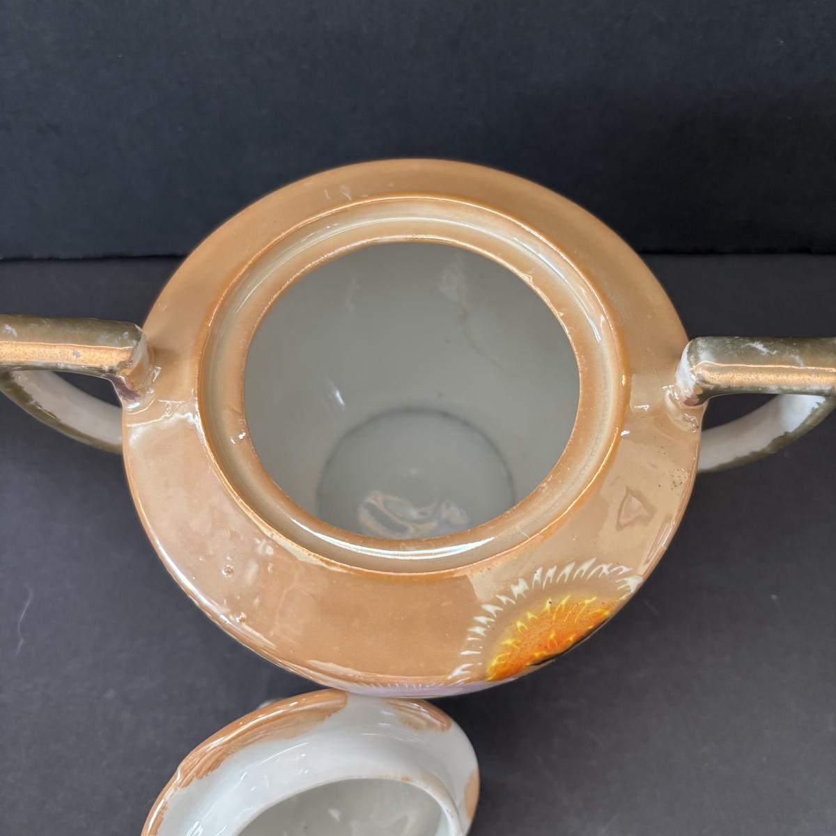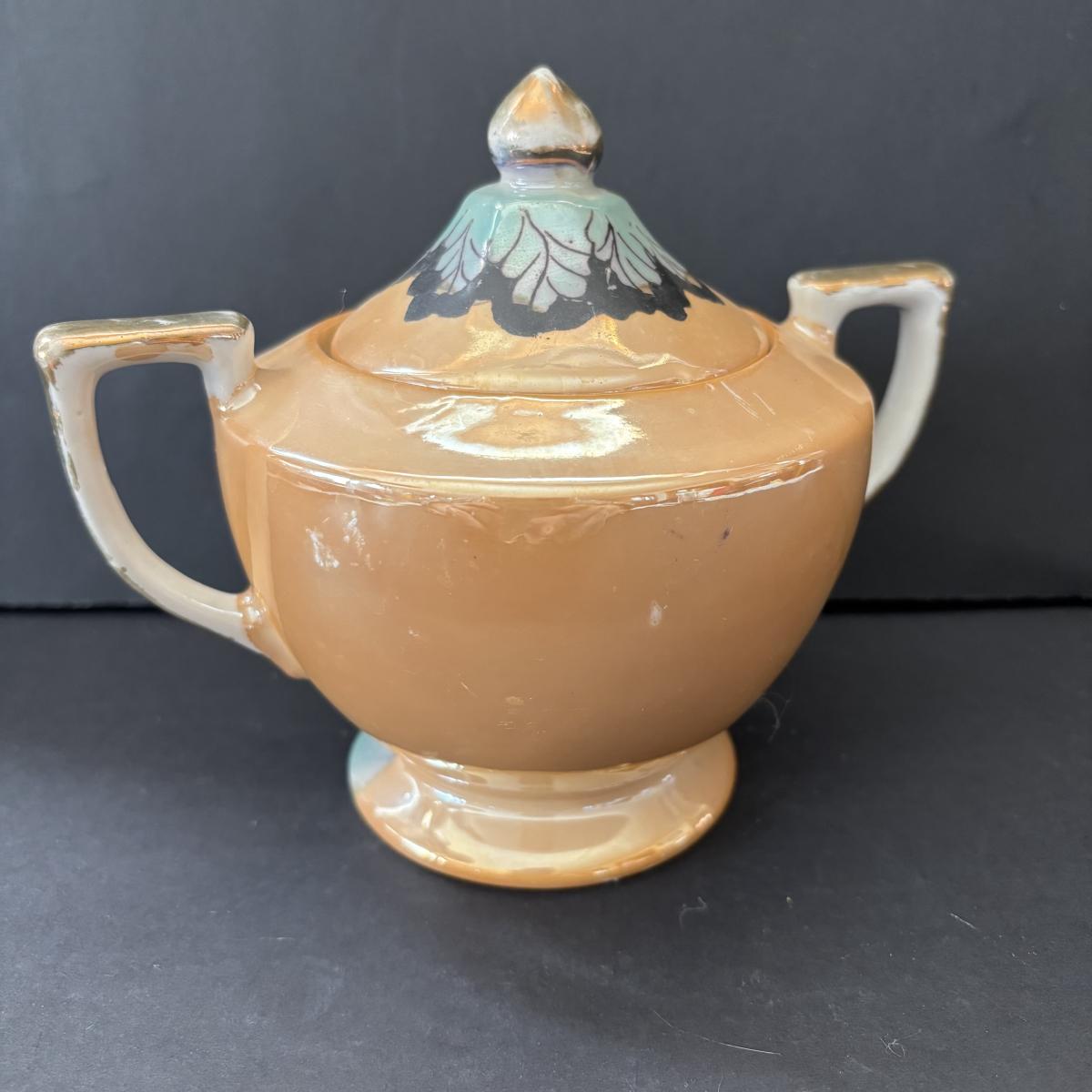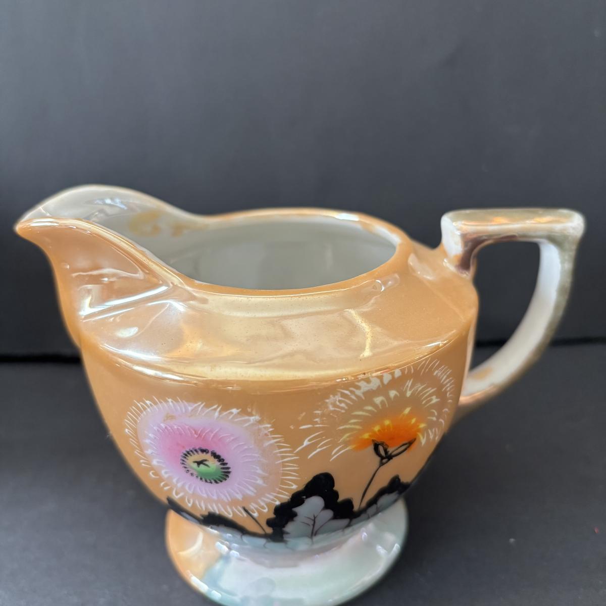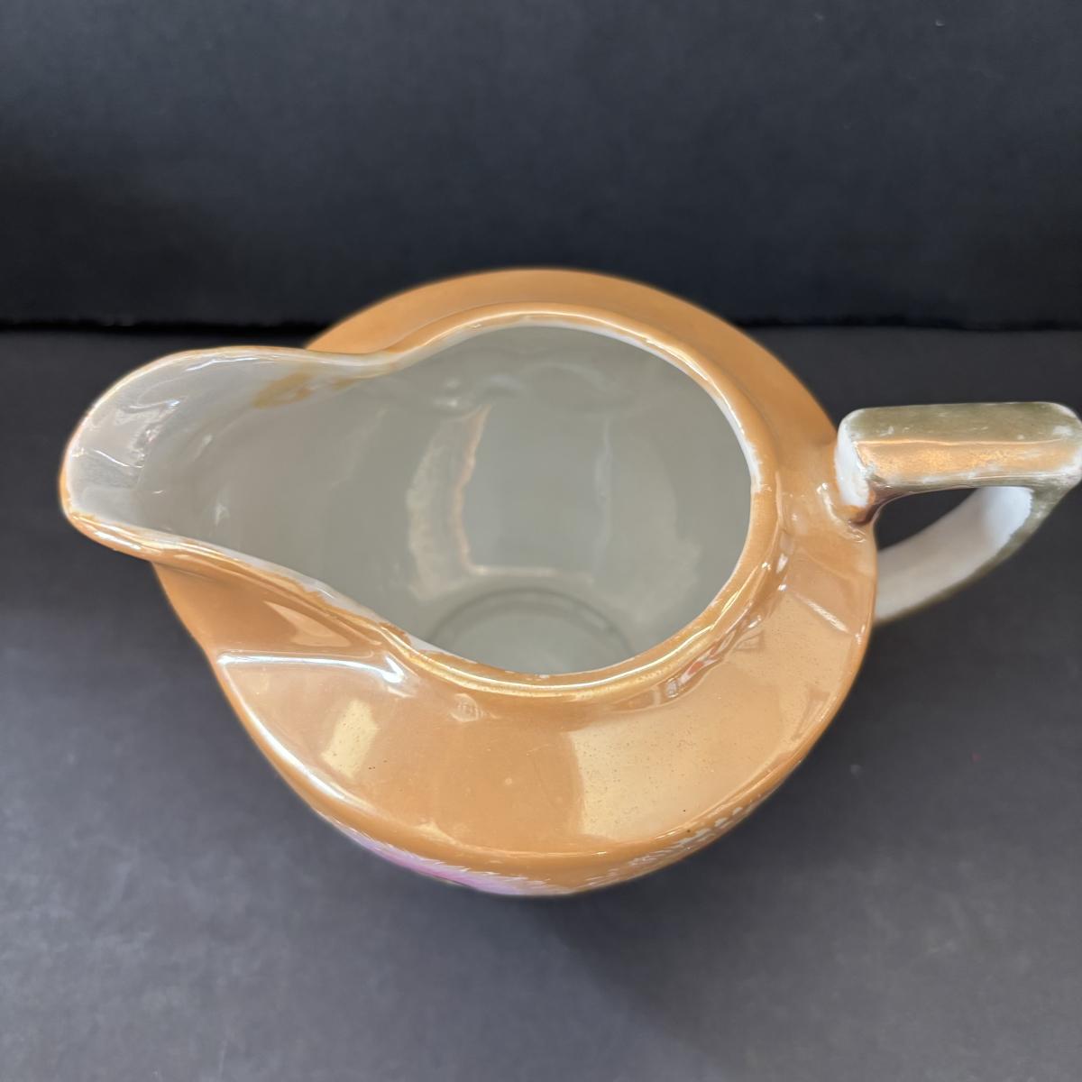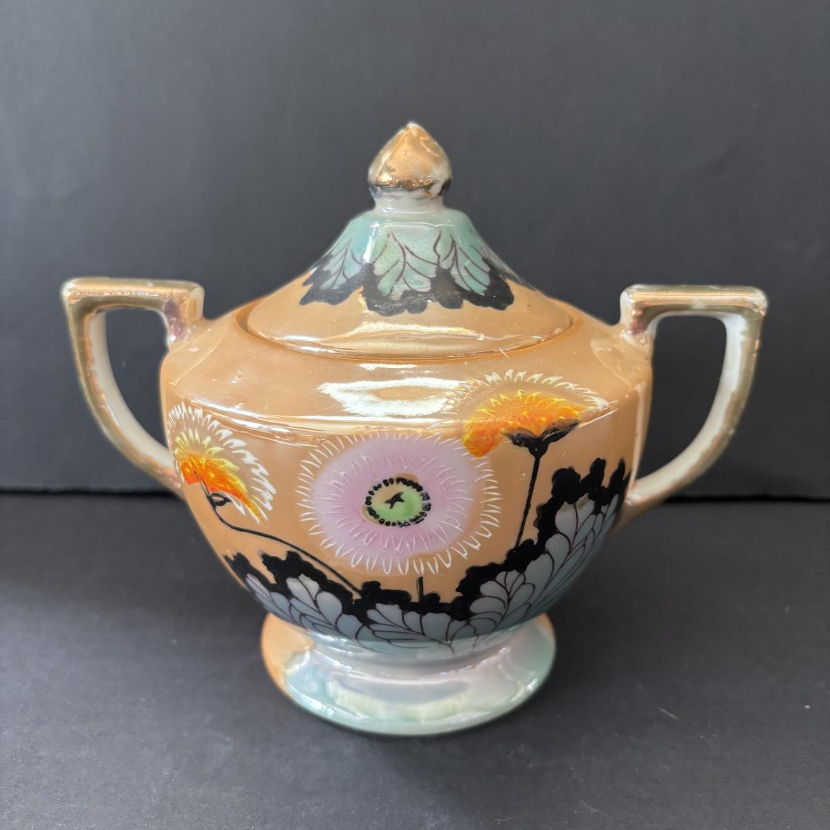 LOT 99: Vintage Hand Painted Lusterware Tea Service: Cups, Saucers, Dessert Plates, Creamer & Sugar Bowl (no Teapot)