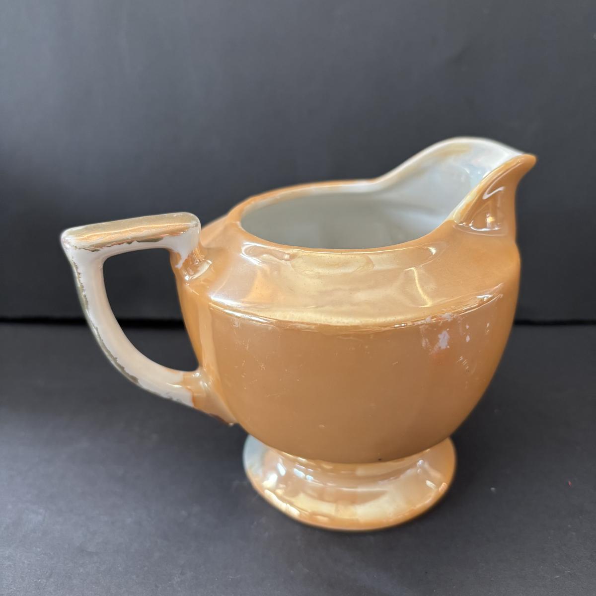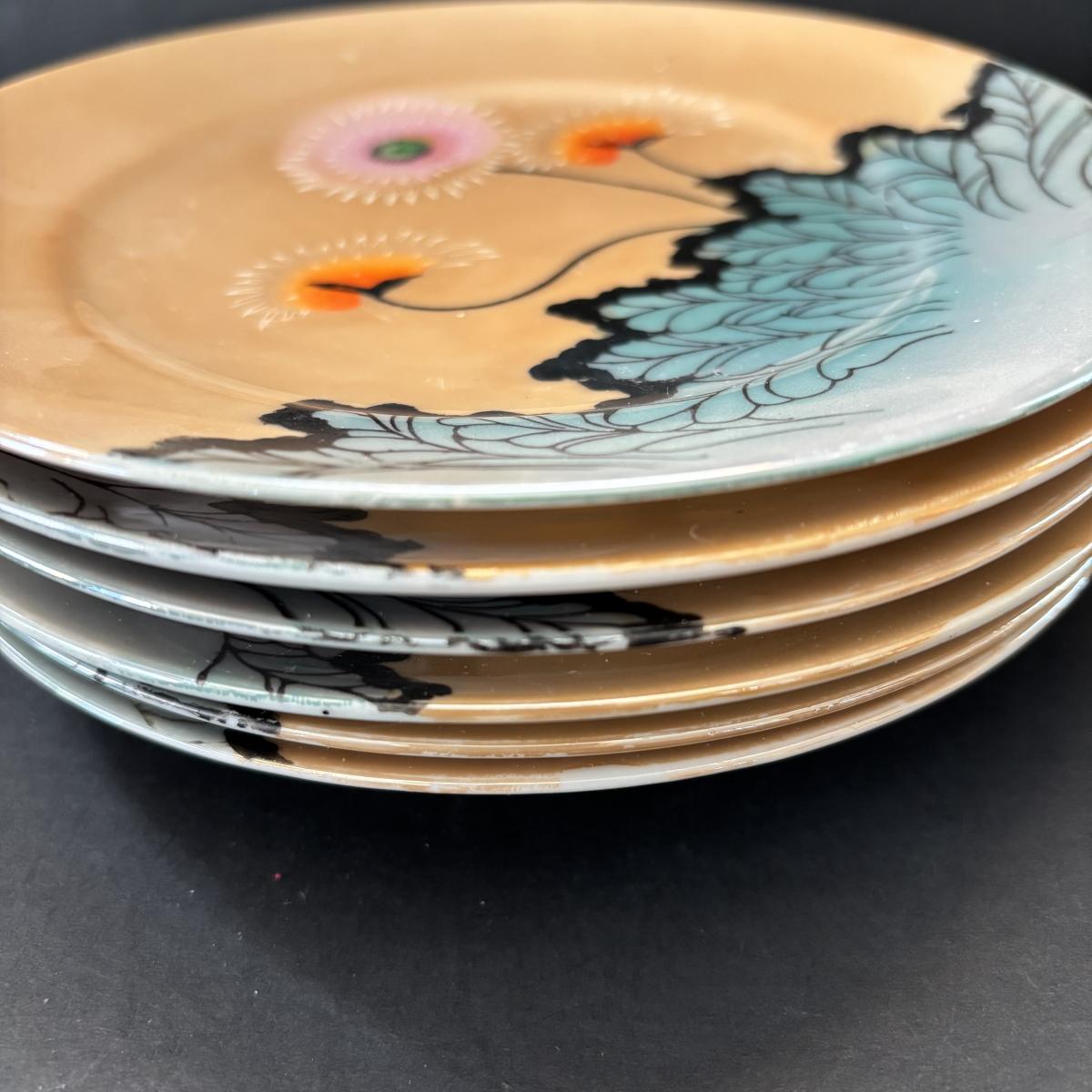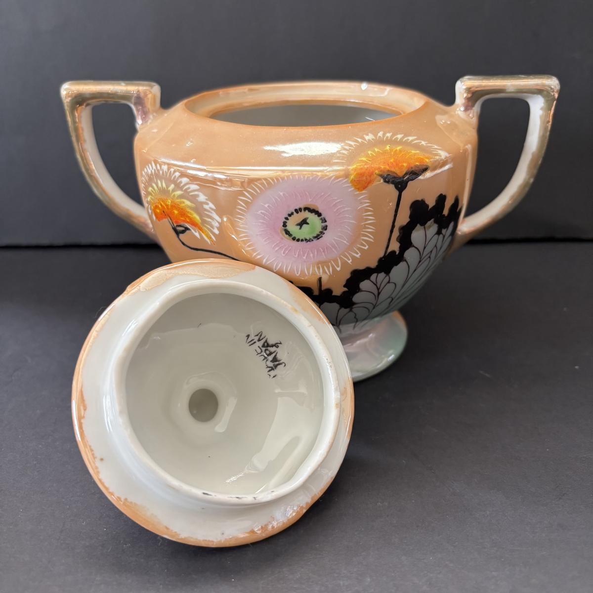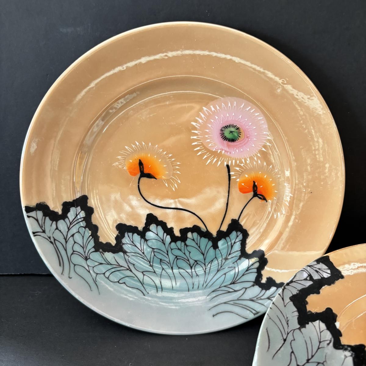 LOT 99: Vintage Hand Painted Lusterware Tea Service: Cups, Saucers, Dessert Plates, Creamer & Sugar Bowl (no Teapot)