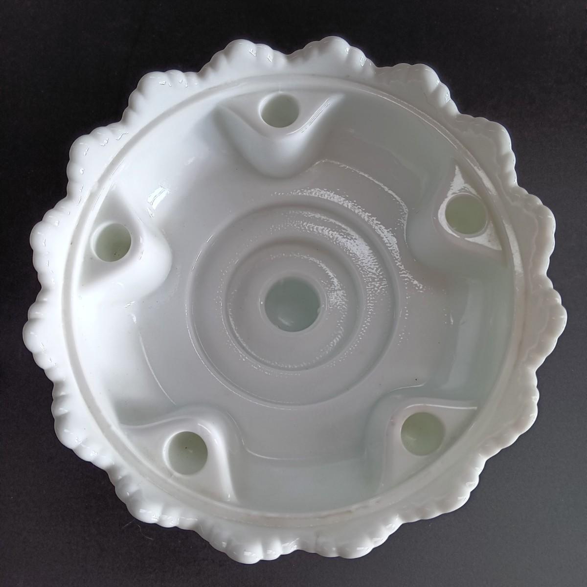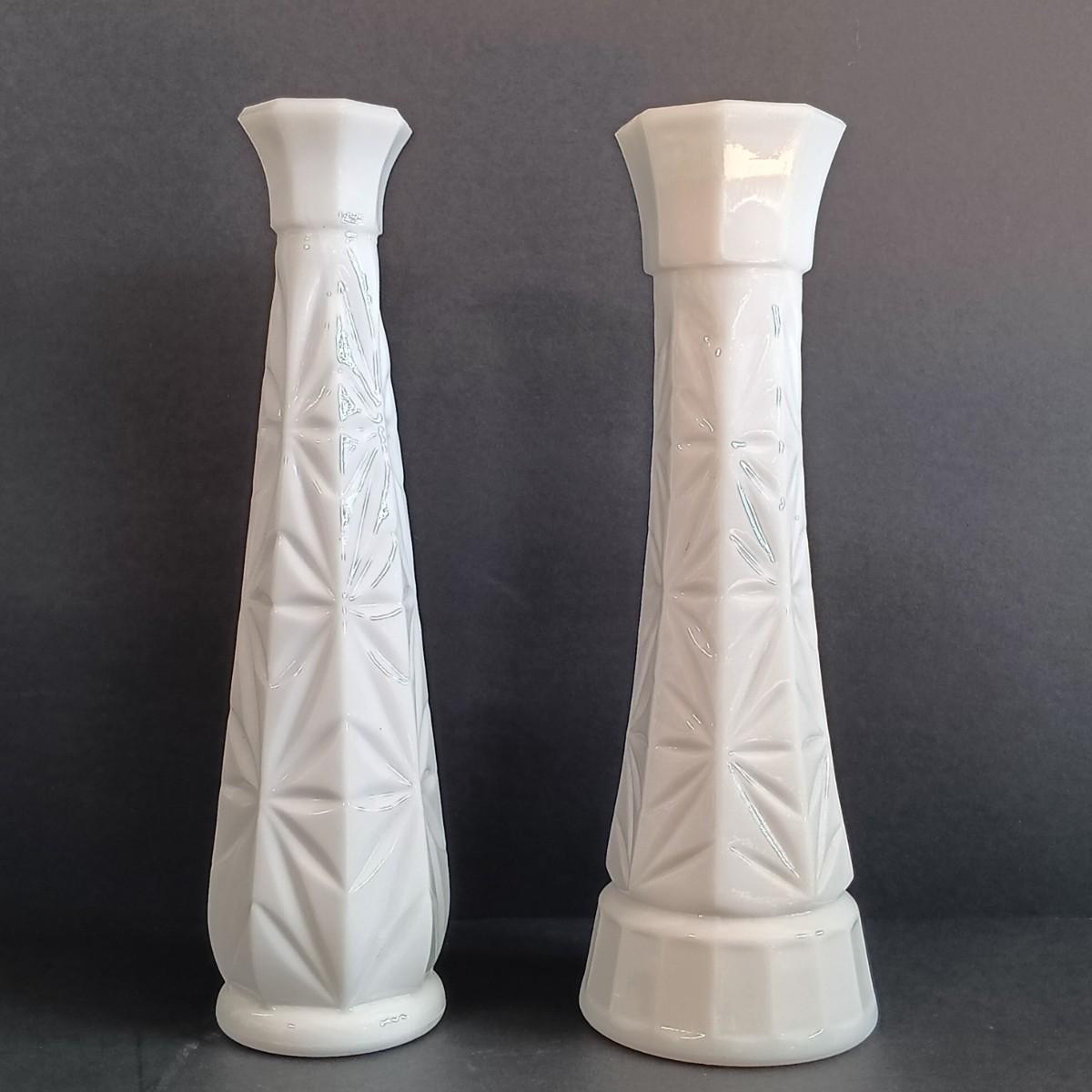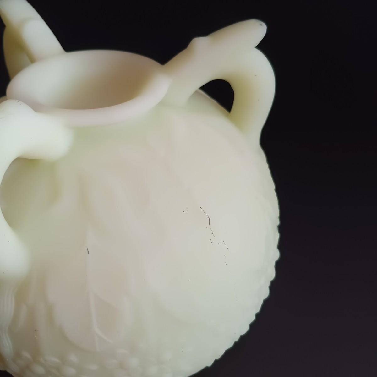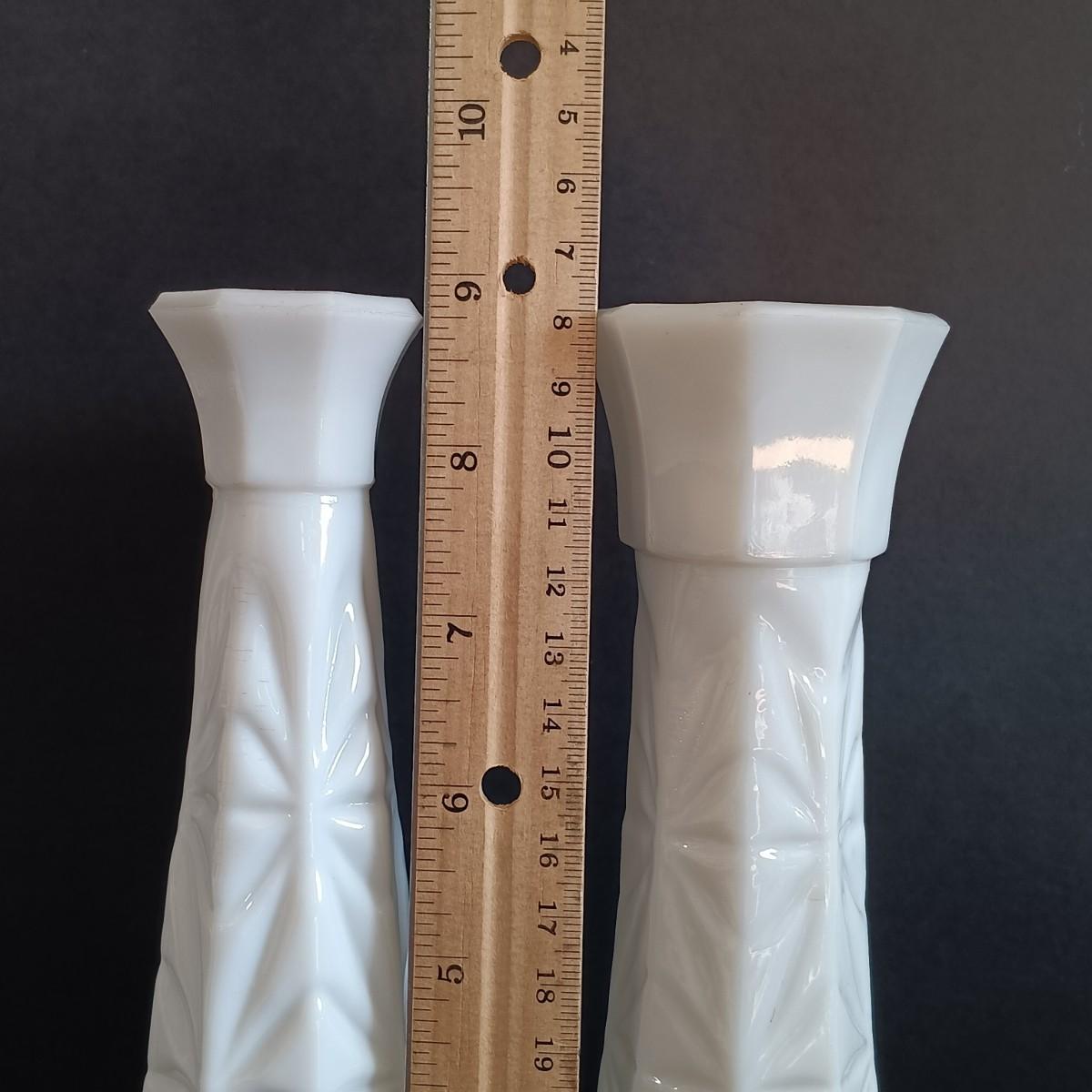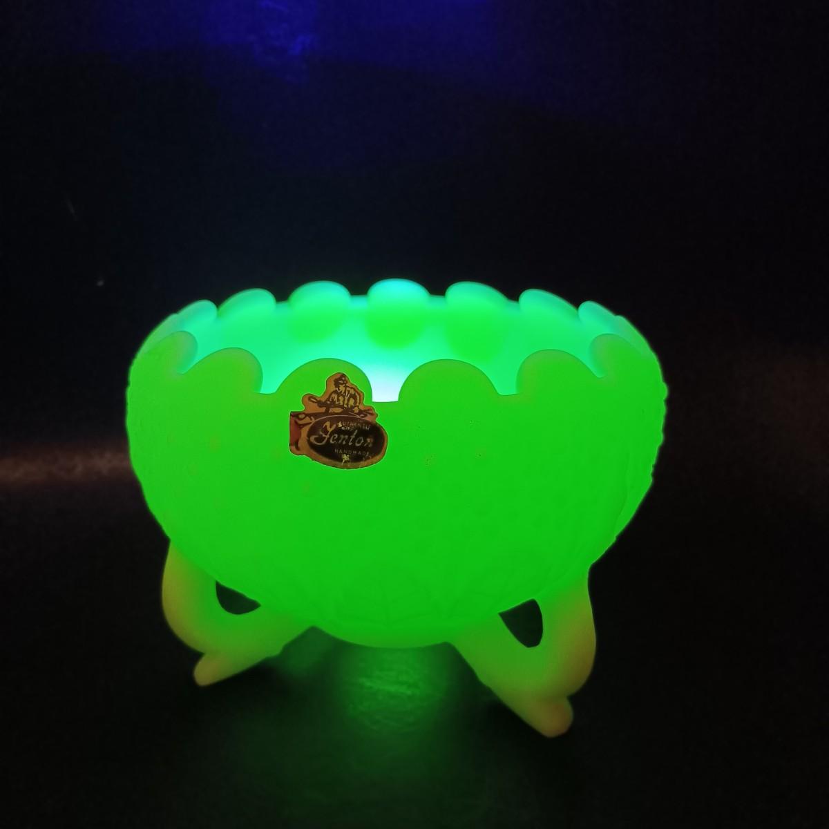LOT 141: Fenton Uranium Custard Glass Footed Rose Bowl, Fenton Hobnail Milk Glass Pedestal Candle Bowl & Two Milk Glass Vases
