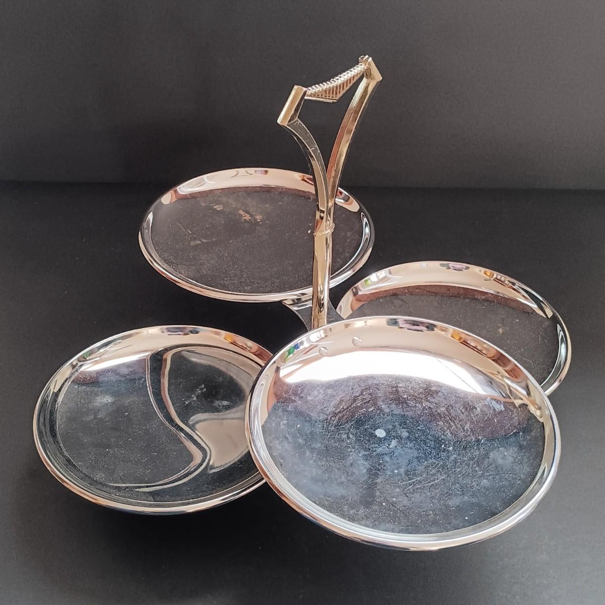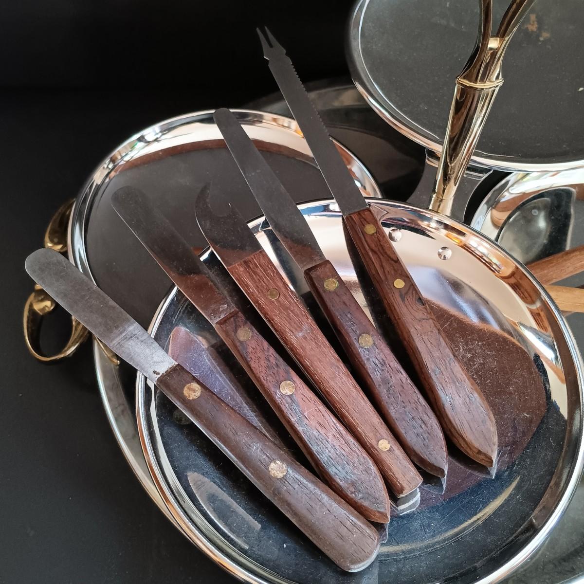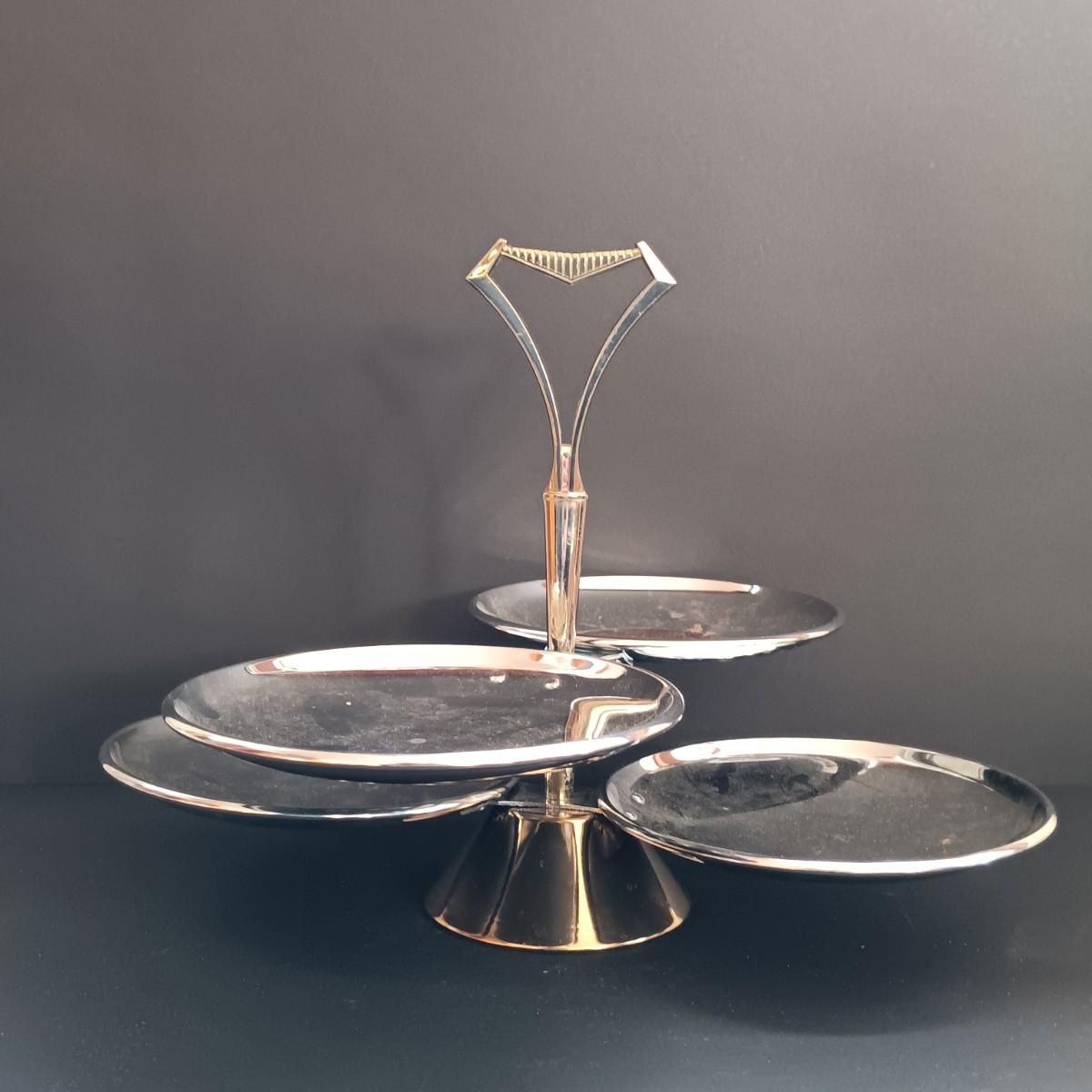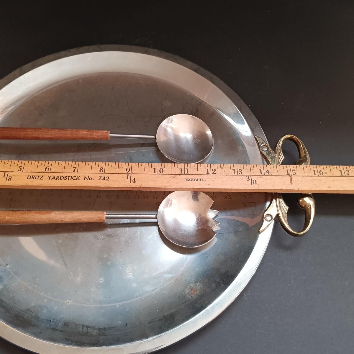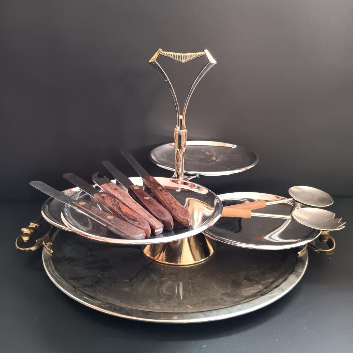 LOT 150: Kromex 2-Tier Serving Stand, Kromex Tray & Wood-Handled Utensils