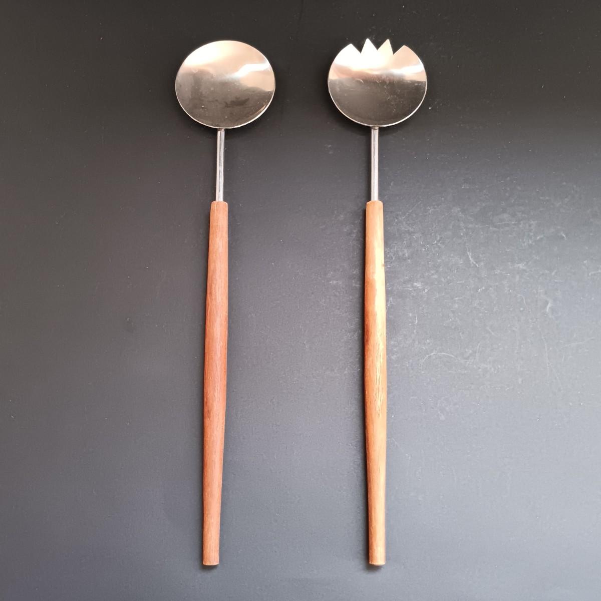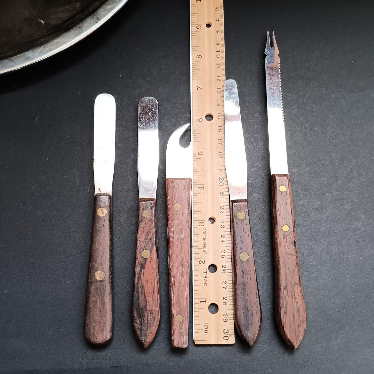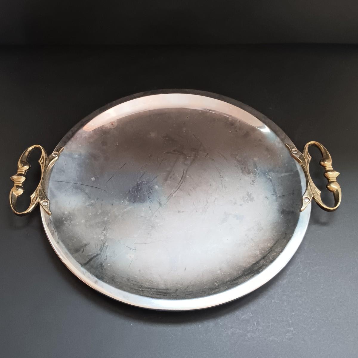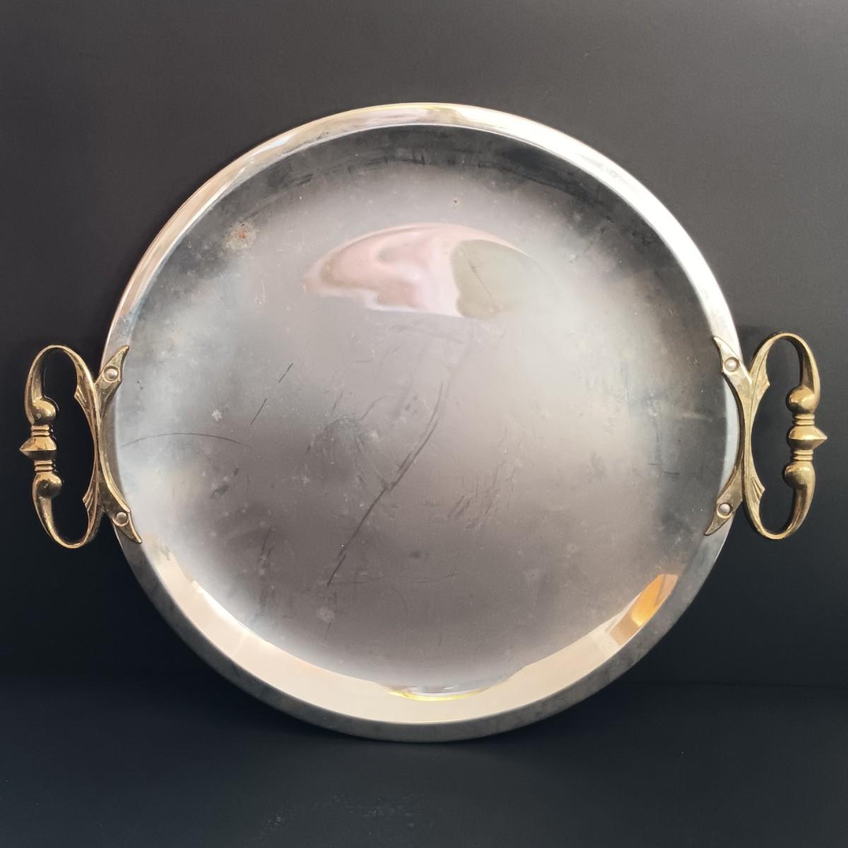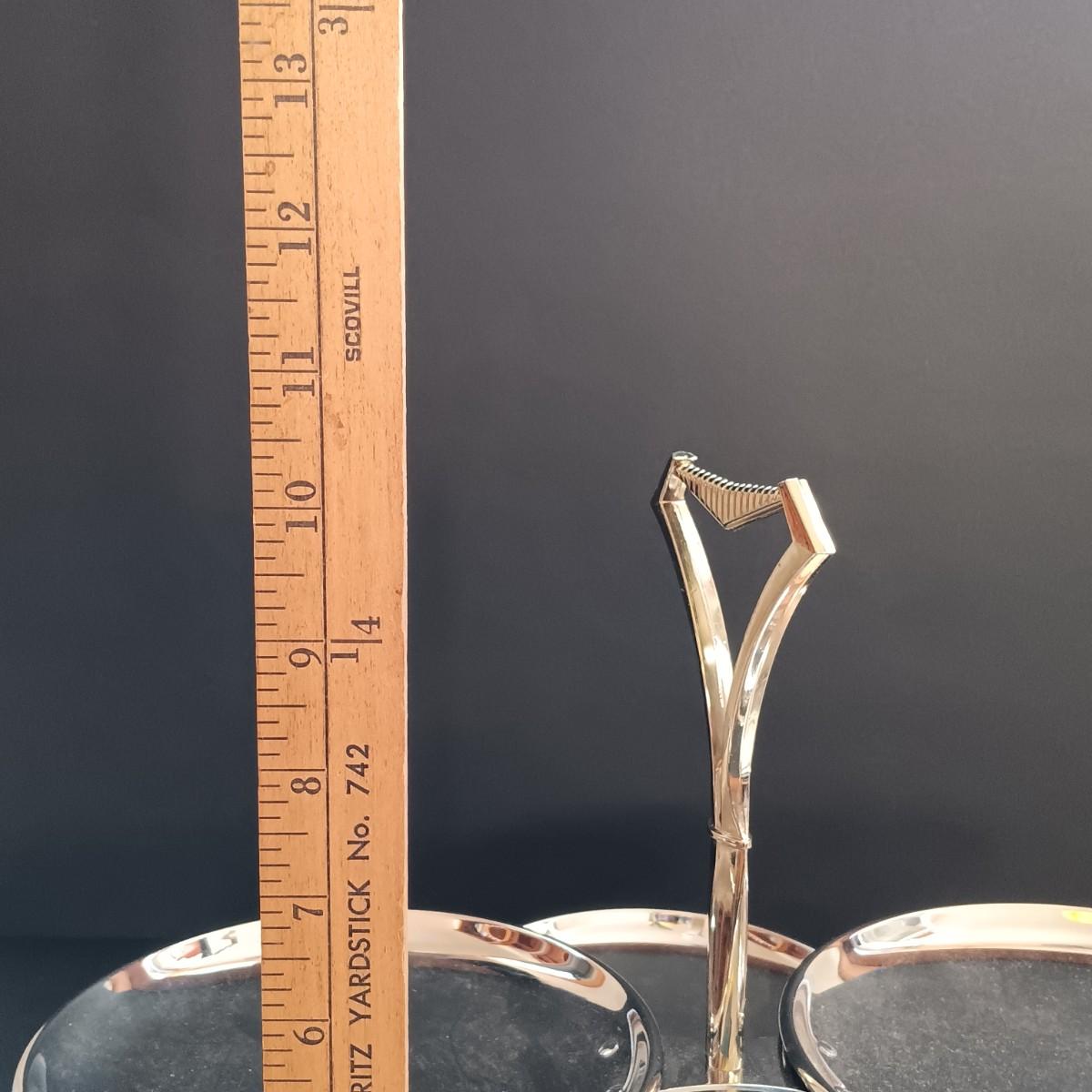 LOT 150: Kromex 2-Tier Serving Stand, Kromex Tray & Wood-Handled Utensils