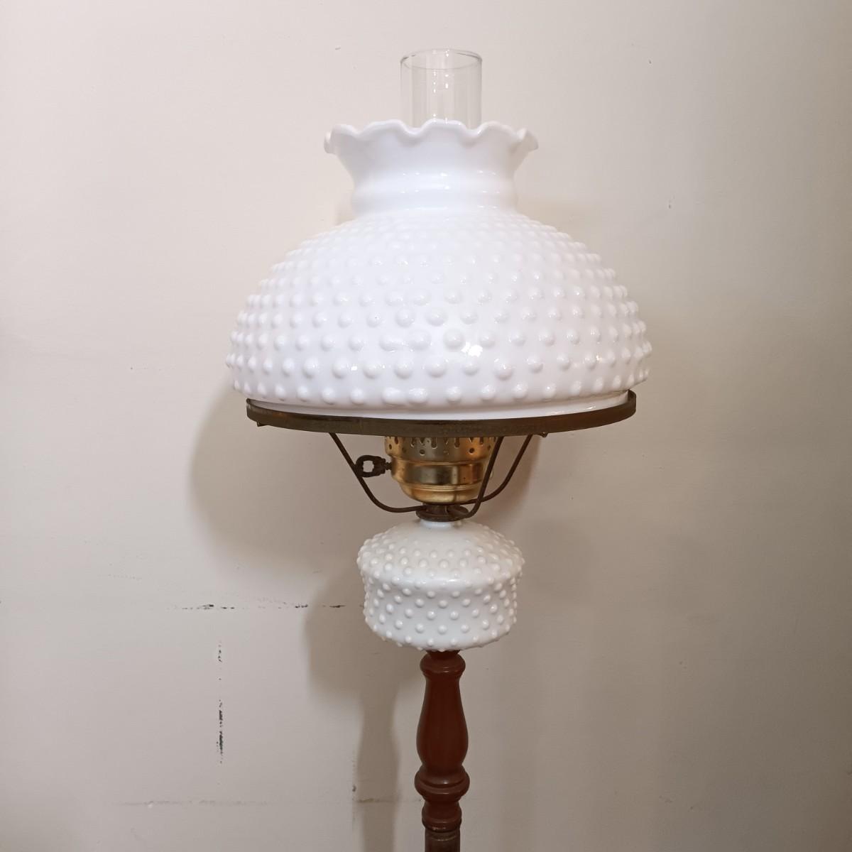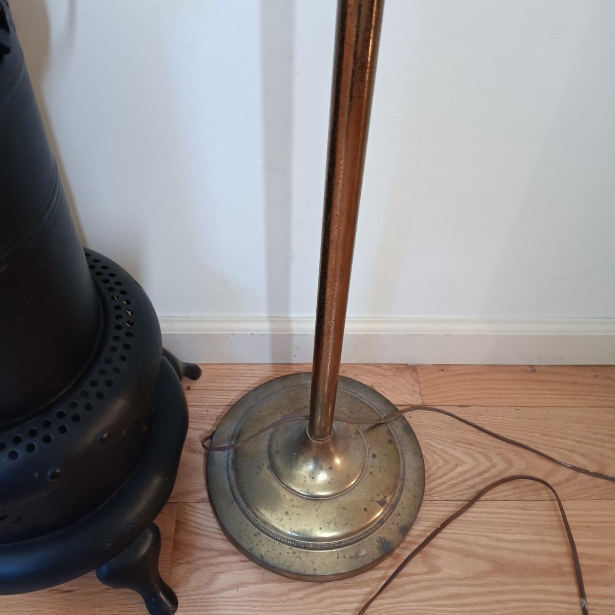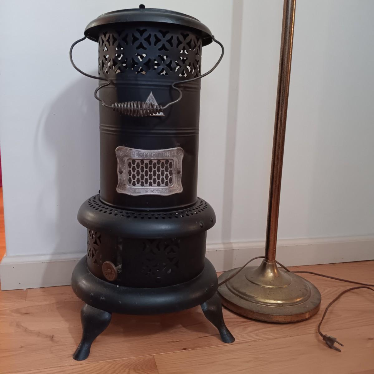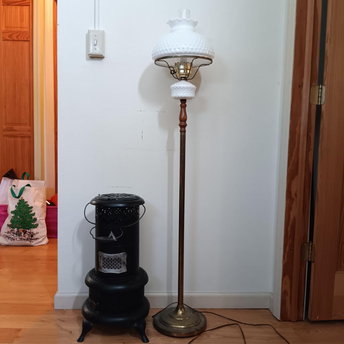 LOT 159: Vintage Perfection No. 551 Oil Heater with Milk Glass Floor Lamp