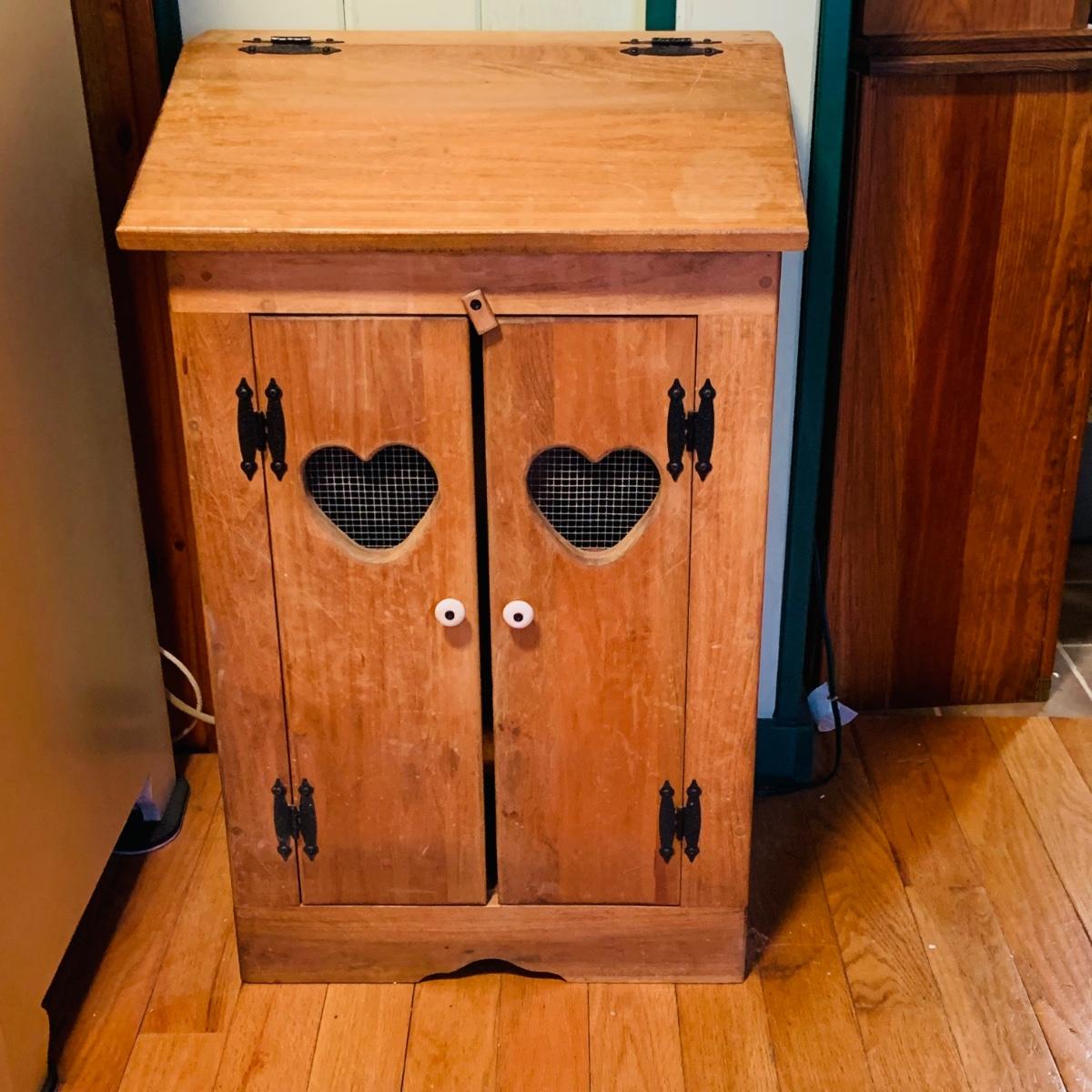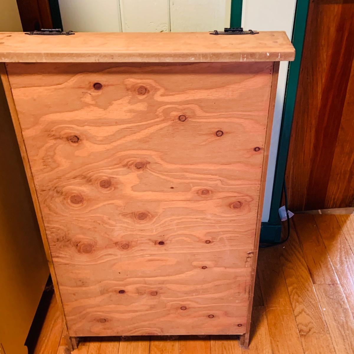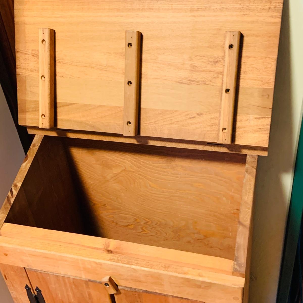 LOT:173: Wooden Primitive Style Waste Basket Holder/Cabinet with Flip Up Lid