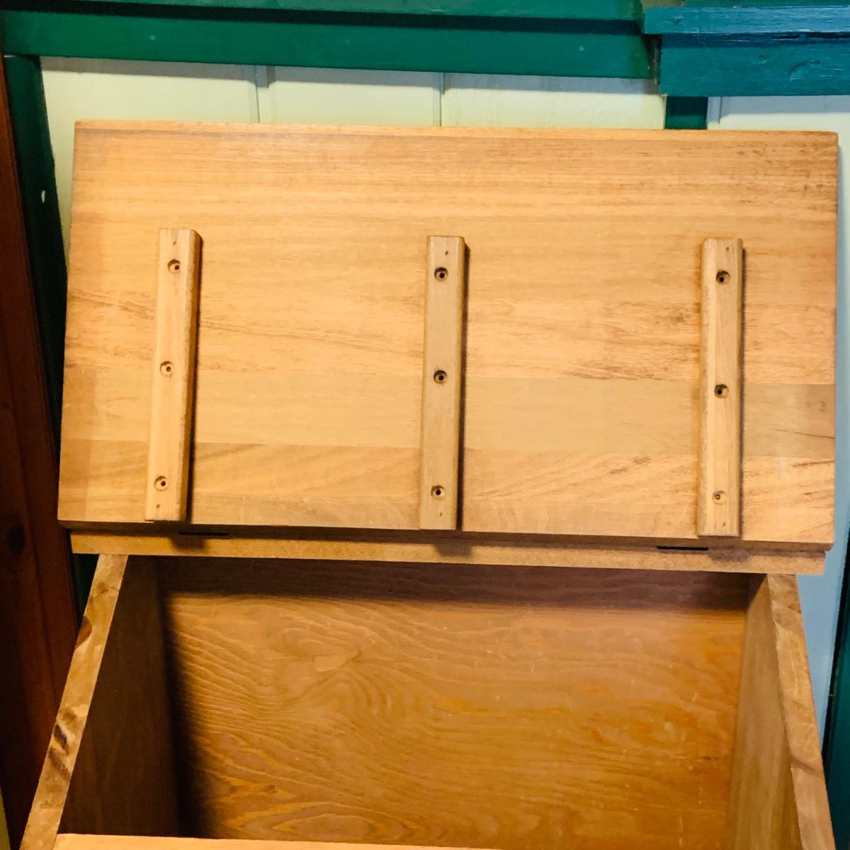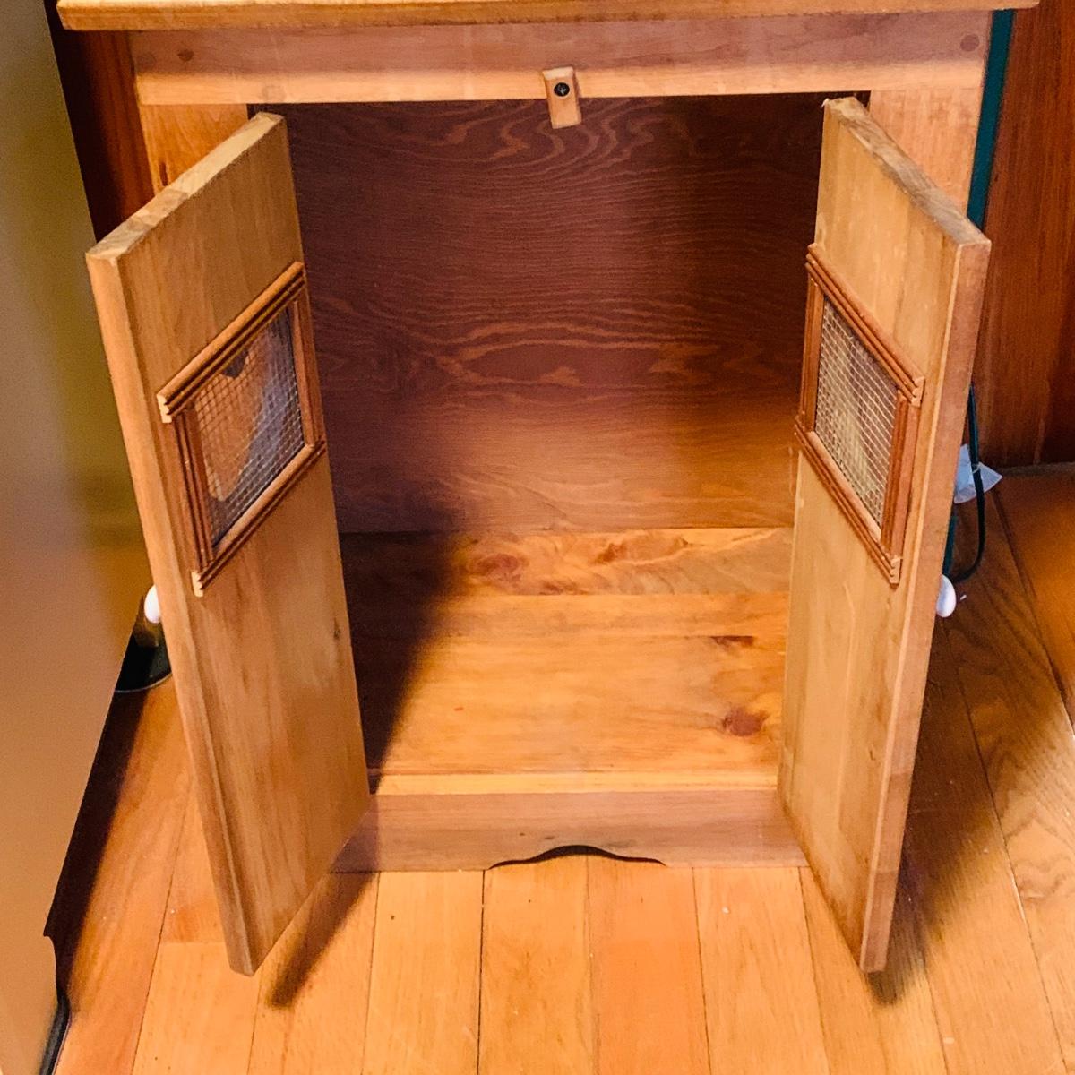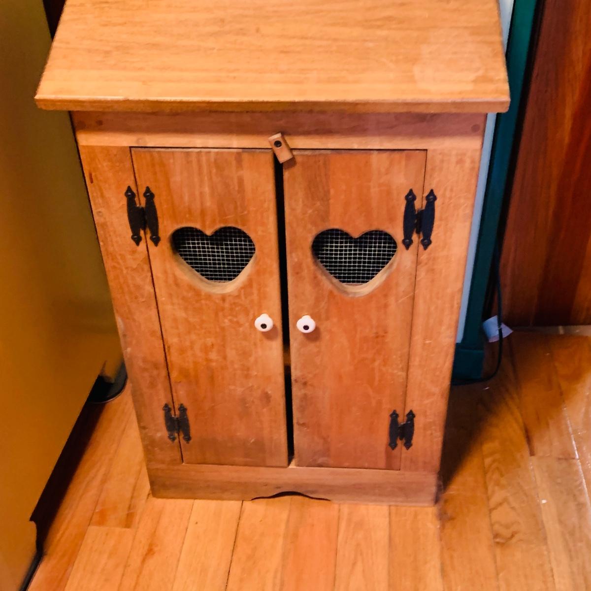 LOT:173: Wooden Primitive Style Waste Basket Holder/Cabinet with Flip Up Lid