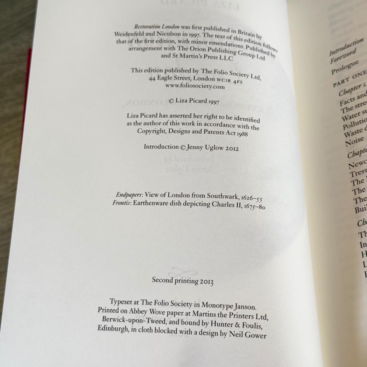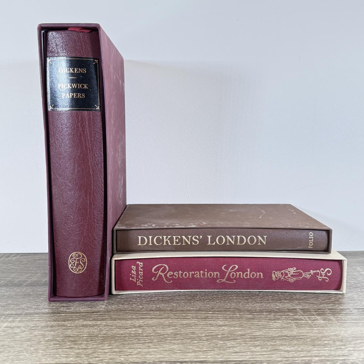 LOT 15L: Folio Society Books - 2005 Pickwick Papers by Charles Dickens, 2012 Restoration London by Liza Picard & 2014 Dickens' London