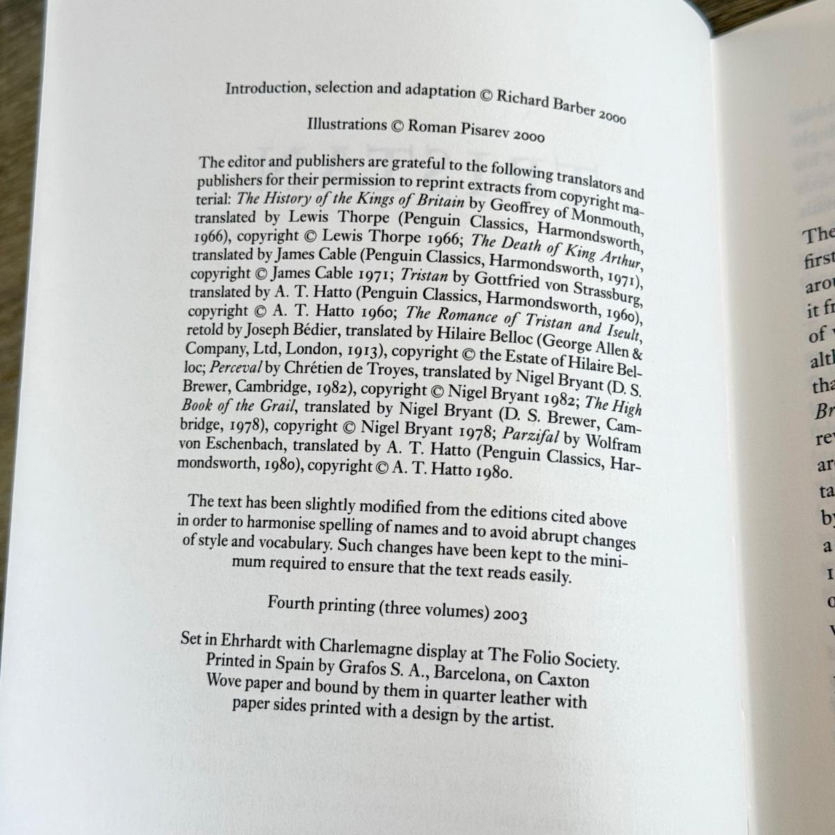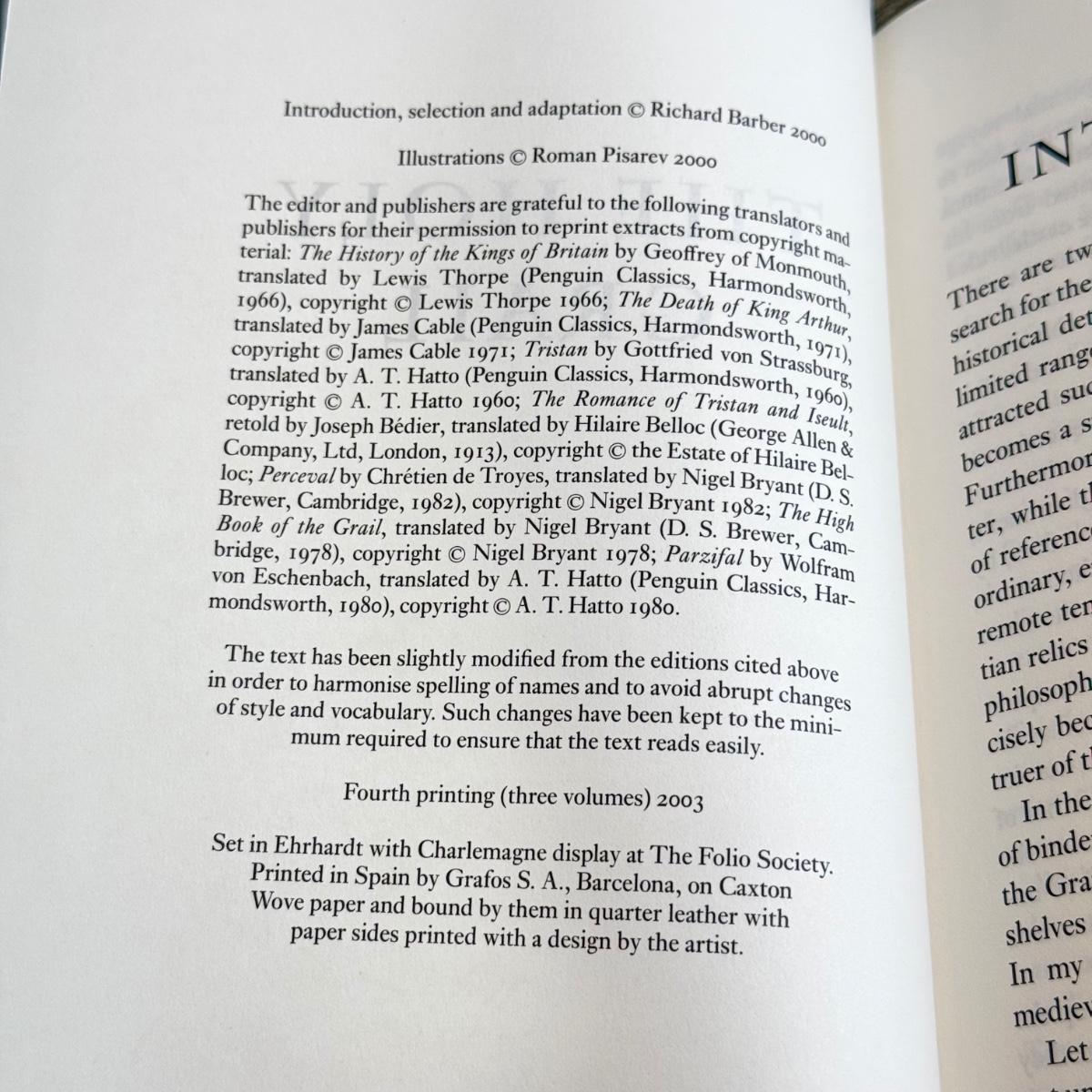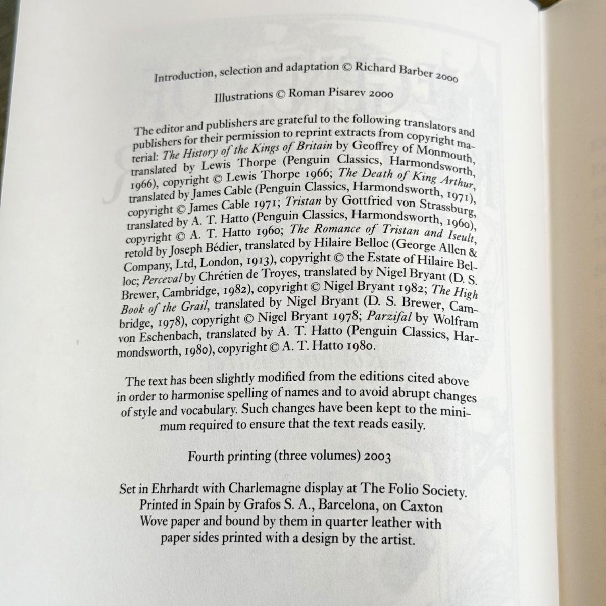 LOT 23L: 2003 Folio Society Legends of King Arthur 3 Volume Box Set - The Holy Grail, Tristan & Arthur