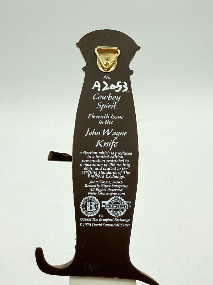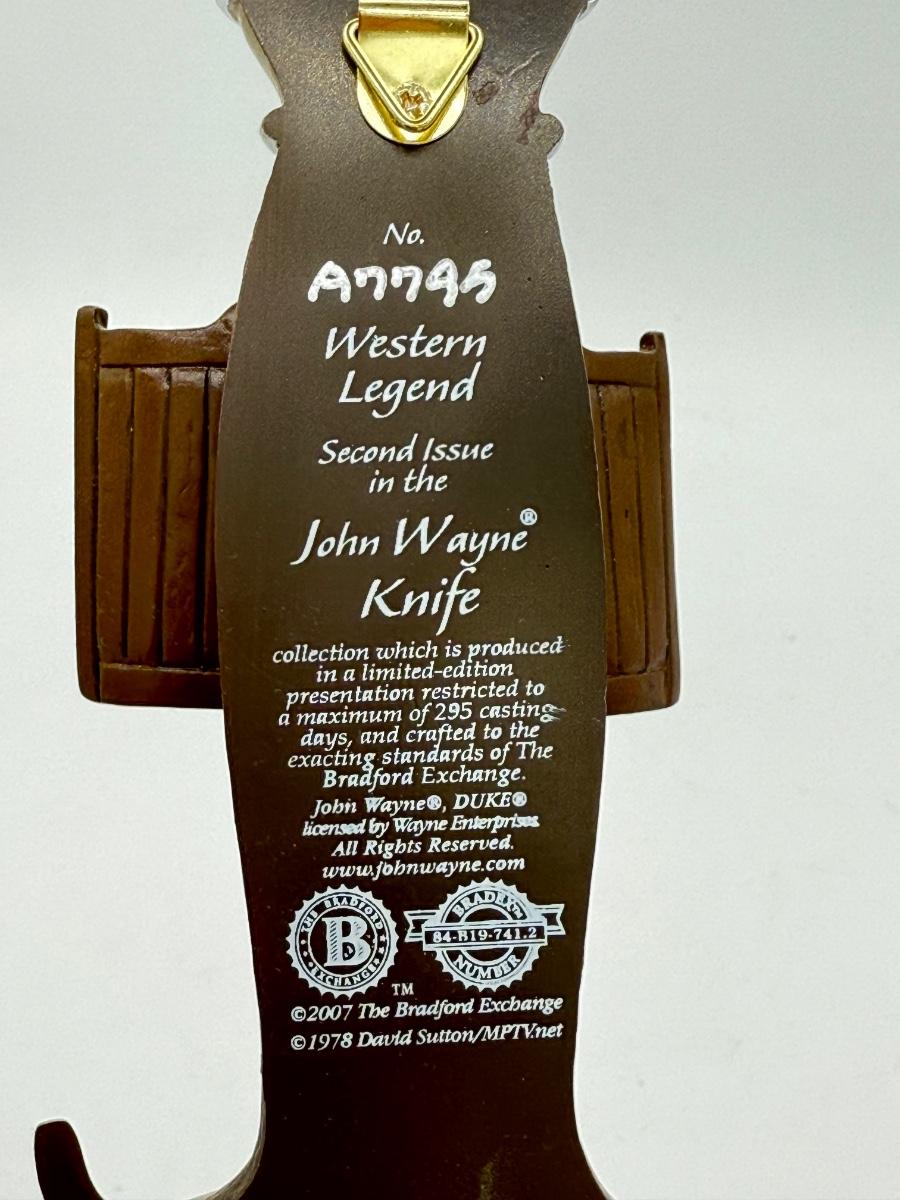LOT 30L: Bradford Exchange John Wayne Knife Collection - 2006 "An American Legend" G1021, 2007 "Western Legend" A7795 & 2008 "Cowboy Spirit" A2053