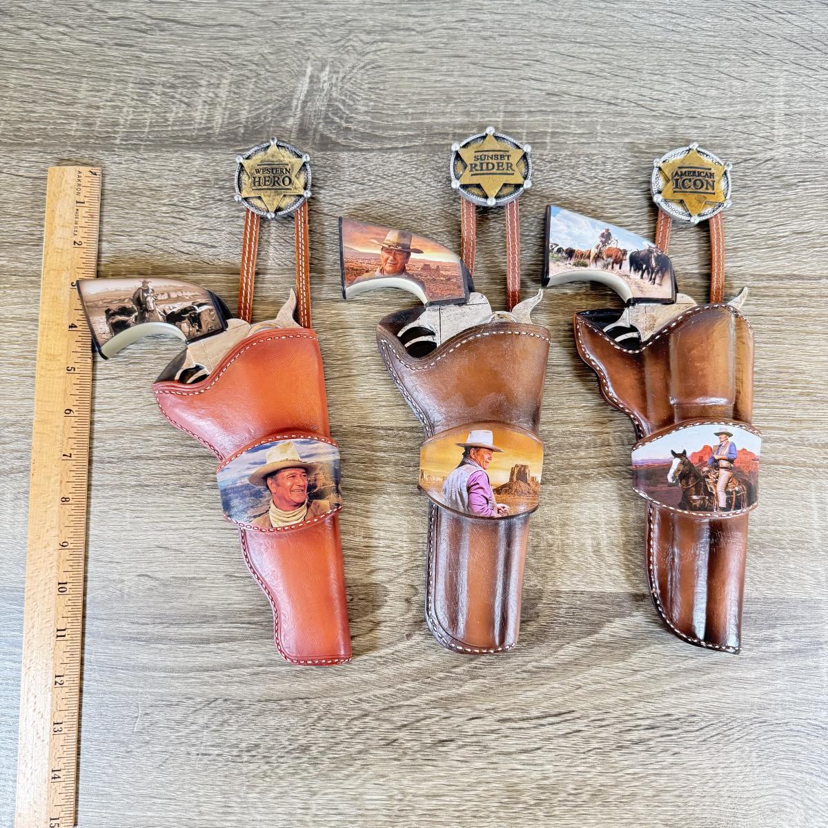 LOT 34L: 2014 Bradford Exchange John Wayne Straight Shooter Collection - "Western Hero," "Sunset Rider" & "American Icon"