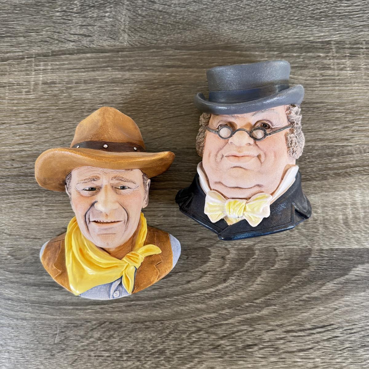 LOT 38L: Vintage Legend Products England Chalkware Bossun Heads - Westerner & Mr. Pickwick