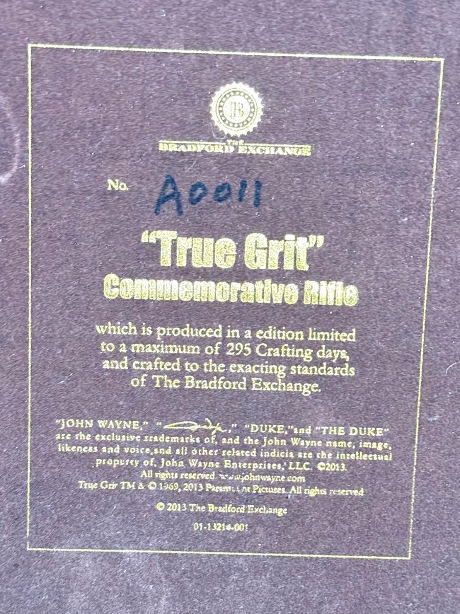 LOT 46L: 2013 Bradford Exchange "True Grit" Commemorative Rifle A0011, 2019 John Wayne: Western Icon Masterpiece Wall Decor A0224 & More