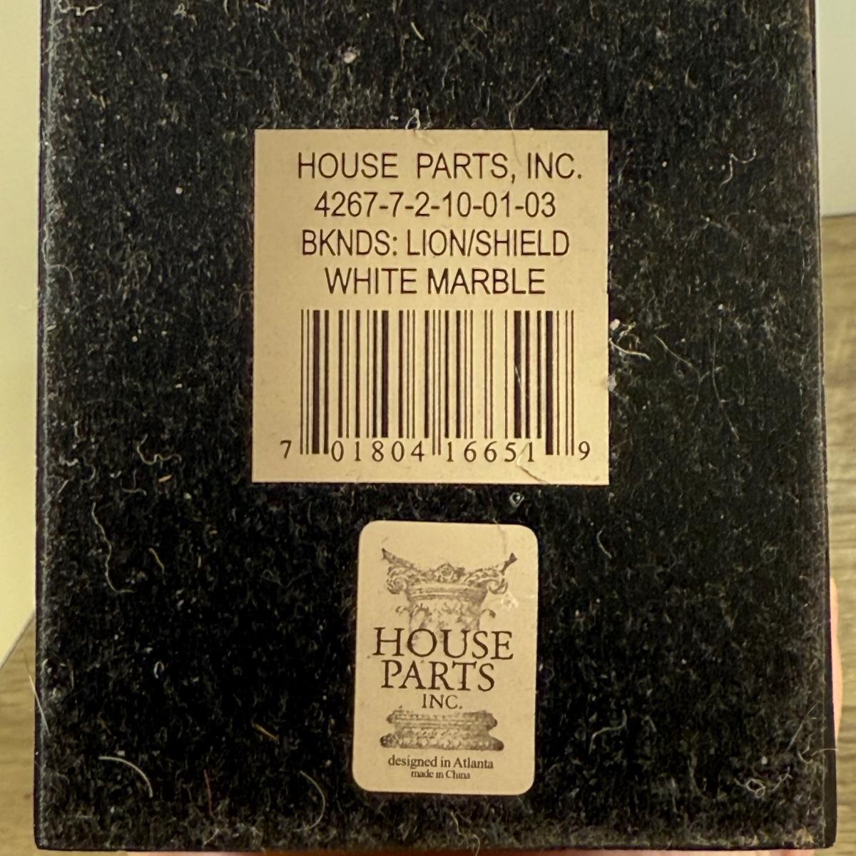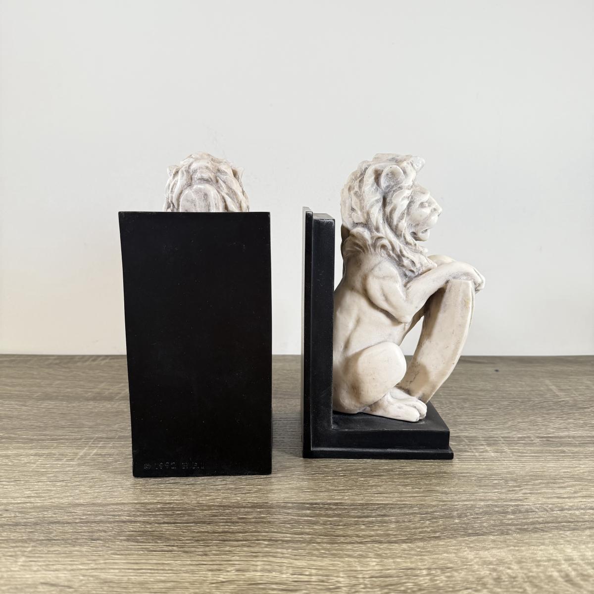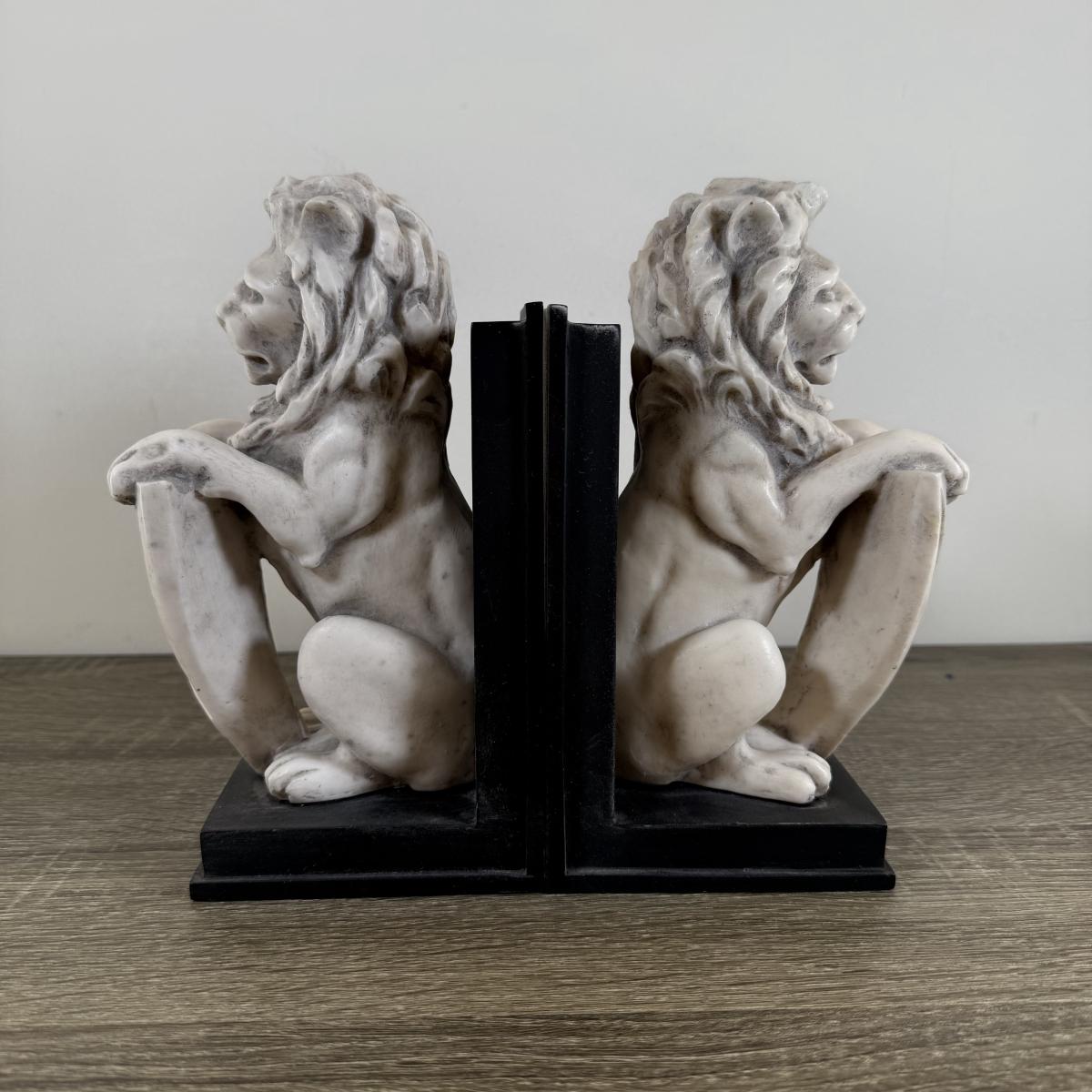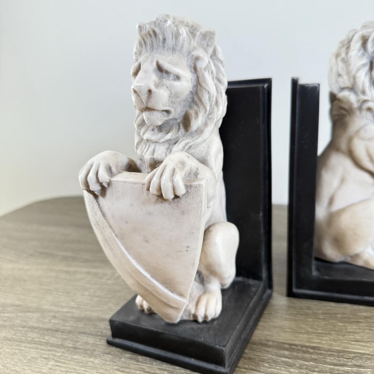 LOT 58M: Pair of 1992 White Marble Lion w/ Shield Bookends