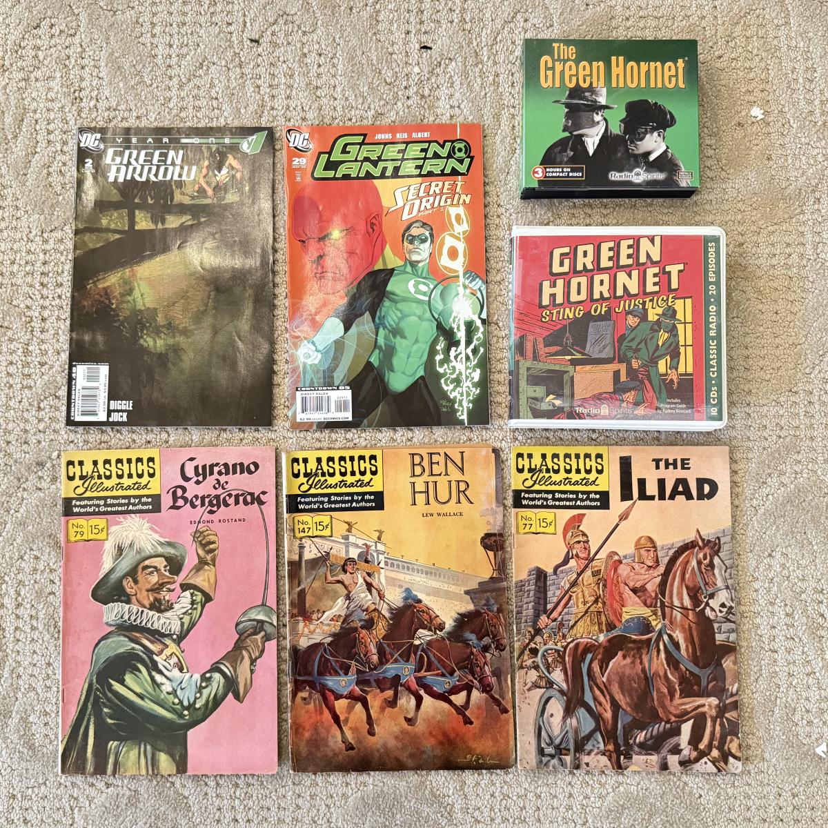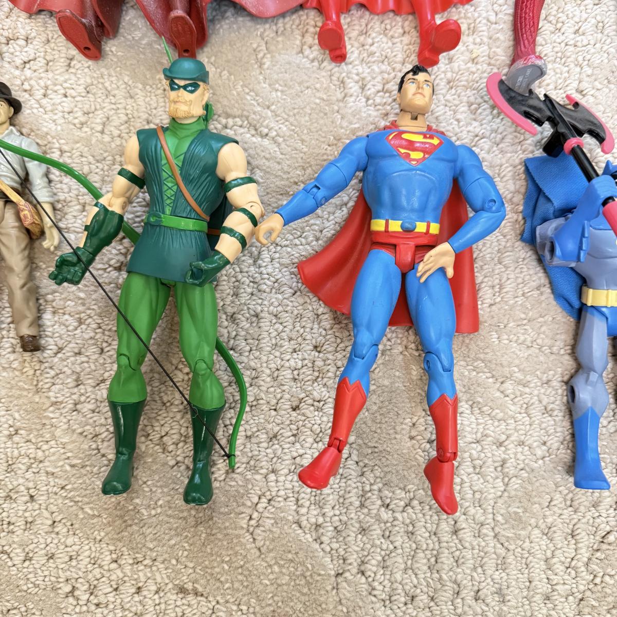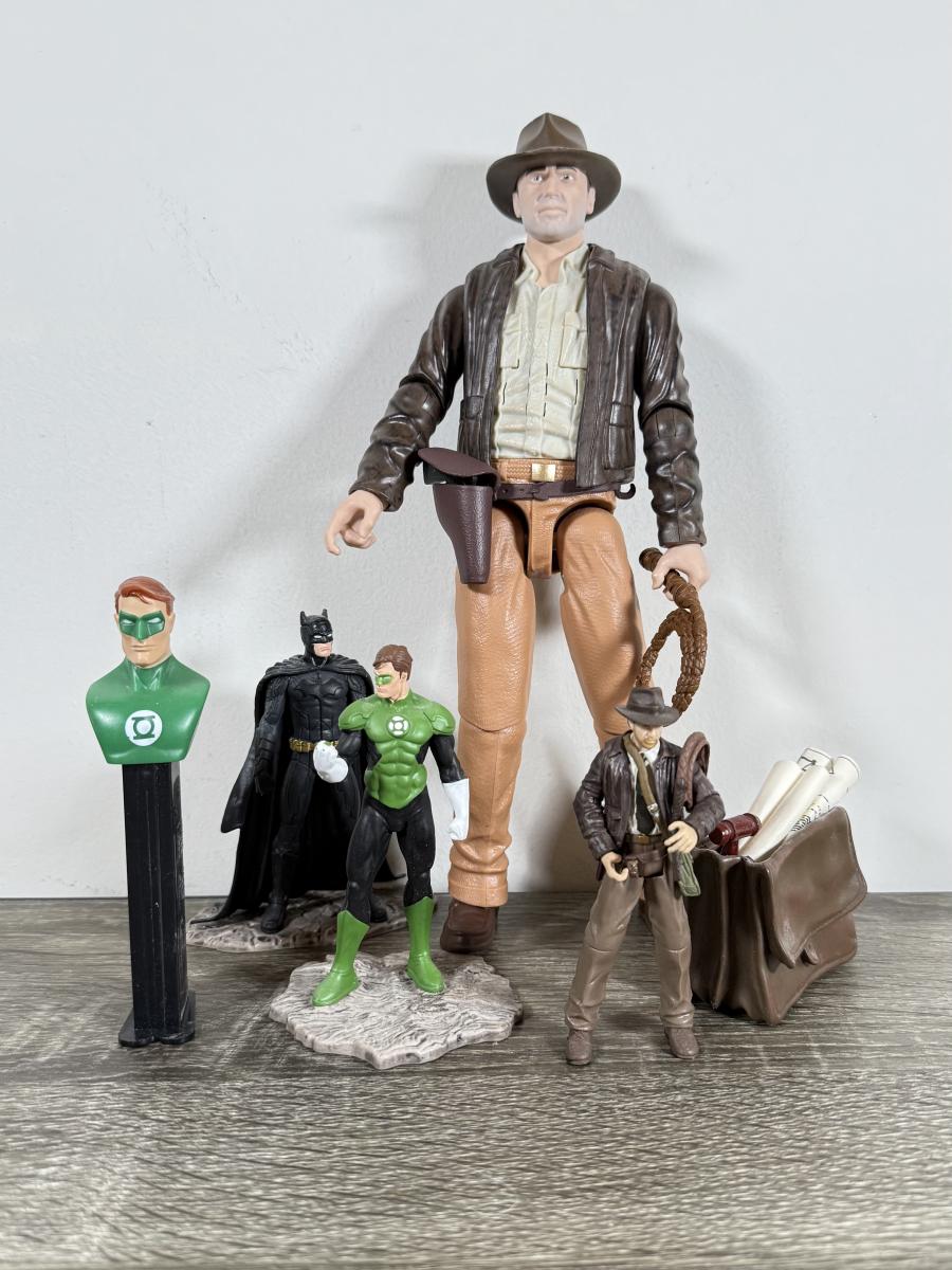 LOT 69L: Collection of Toys, Action Figures, Comics & More - Indiana Jones, DC Comics, Spiderman, Mr. Bean, 1950s Illustrated Classics