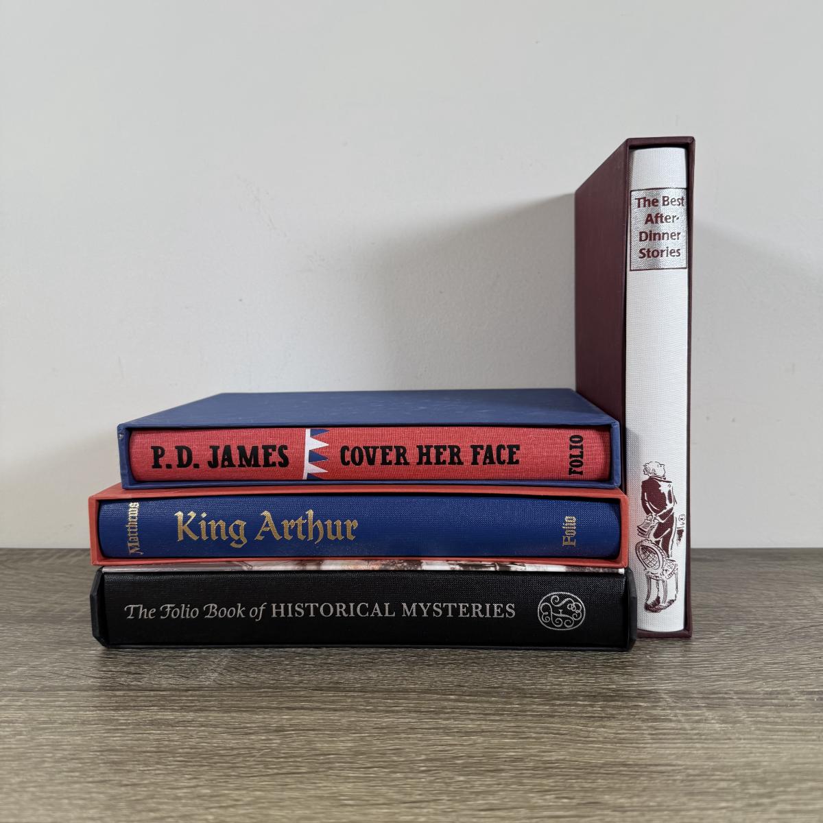 LOT 76M: Folio Society Books - Book of Historical Mysteries, King Arthur: History & Legend by John & Caitlin Matthews, Cover Her Face by P.D. James & The Best After-Dinner Stories