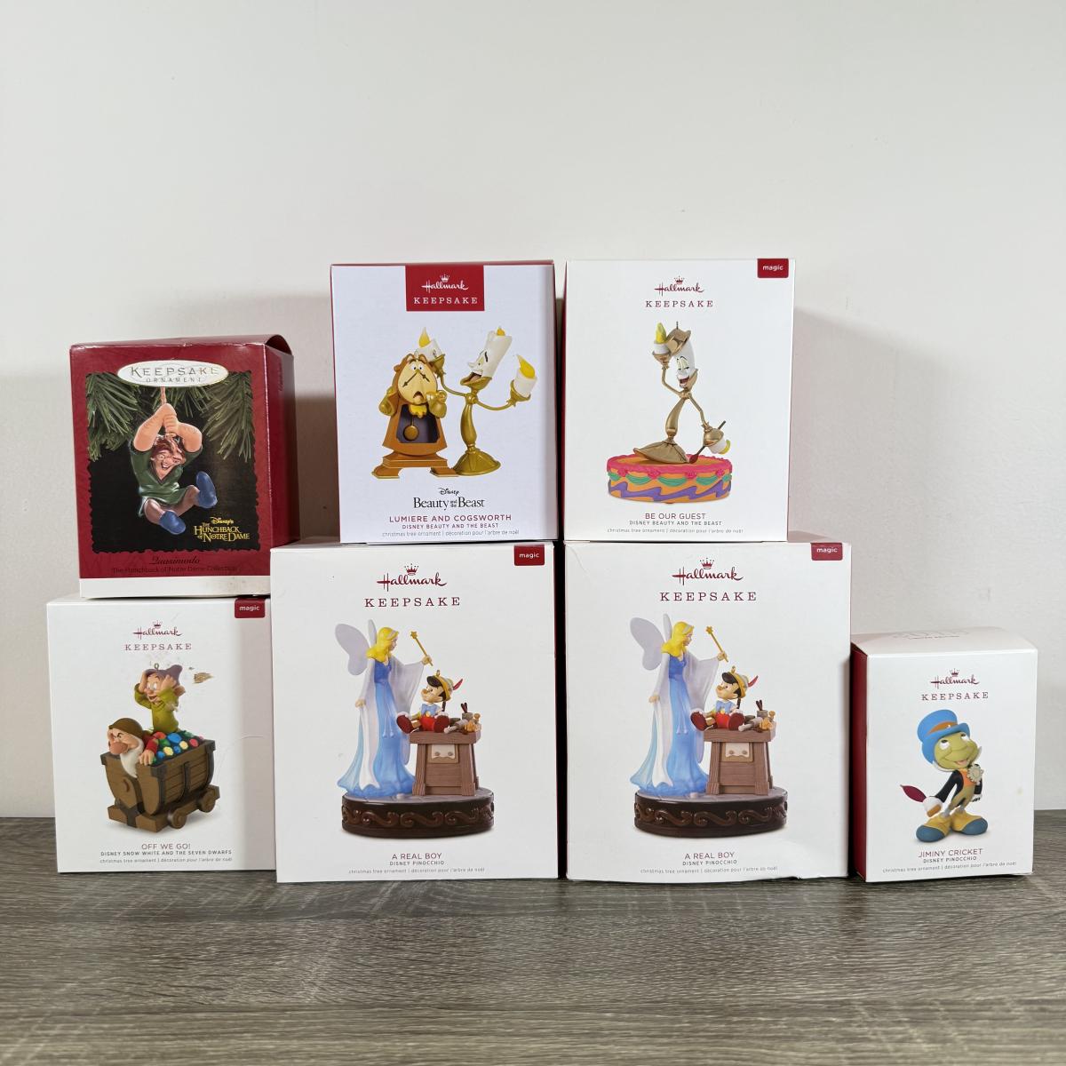 LOT 78M: Disney Hallmark Keepsake Ornaments w/ Boxes - The Hunchback of Notre Dame, Snow White & the Seven Dwarfs & Pinocchio