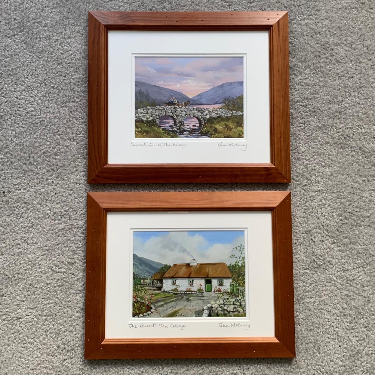 LOT 86 M: Framed & Signed Prints by Tim Moloney based on the Movie "The Quiet Man"; "The Quiet Man Cottage" & "The Quiet Man Bridge"