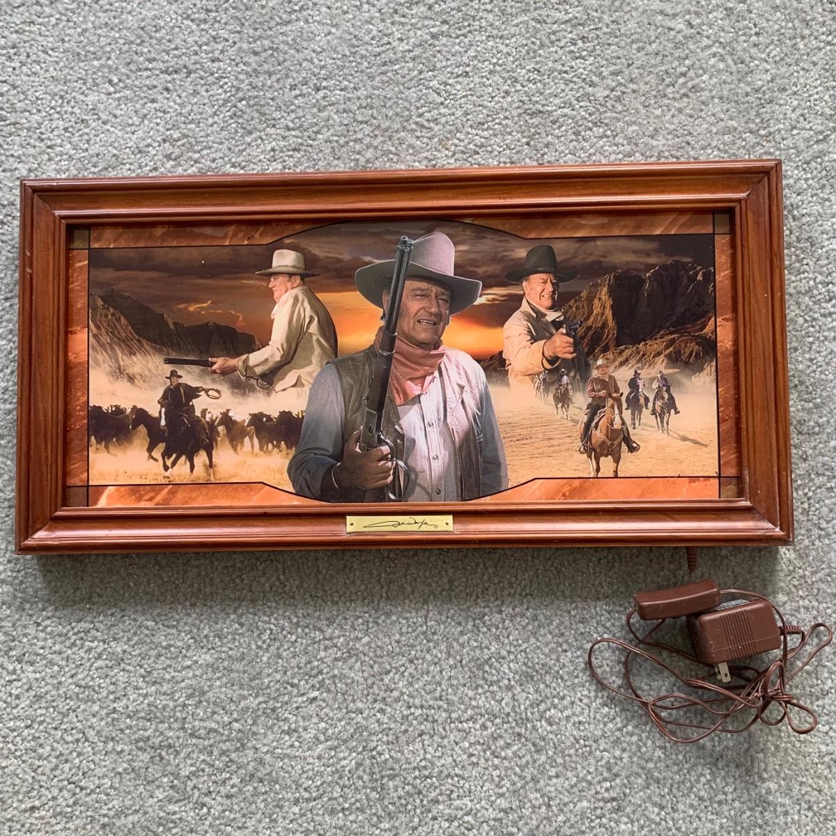 LOT 102 M: Bradford Exchange Limited Edition John Wayne "Stained Glass" Light Boxes; "Hero Of The West" 2006 & "An American Legend" 2009