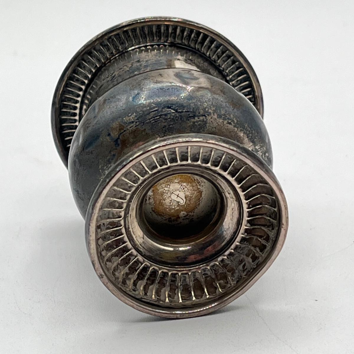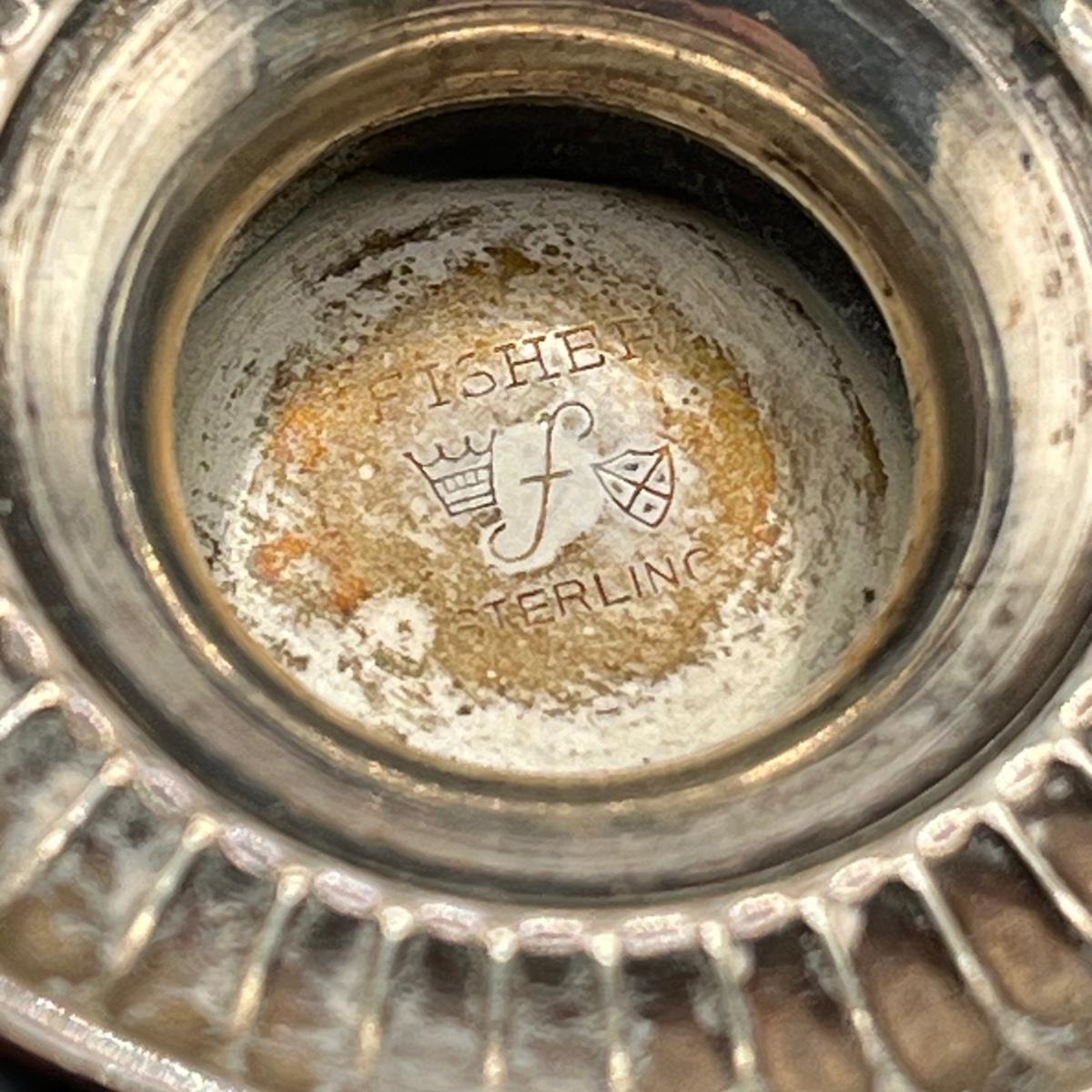 LOT 172J: Silver Lot - Fisher Sterling Candle Holder - 28 grams, and Judaica Souvenir Leaf Spoon - .835 Silver - 13.6 grams
