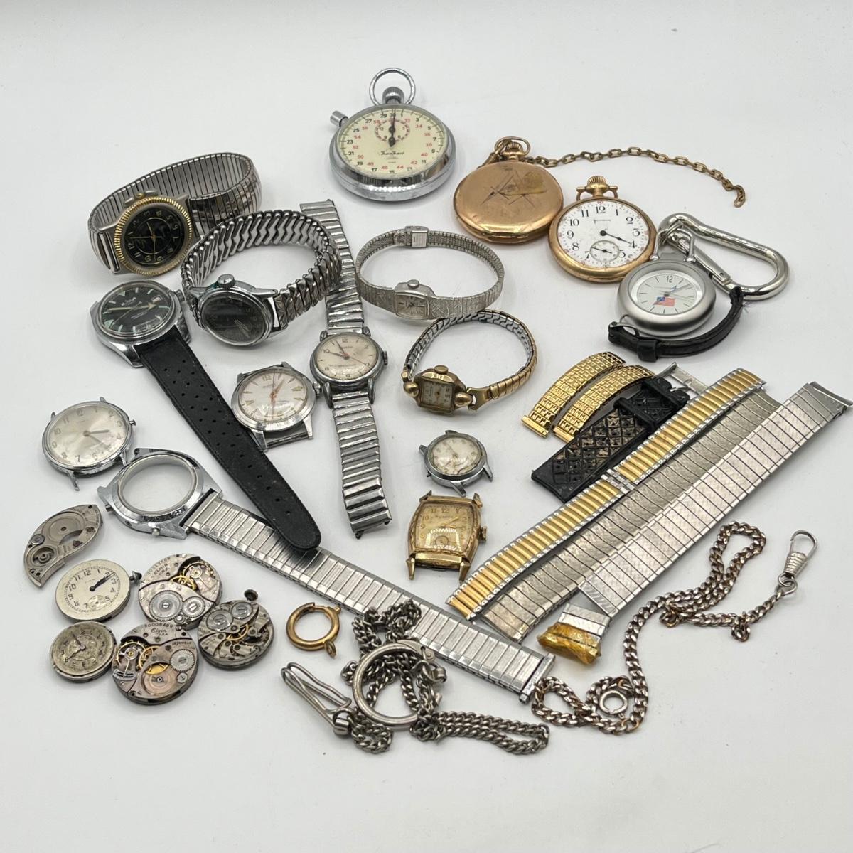 LOT 175J: Big Watch / Watch Part Lot for Parts or Repair - LeJour 17-Jewel Diving Watch, Waltham Pocket Watches and More