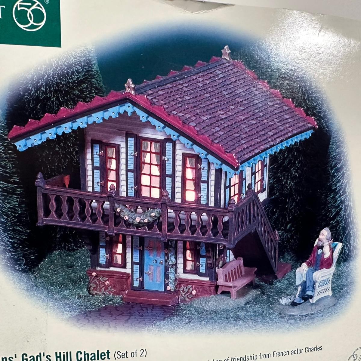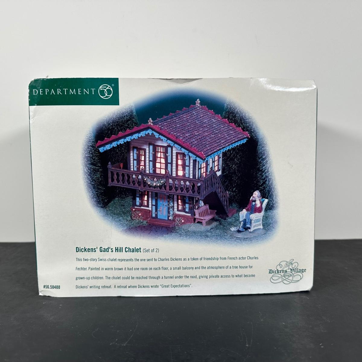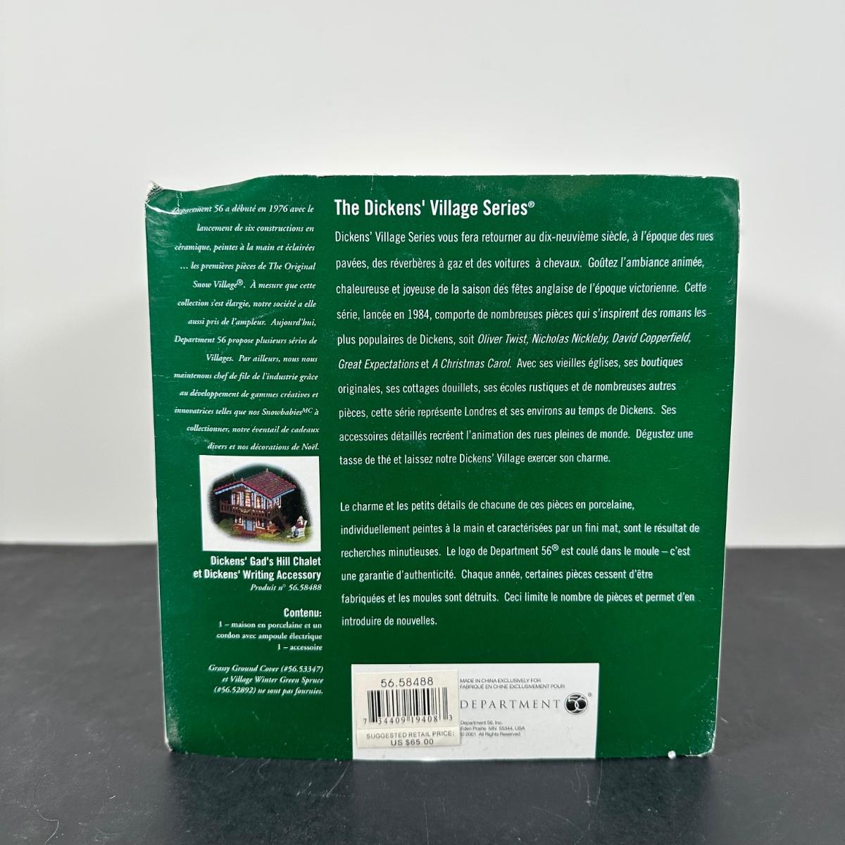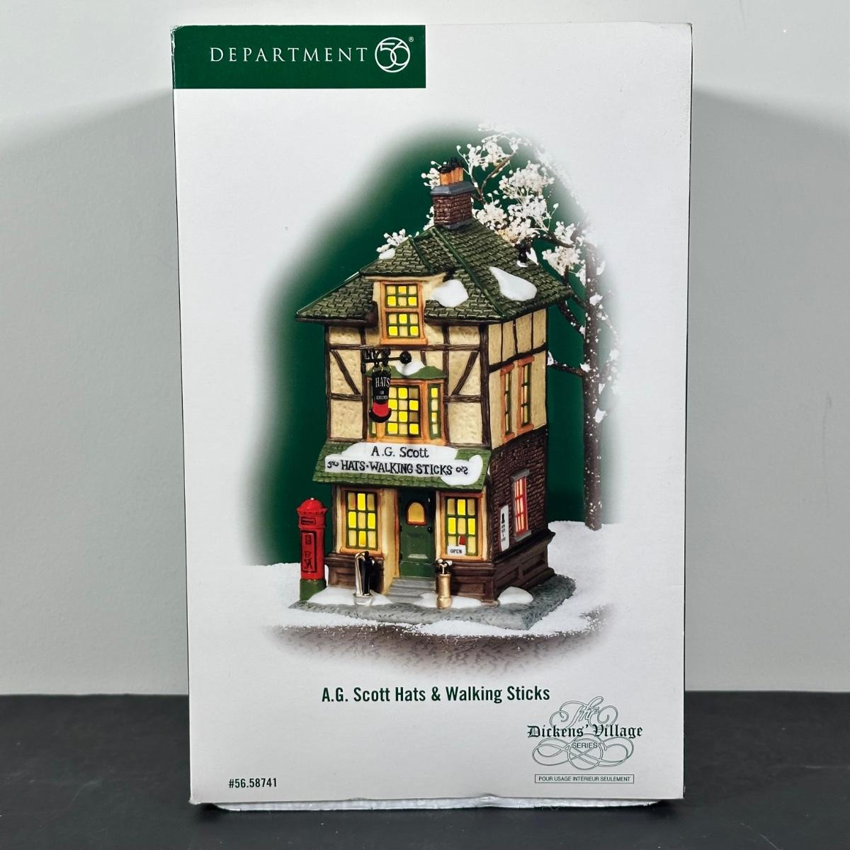 LOT 184U: Department 56 Dickens Village Series - Dickens Gads Hill Chalet, Boz’s Books & A.G. Scott Hats & Walking Sticks