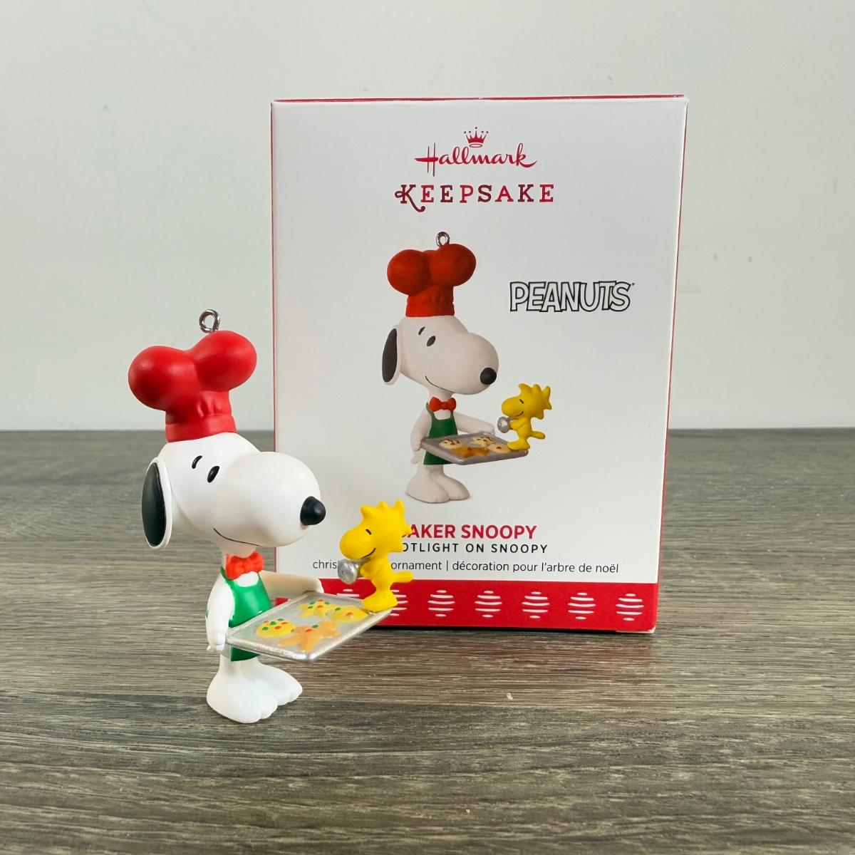 LOT 206M: Peanuts Hallmark Keepsake Ornaments - Mini Baker Charlie Brown, Baker Snoopy, 70 Year Anniversary, Windward Woodstock & More