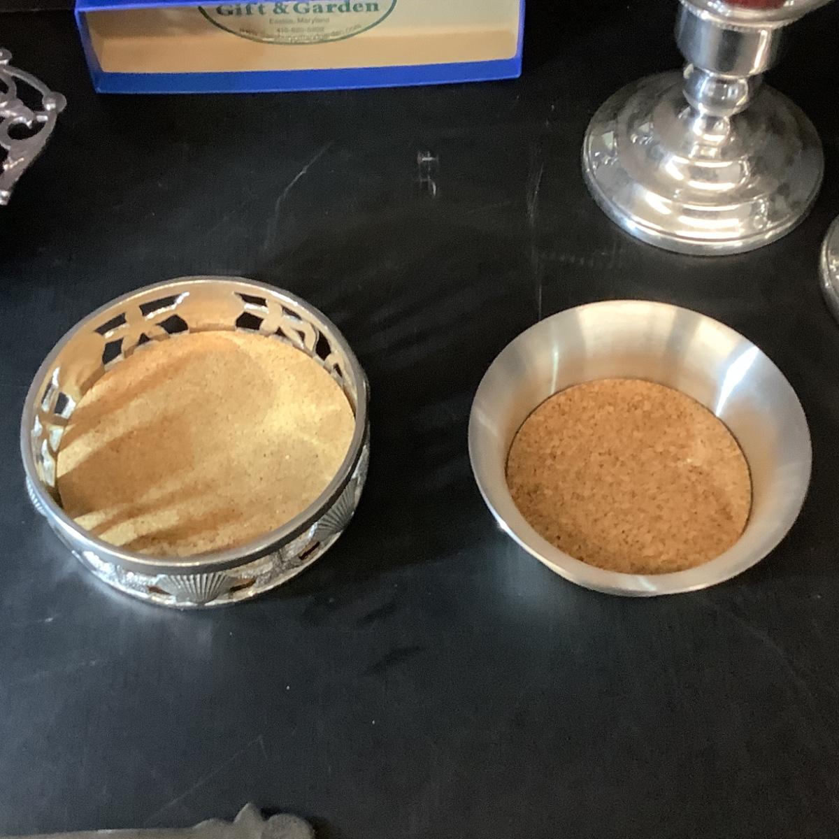 Lot 1099 Danish Silverplate Bowl by Godoy Fraberg, Pewter Coasters, Napkin Ring,& Candlesticks