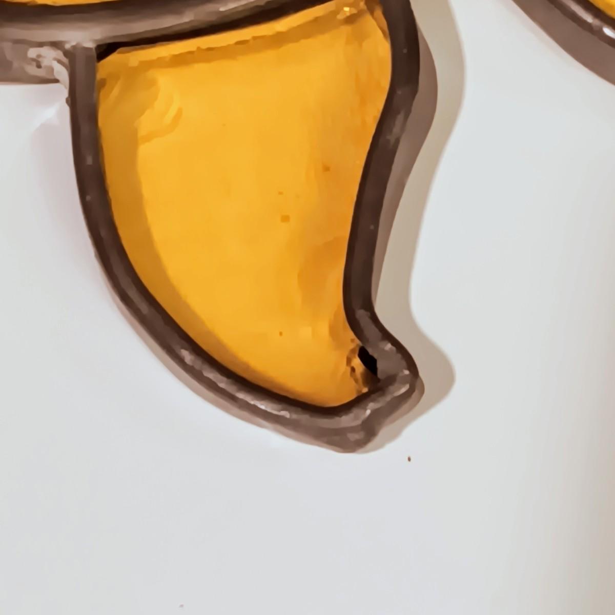 The sun has what may be a small chip along one of the edges that may be from where it was initially cut or from a potential fall.