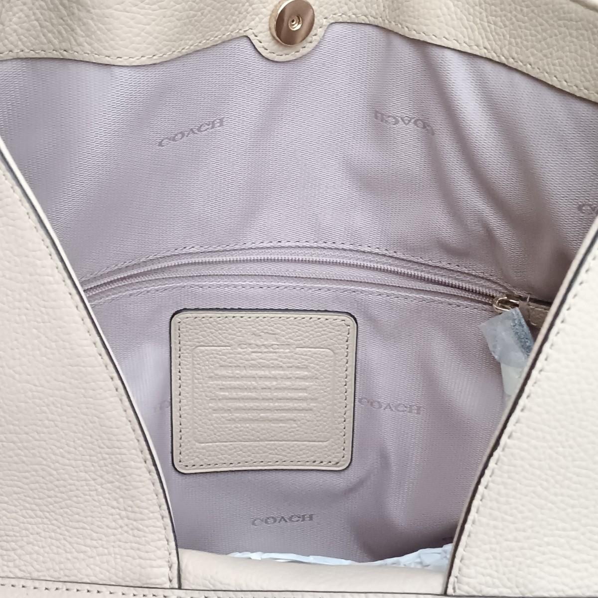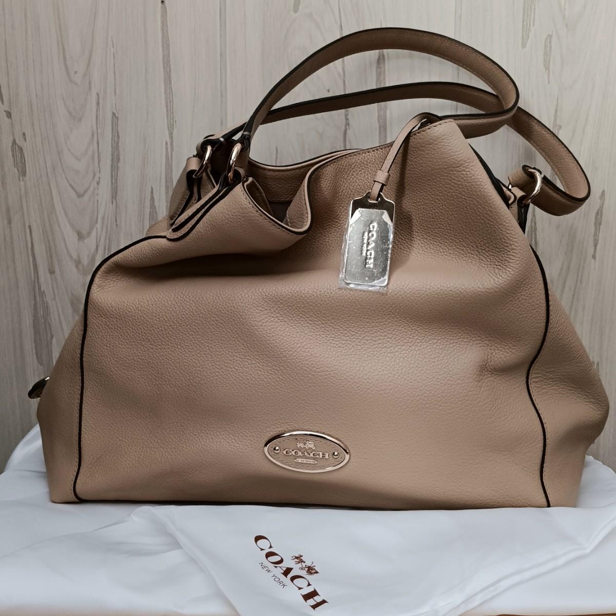 LOT 16: Coach Edie Beige Leather Shoulder Bag with Cloth Cover