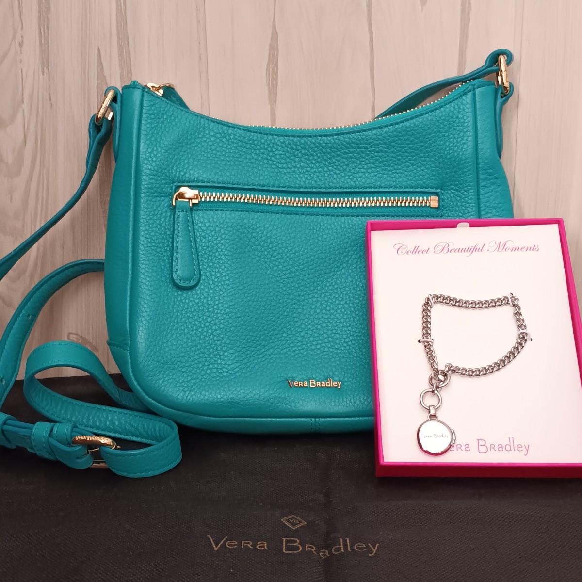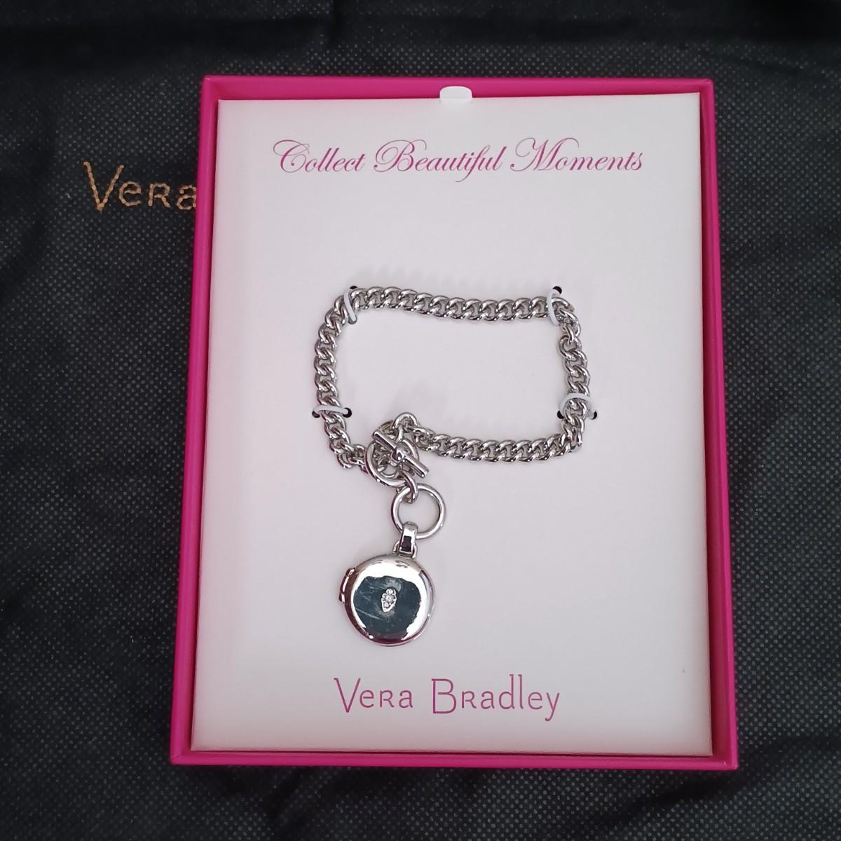 LOT 17: Vera Bradley Mini Vivian Blue Crossbody Bag with Cover & Silver-Tone Locket Bracelet